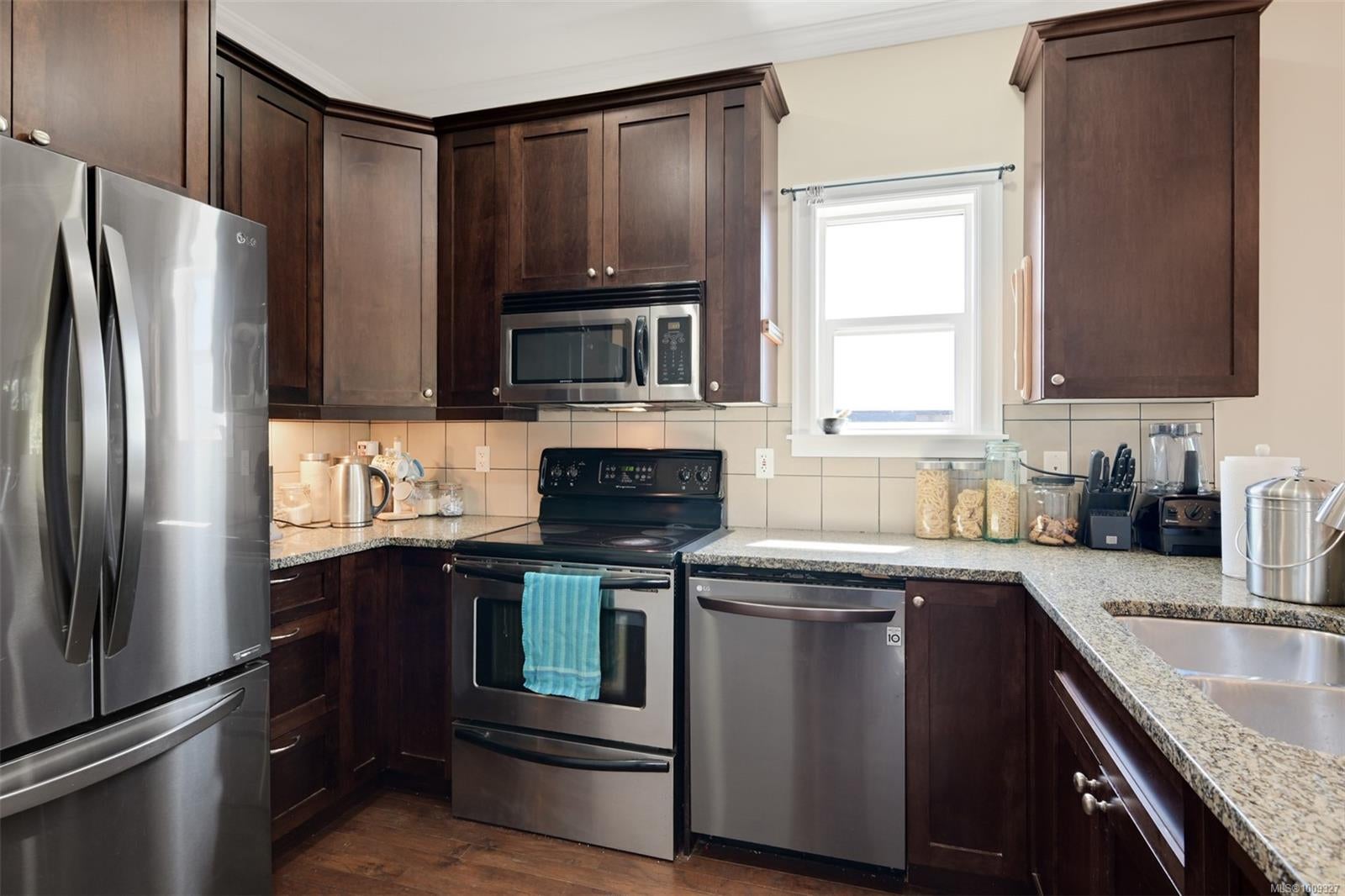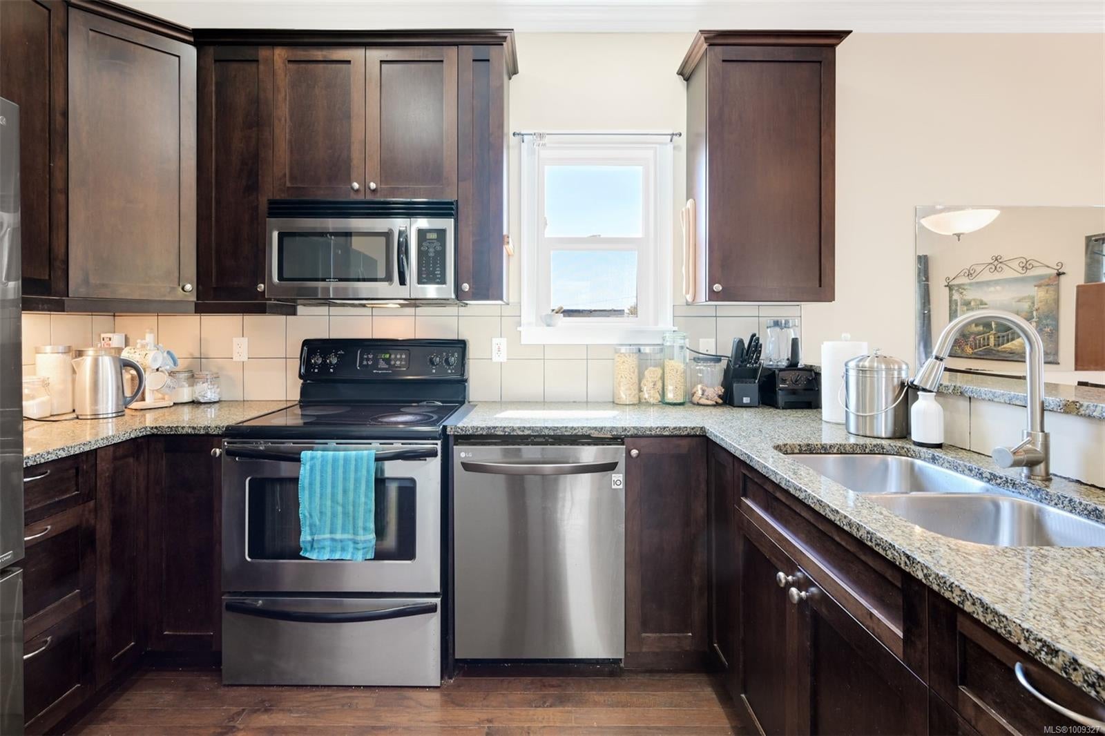 OPEN HOUSE SAT OCT 4 12:30-2:00pm! Well maintained 2008 built 1581sqft three bedroom three bath home in the Sooke core at 2068 Solent Rd North! Main floor features front porch with warm entry area, 9’ ceilings, large single garage with overhead storage, open concept living, dining and kitchen and sliding door to your updated deck and gorgeous fully fenced backyard. Kitchen boasts wood shaker cabinets, granite countertops and stainless steel appliance package and eating bar. Upstairs features three generous bedrooms including the 14x14 primary with walk-in closet, private balcony with ocean and mountain views and full ensuite with walk-in shower! Upstairs also has a main bathroom, large office nook/flex space, full laundry room with sink. Wood floors throughout most the rooms along with tile entry and bathrooms. Backyard with sunny exposure is a true gardeners dream with live edge raised beds, irrigation and thriving greenhouse. Home has durable hardi plank siding, vinyl windows, large 4’ crawlspace, freshly painted inside and out and ready to move in for the new owners! Ultra low monthly utility bills highlighted by 9kW solar array with entire year of BC Hydro at $91! Centrally located at the end of a no-thru street in the heart of Sooke within walking distance to the ocean, parks, schools, transit, recreation and all amenities.