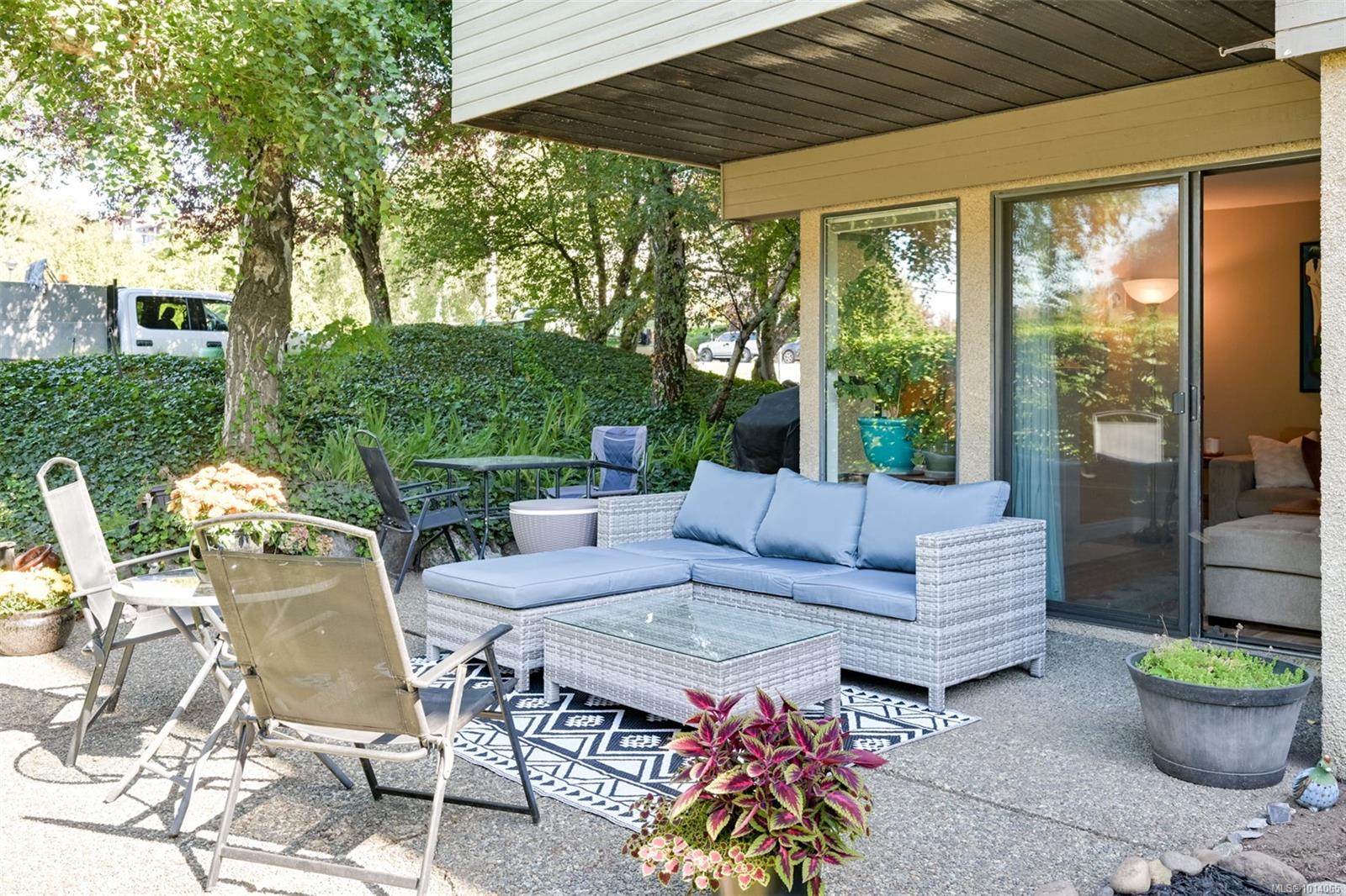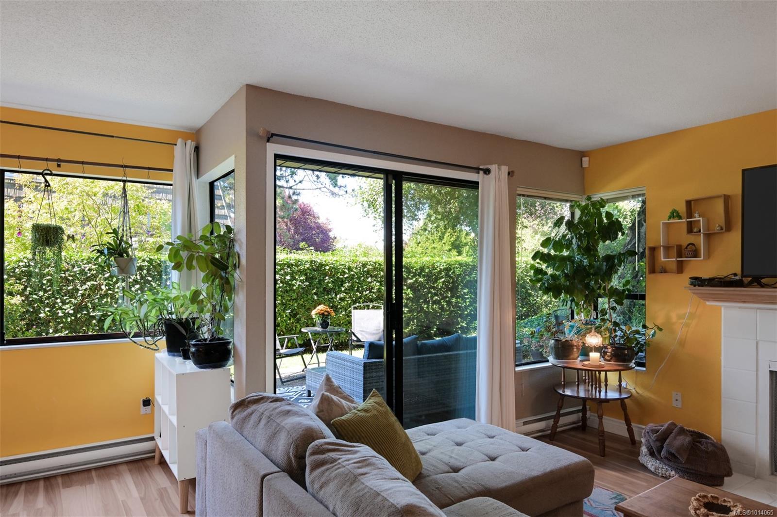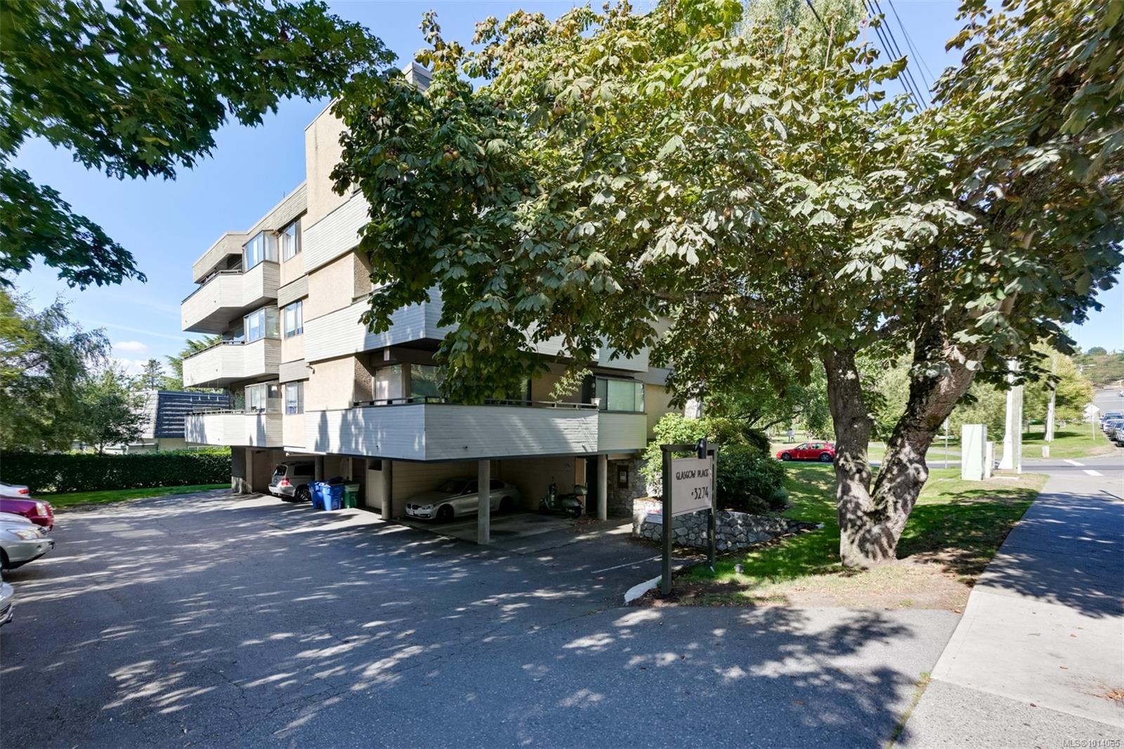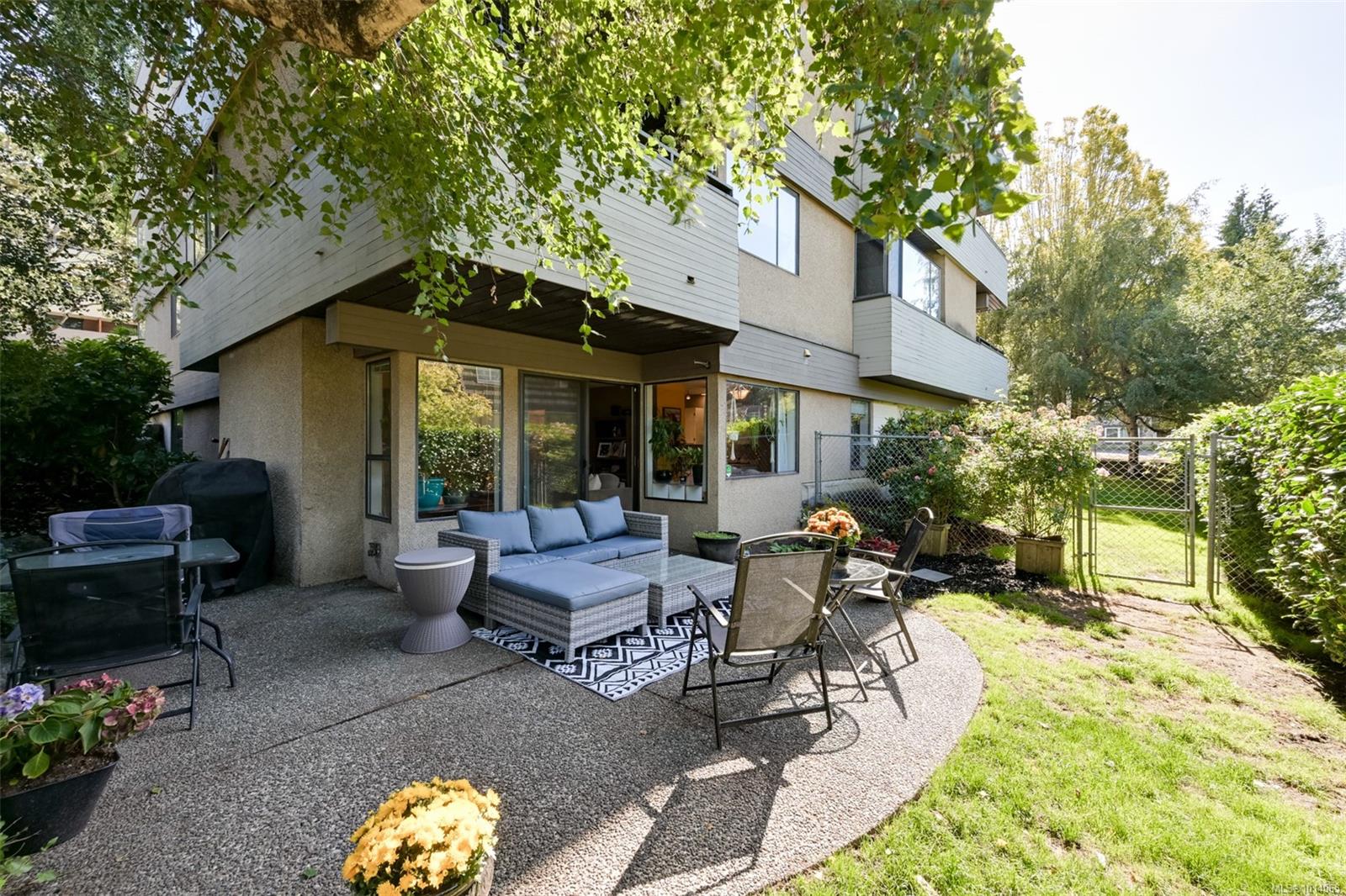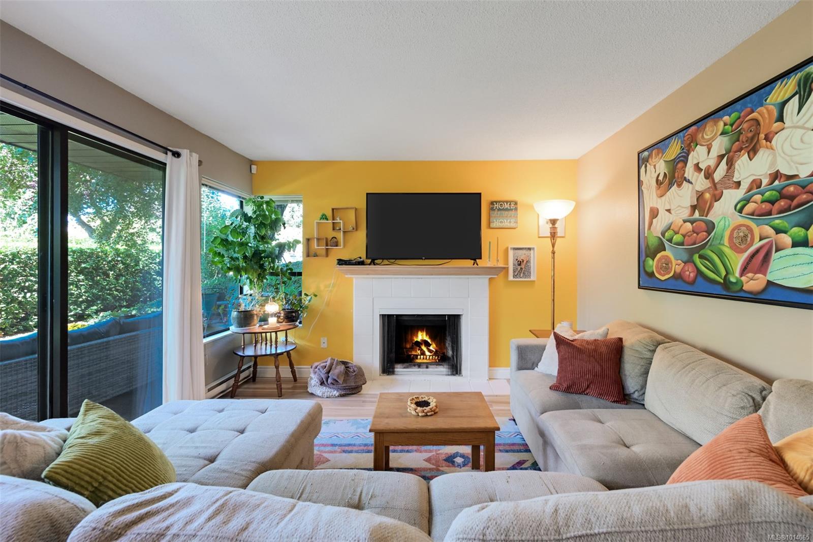 Two bedroom ground level corner unit with large patio at Glasgow Place! 844sqft of finished living space featuring insuite laundry, newer walk-in shower, lots of windows for natural light, large living room with wood burning fireplace, in-unit storage/pantry plus separate storage locker (rented $10/m), kitchen with good amount of cabinets, double sink and stainless steel fridge and stove, 13x10 primary bedroom and 10x10 second bedroom. Only unit on the ground level for good privacy and peace and quiet in this small ten unit strata. Unit faces west and 200sqft patio is a great place to BBQ, grass area handy for dog owners, or to just soak up the sun! Very desirable location with instant access to Rutledge Park from your patio, making it a great spot for kids and pets! A short walk to cafes, Mayfair Mall, Uptown, transit and all levels of amenities. Value priced at $369,900 for a two bedroom condo with parking located in the heart of Saanich.