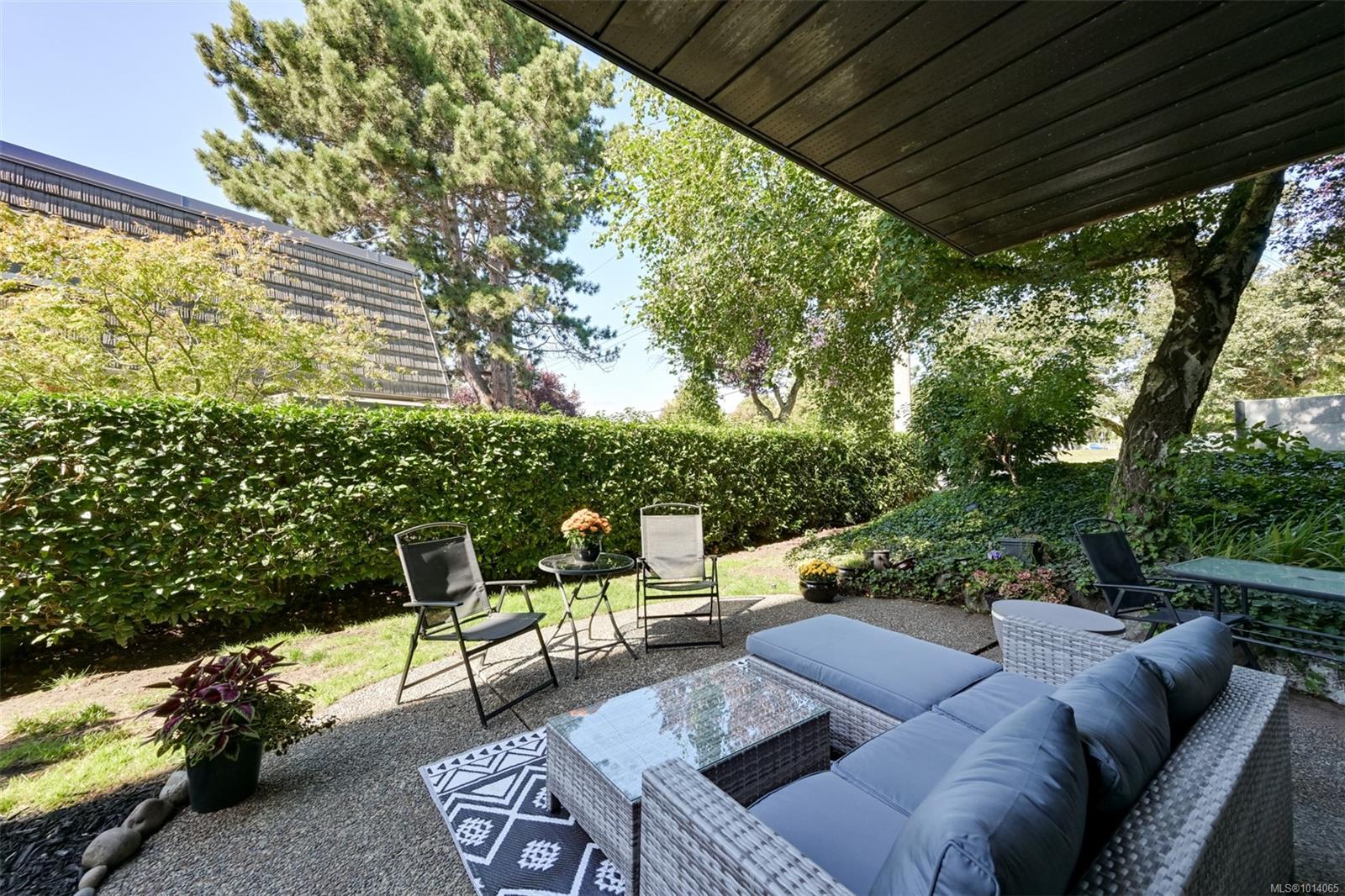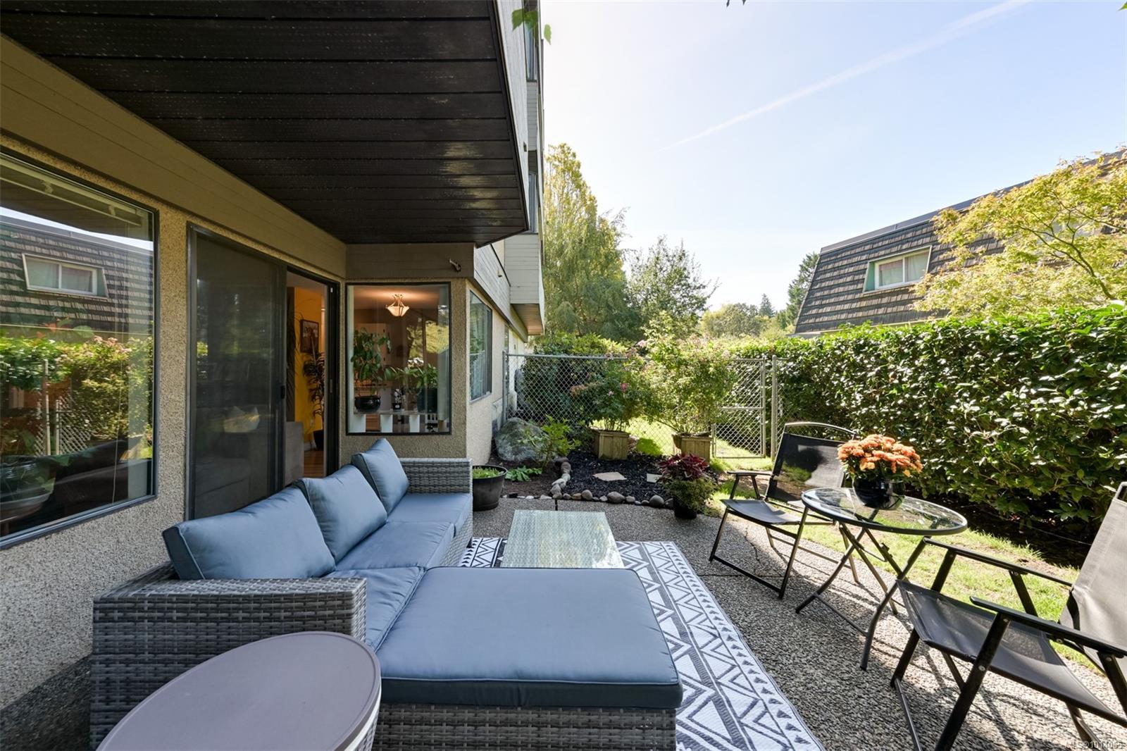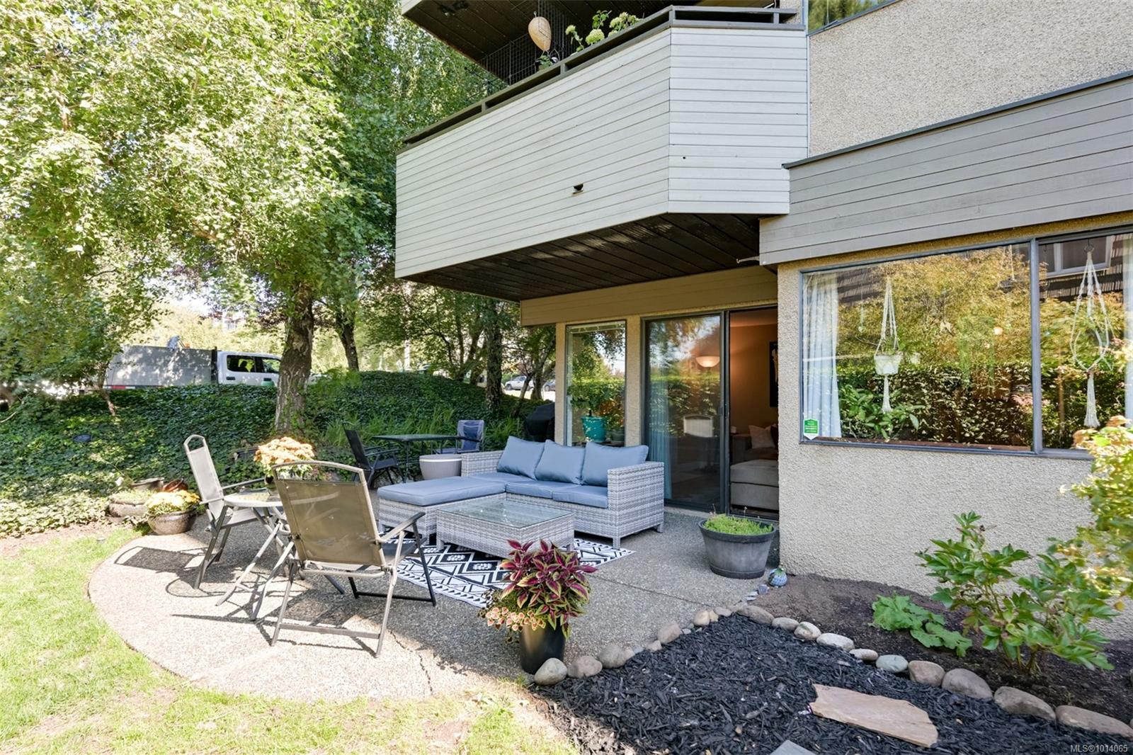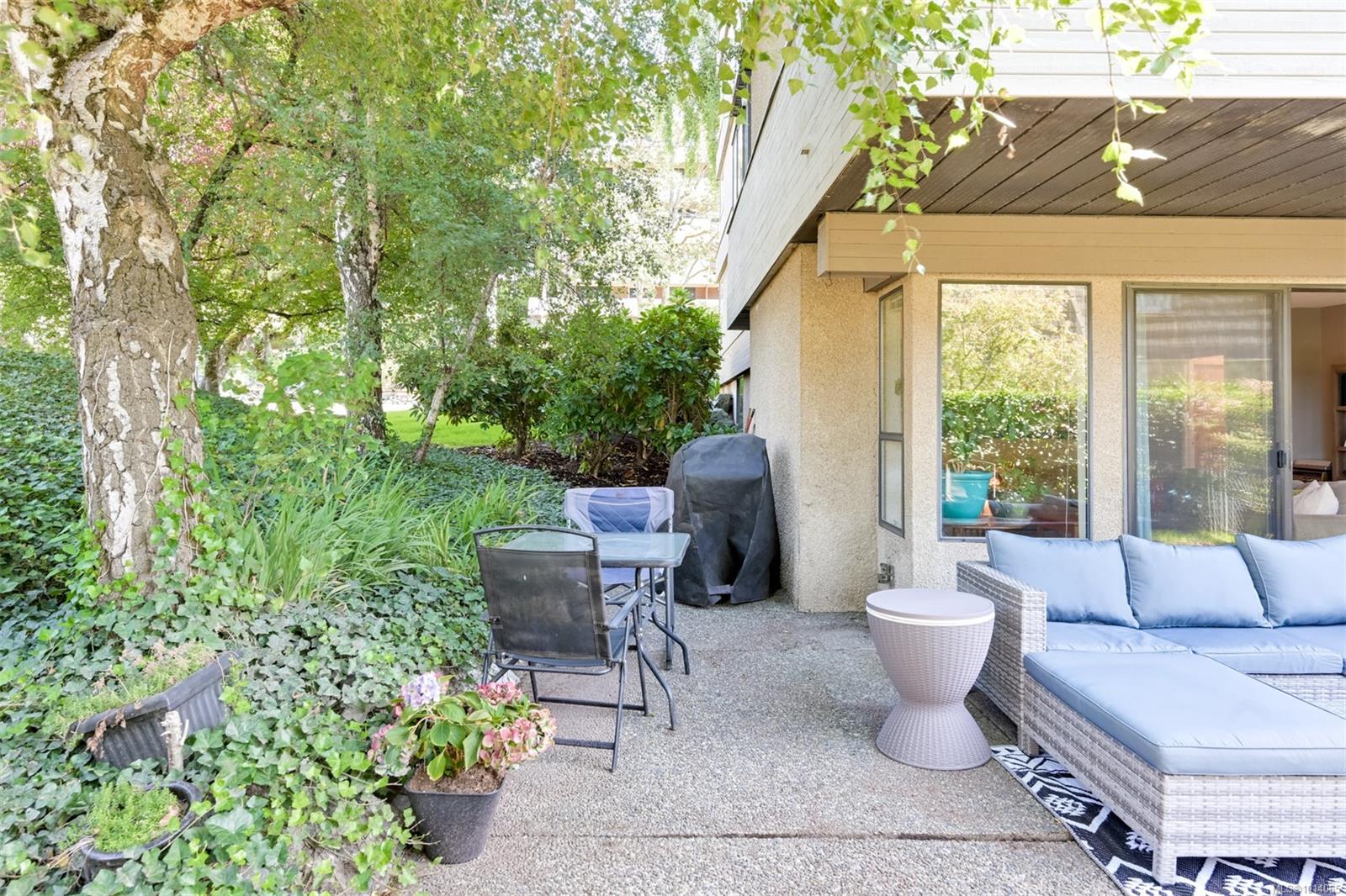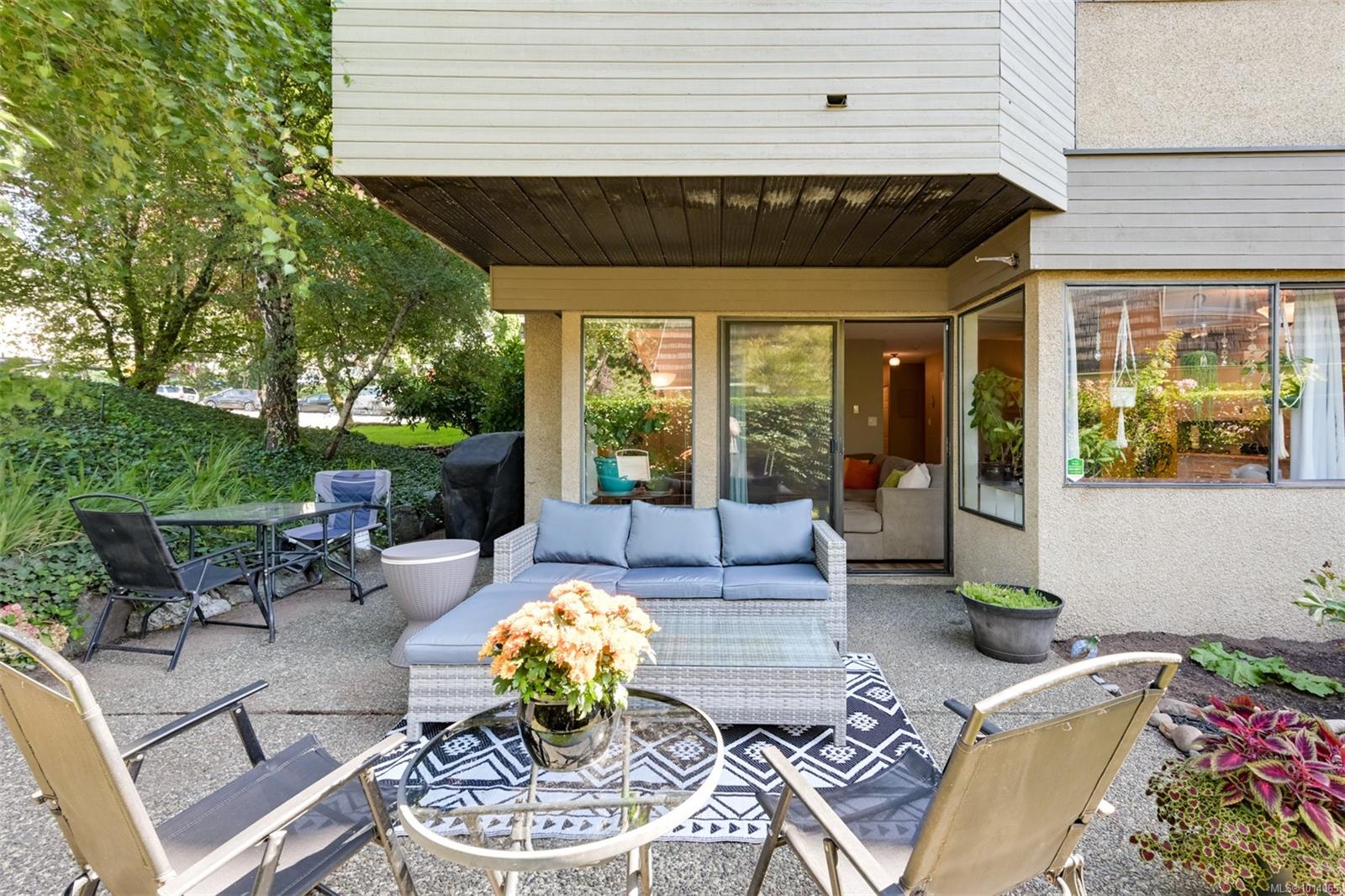 Two bedroom ground level corner unit with large patio at Glasgow Place! 844sqft of finished living space featuring insuite laundry, newer walk-in shower, lots of windows for natural light, large living room with wood burning fireplace, in-unit storage/pantry plus separate storage locker (rented $10/m), kitchen with good amount of cabinets, double sink and stainless steel fridge and stove, 13x10 primary bedroom and 10x10 second bedroom. Only unit on the ground level for good privacy and peace and quiet in this small ten unit strata. Unit faces west and 200sqft patio is a great place to BBQ, grass area handy for dog owners, or to just soak up the sun! Very desirable location with instant access to Rutledge Park from your patio, making it a great spot for kids and pets! A short walk to cafes, Mayfair Mall, Uptown, transit and all levels of amenities. Value priced at $369,900 for a two bedroom condo with parking located in the heart of Saanich.
