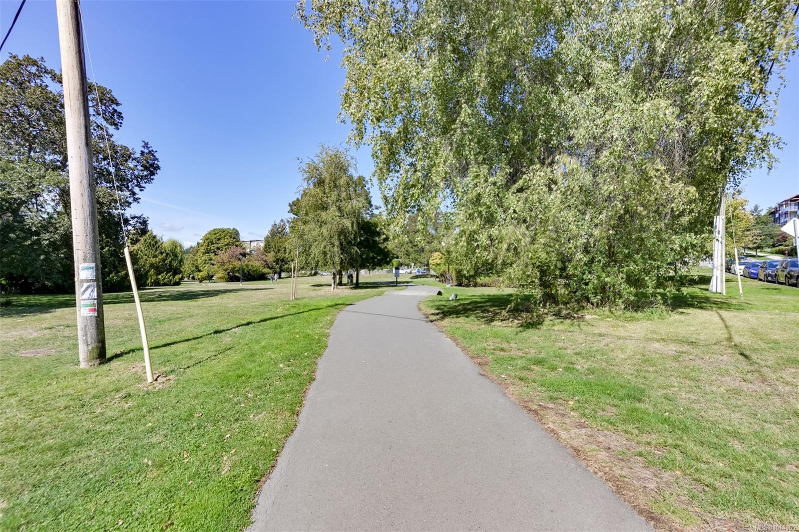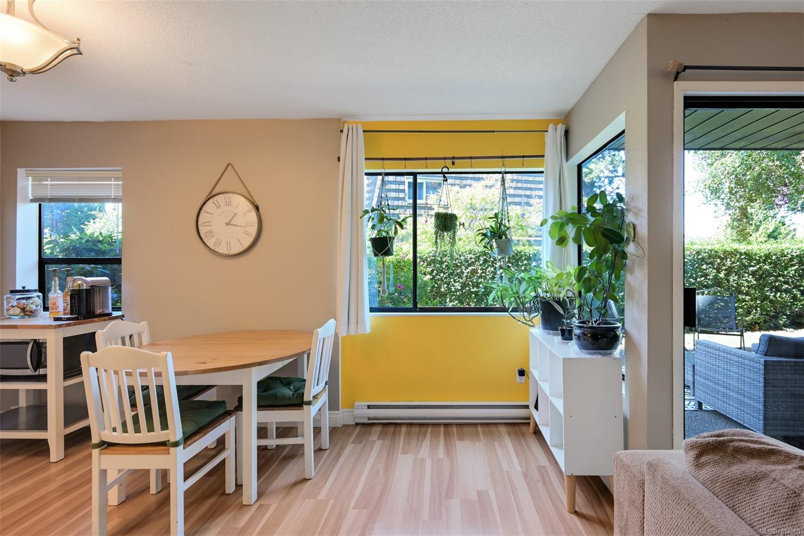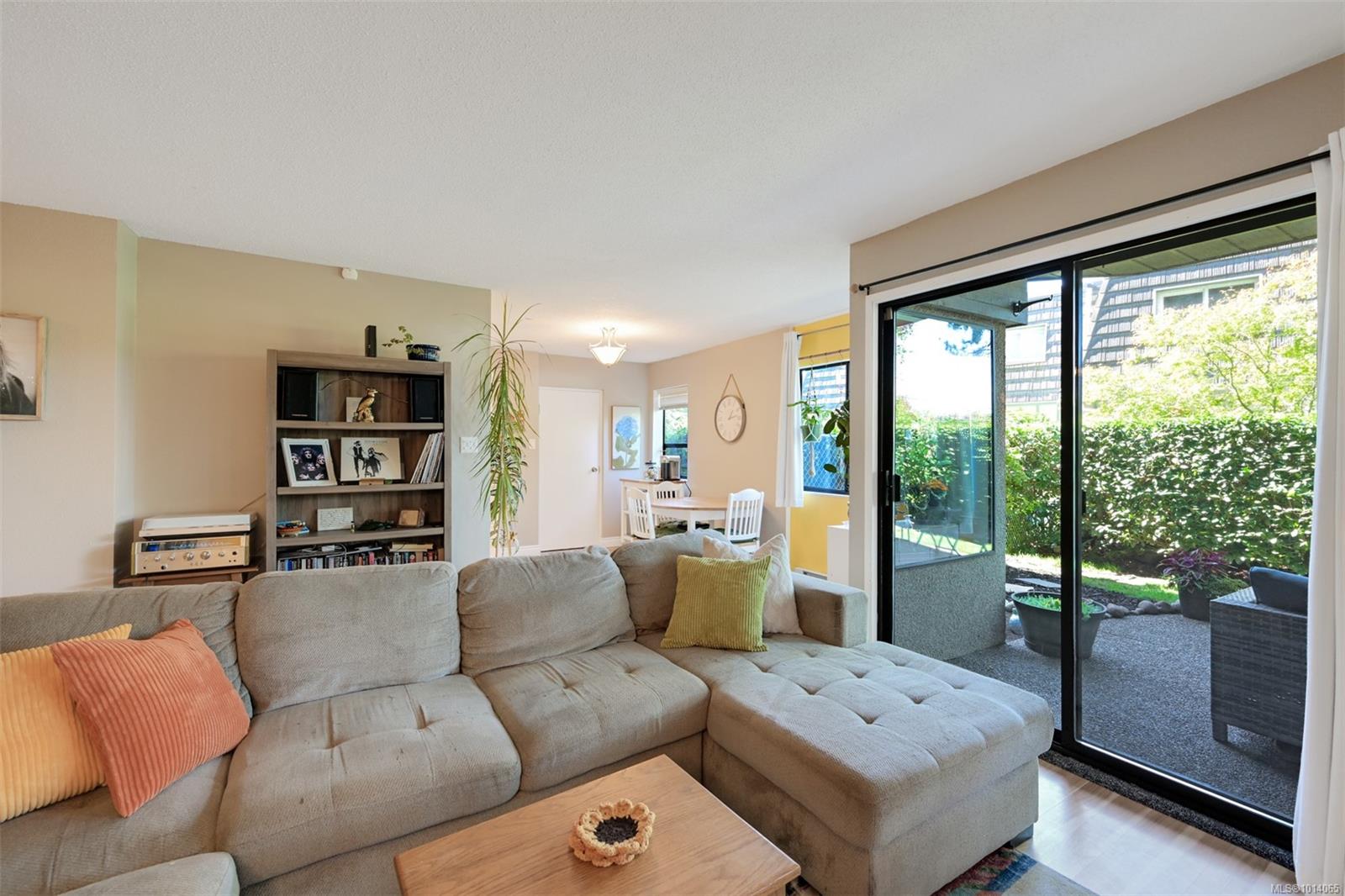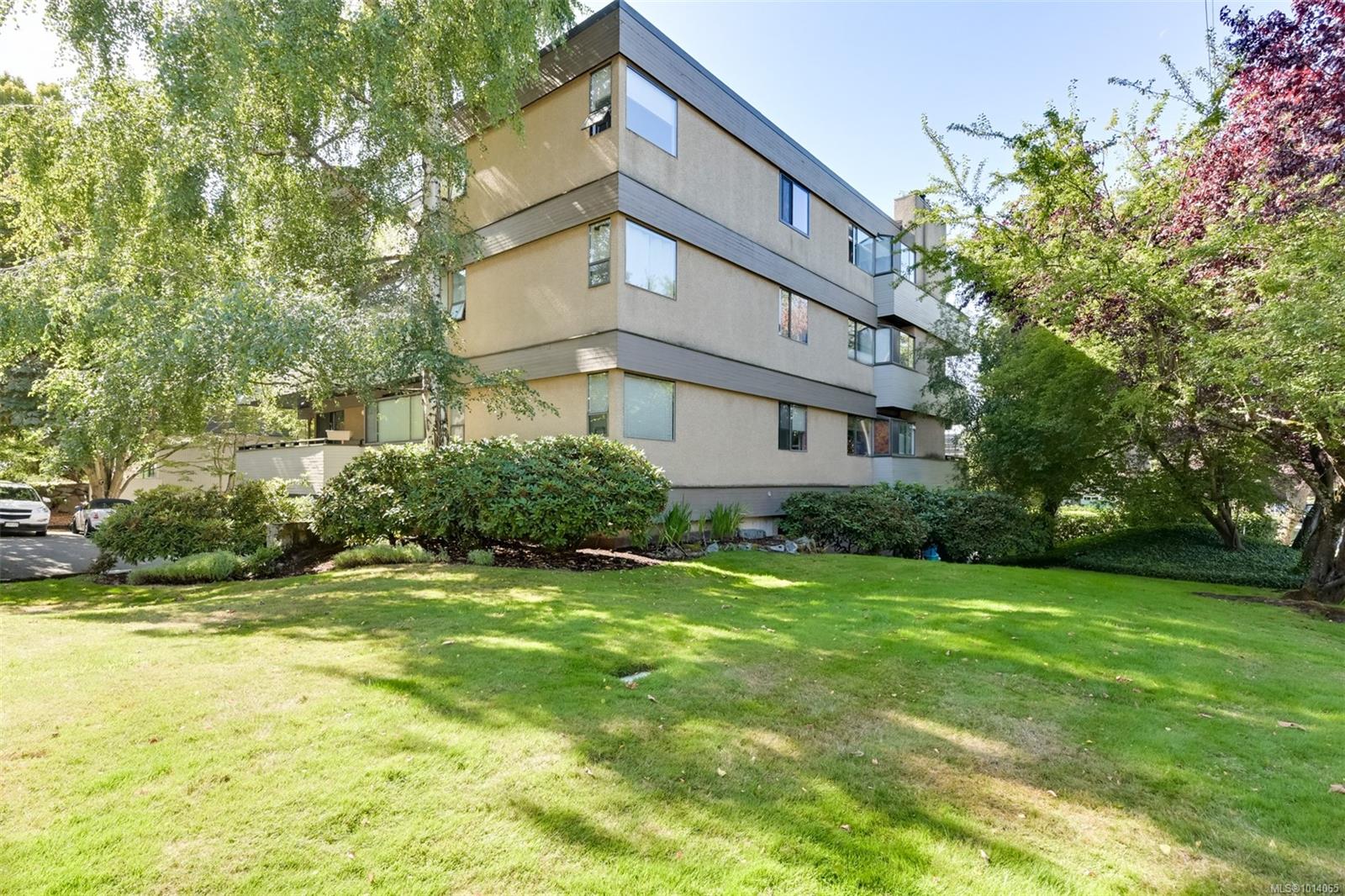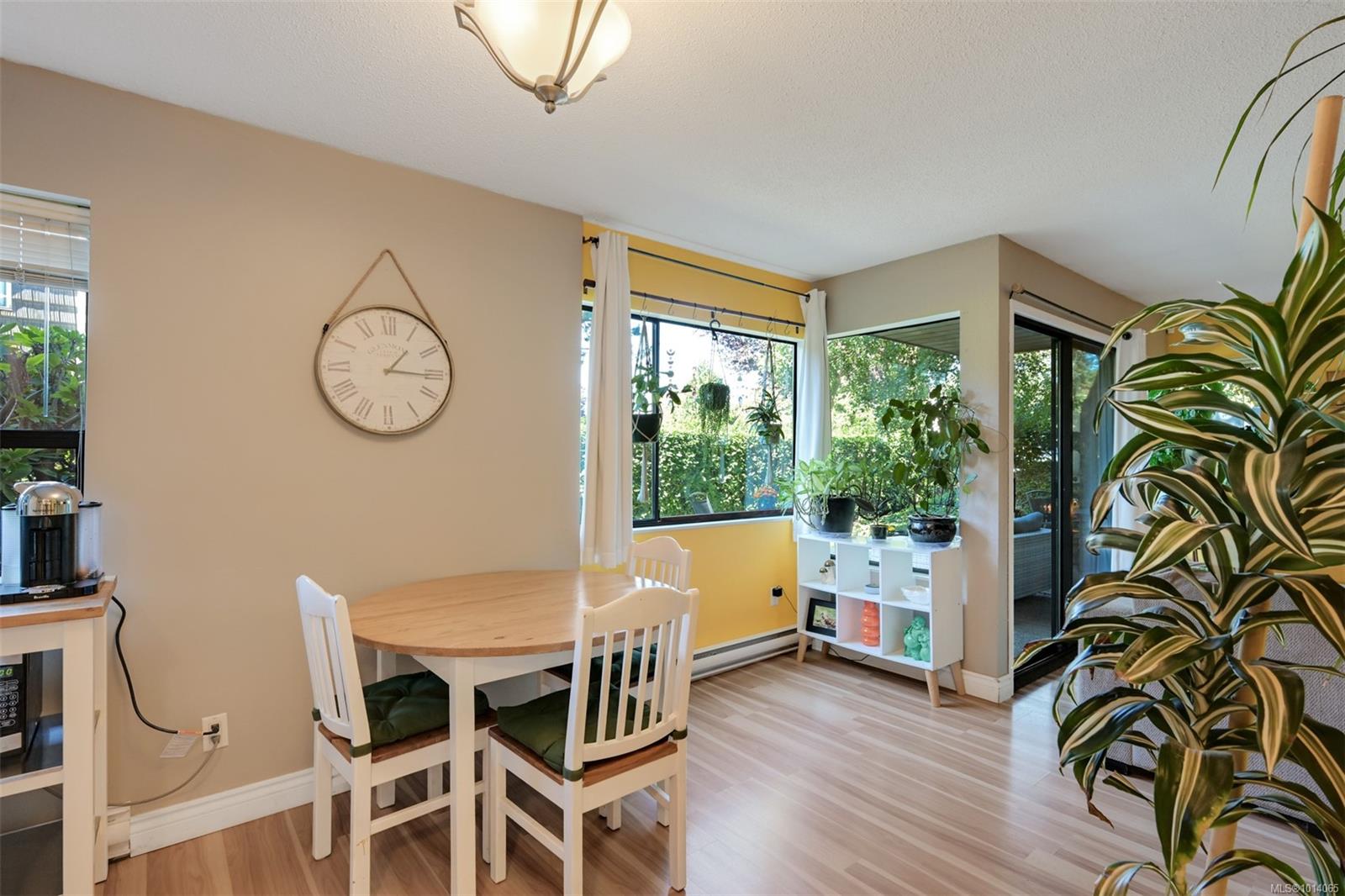 Two bedroom ground level corner unit with large patio at Glasgow Place! 844sqft of finished living space featuring insuite laundry, newer walk-in shower, lots of windows for natural light, large living room with wood burning fireplace, in-unit storage/pantry plus separate storage locker (rented $10/m), kitchen with good amount of cabinets, double sink and stainless steel fridge and stove, 13x10 primary bedroom and 10x10 second bedroom. Only unit on the ground level for good privacy and peace and quiet in this small ten unit strata. Unit faces west and 200sqft patio is a great place to BBQ, grass area handy for dog owners, or to just soak up the sun! Very desirable location with instant access to Rutledge Park from your patio, making it a great spot for kids and pets! A short walk to cafes, Mayfair Mall, Uptown, transit and all levels of amenities. Value priced at $369,900 for a two bedroom condo with parking located in the heart of Saanich.