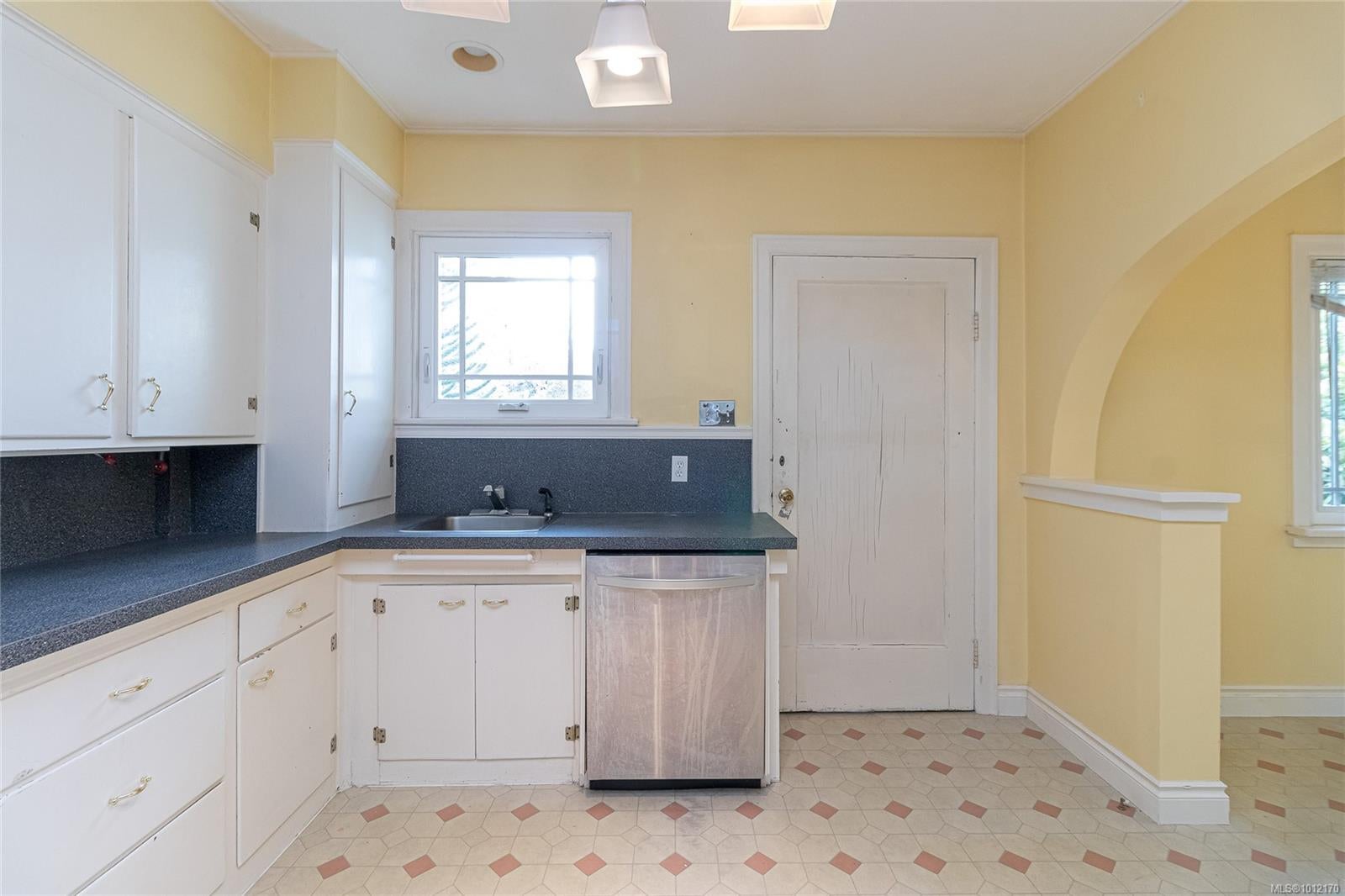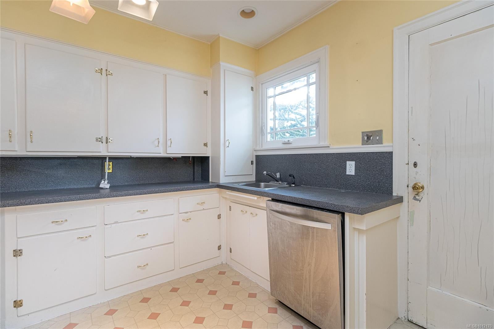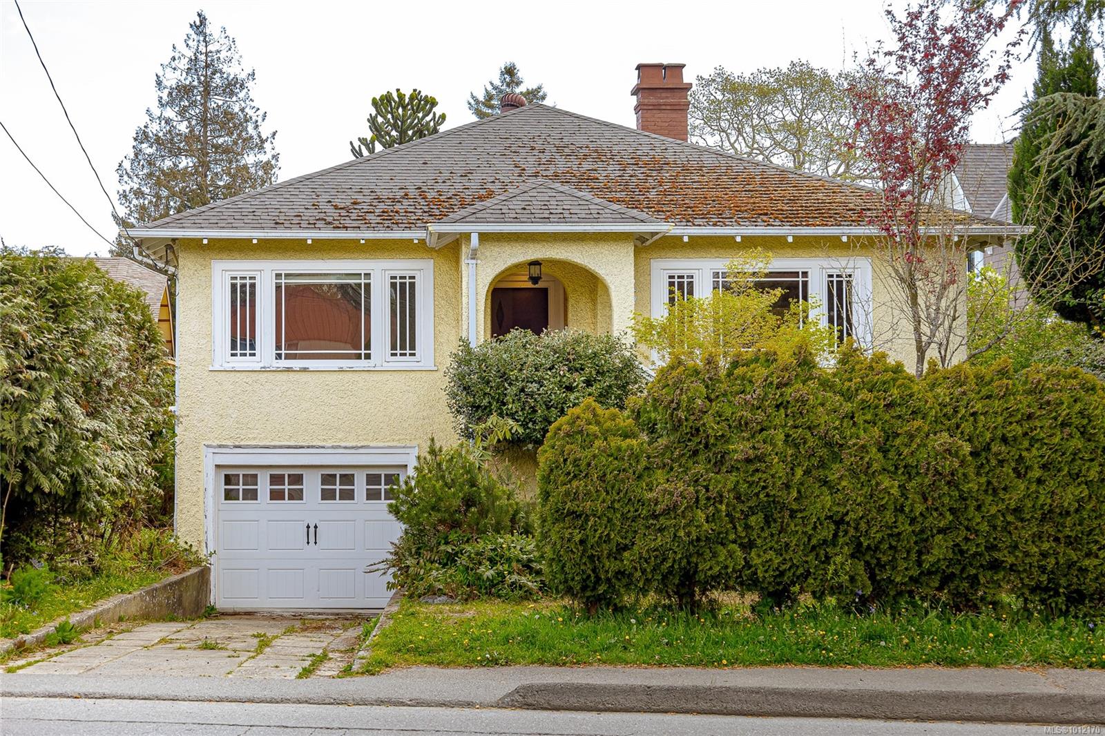 Steeped in charm & bursting with potential, this 1934 home offers nearly 1,900 sq ft of living space across two levels, tucked into a 6,000+ sq ft lot in one of Victoria’s most desirable neighbourhoods. With top-rated public and private schools nearby, plus quick access to UVic, Camosun College, Hillside Mall & the Oak Bay border, the location offers unbeatable convenience for families, students, or investors alike. Original hardwood floors, a wood-burning fireplace & classic built-ins with leaded glass doors set the tone in the cozy living room. The kitchen holds onto its retro vibe while offering updated stainless steel appliances & a sunny dining nook with a lovely view of the mature monkey tree out back. From the rear mudroom, step out into a private backyard surrounded by mature trees & landscaping. The main bathroom has been refreshed and features tiled surround, a newer vanity, and a deep tub. Downstairs, discover a flexible lower level with unfinished storage, a laundry area, and access to the single-car garage. A separate side entrance leads to a one-bedroom in-law space with a compact kitchen, updated 3-piece bath, and open-concept living/sleeping area—ideal for extended family, a student rental, or even a rec room. Whether you're dreaming of a stylish renovation project, a long-term investment, or your very first home in a vibrant, central location, this character-filled property offers endless possibilities.