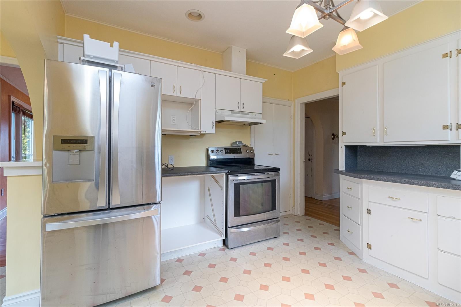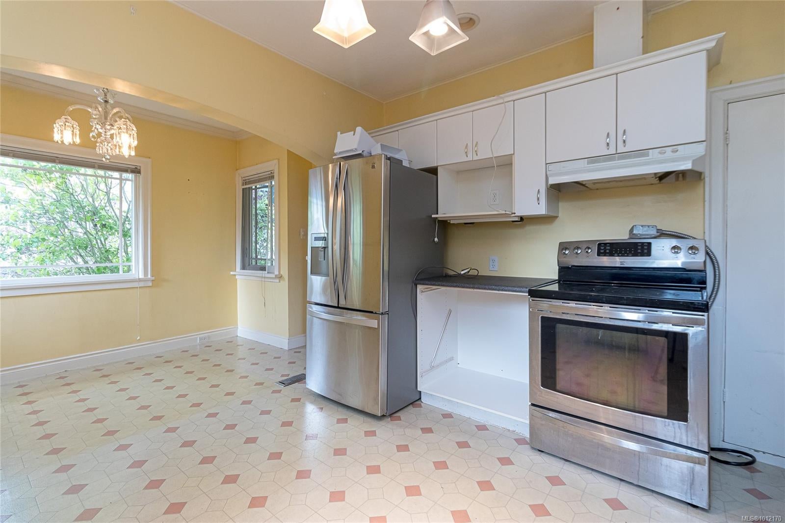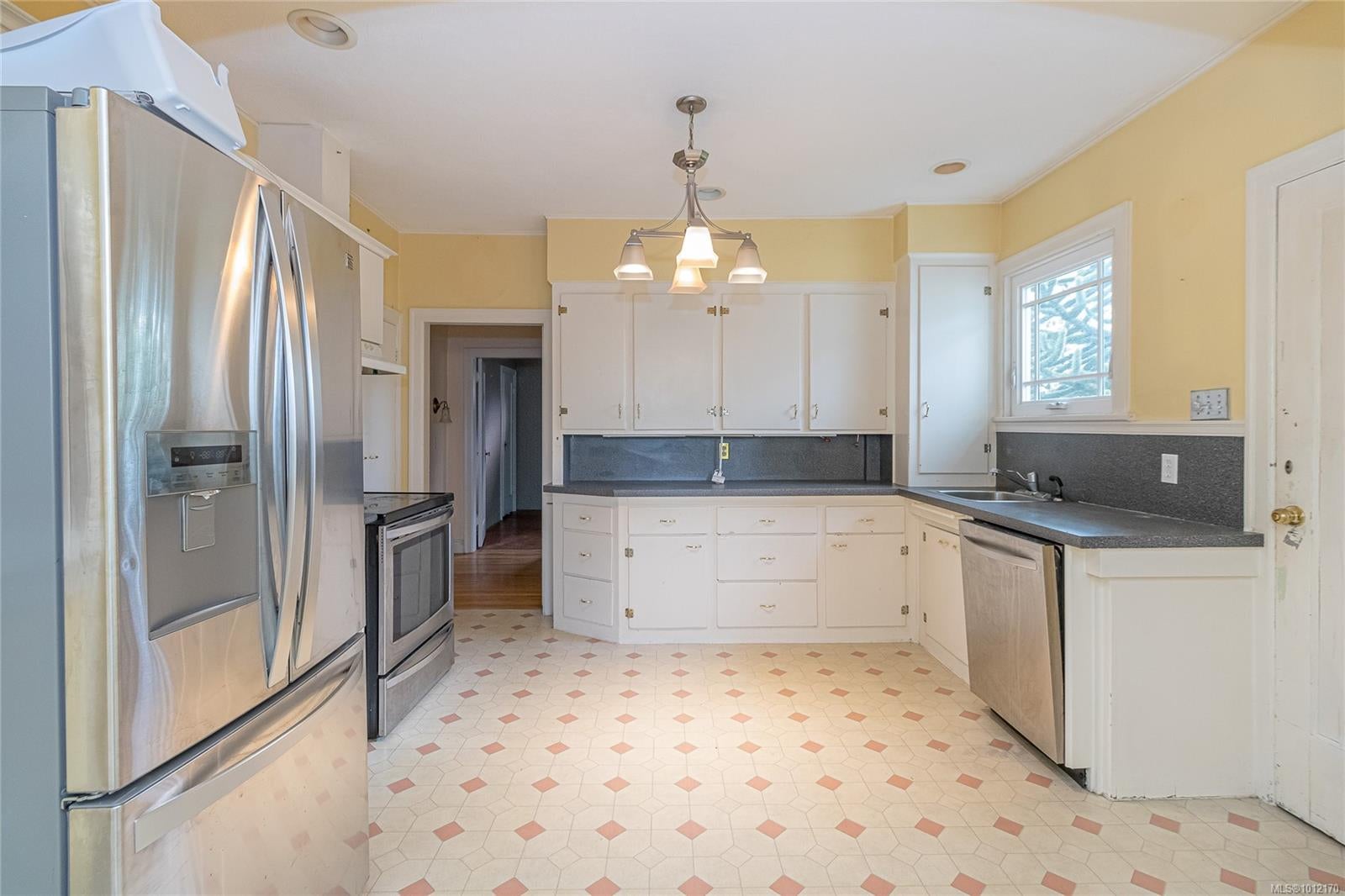 Steeped in charm & bursting with potential, this 1934 home offers nearly 1,900 sq ft of living space across two levels, tucked into a 6,000+ sq ft lot in one of Victoria’s most desirable neighbourhoods. With top-rated public and private schools nearby, plus quick access to UVic, Camosun College, Hillside Mall & the Oak Bay border, the location offers unbeatable convenience for families, students, or investors alike. Original hardwood floors, a wood-burning fireplace & classic built-ins with leaded glass doors set the tone in the cozy living room. The kitchen holds onto its retro vibe while offering updated stainless steel appliances & a sunny dining nook with a lovely view of the mature monkey tree out back. From the rear mudroom, step out into a private backyard surrounded by mature trees & landscaping. The main bathroom has been refreshed and features tiled surround, a newer vanity, and a deep tub. Downstairs, discover a flexible lower level with unfinished storage, a laundry area, and access to the single-car garage. A separate side entrance leads to a one-bedroom in-law space with a compact kitchen, updated 3-piece bath, and open-concept living/sleeping area—ideal for extended family, a student rental, or even a rec room. Whether you're dreaming of a stylish renovation project, a long-term investment, or your very first home in a vibrant, central location, this character-filled property offers endless possibilities.