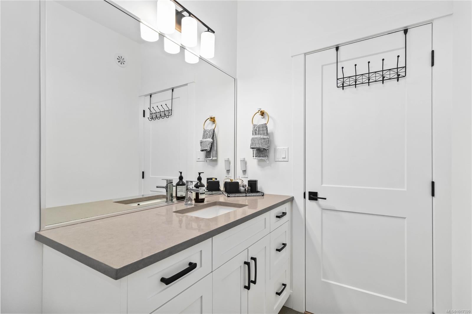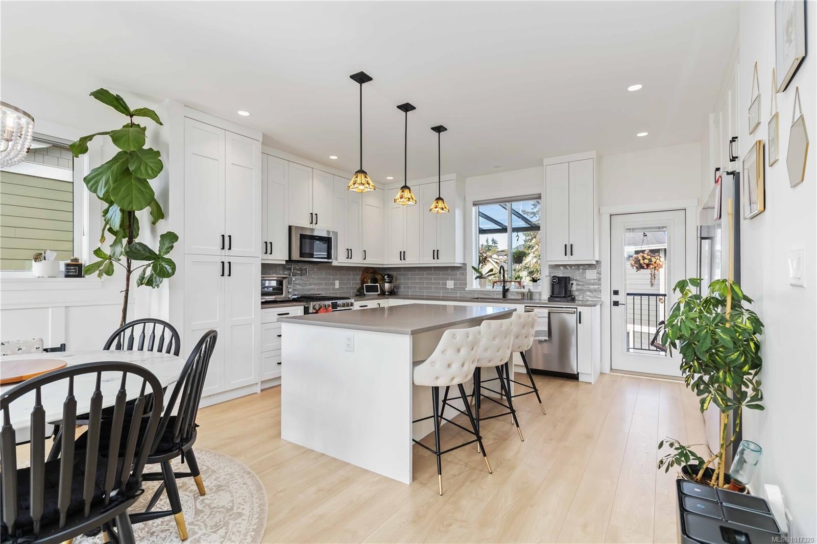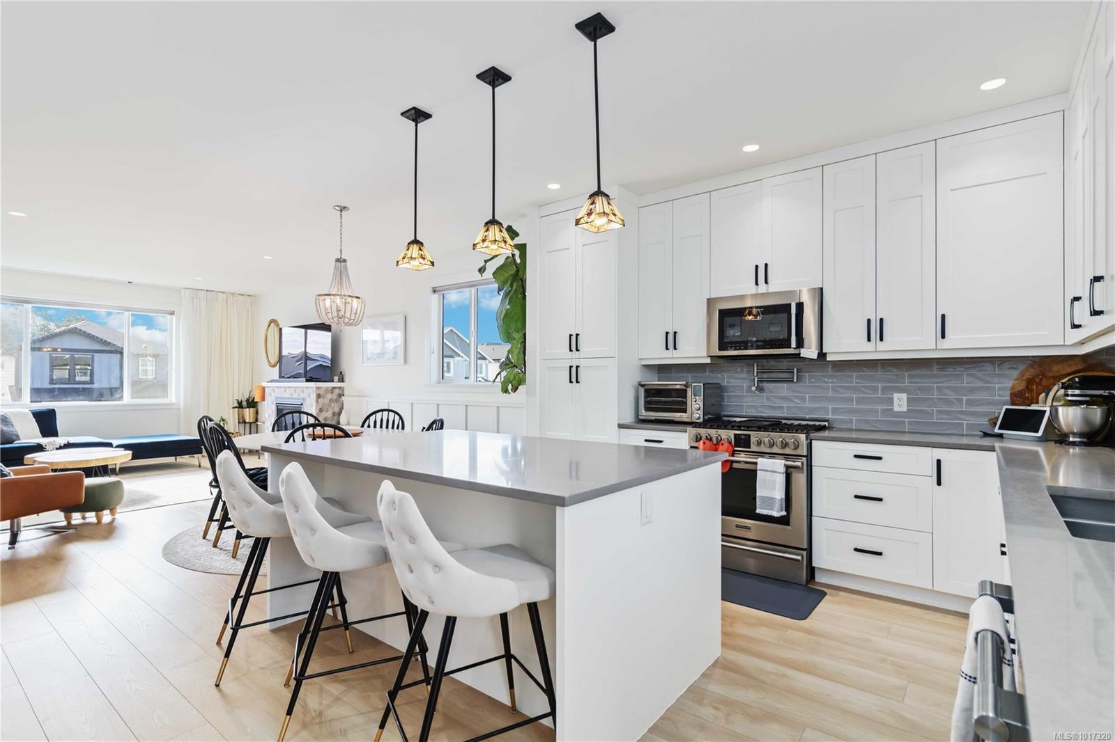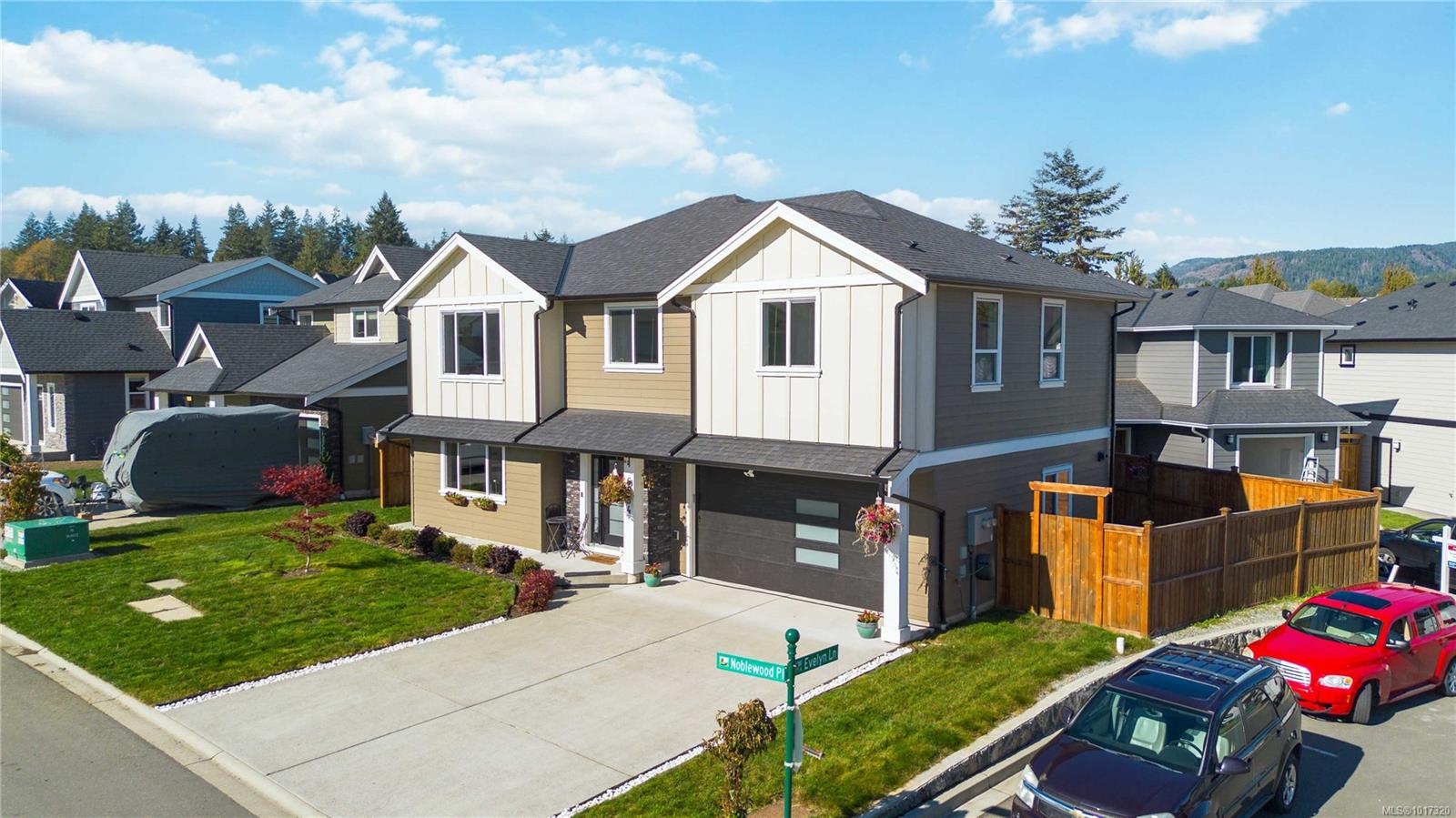 Check out this beautiful nearly new home in popular Woodland Creek - walking distance to schools, parks & Sooke Centre. Quality built by well regarded local builder. This 3 Bedroom 2 Bath home PLUS ground floor self contained 2 BR 1 Bath LEGAL SUITE (2nd bdrm-no closet) offers a spacious and open floor plan, large kitchen w/painted shaker cabinets, under counter lighting, quartz counter tops, S/S appliances, pantry & large island. Wainscoting styles the dining area. The large master suite with walk-in, attractive ensuite, heated tile floors, quartz counter, double sinks & under cabinet lighting. Laundry room has sorting counter & cabinets. Easy care laminate flooring throughout, carpeted stairs, Economical heating system, tankless hot water system. The oversized double car garage is wired for EV charger. In an ultra-convenient location with shops and amenities close by, and Westshore shopping a quick 20 min drive. Affordable new home living with built-in mortgage helper!