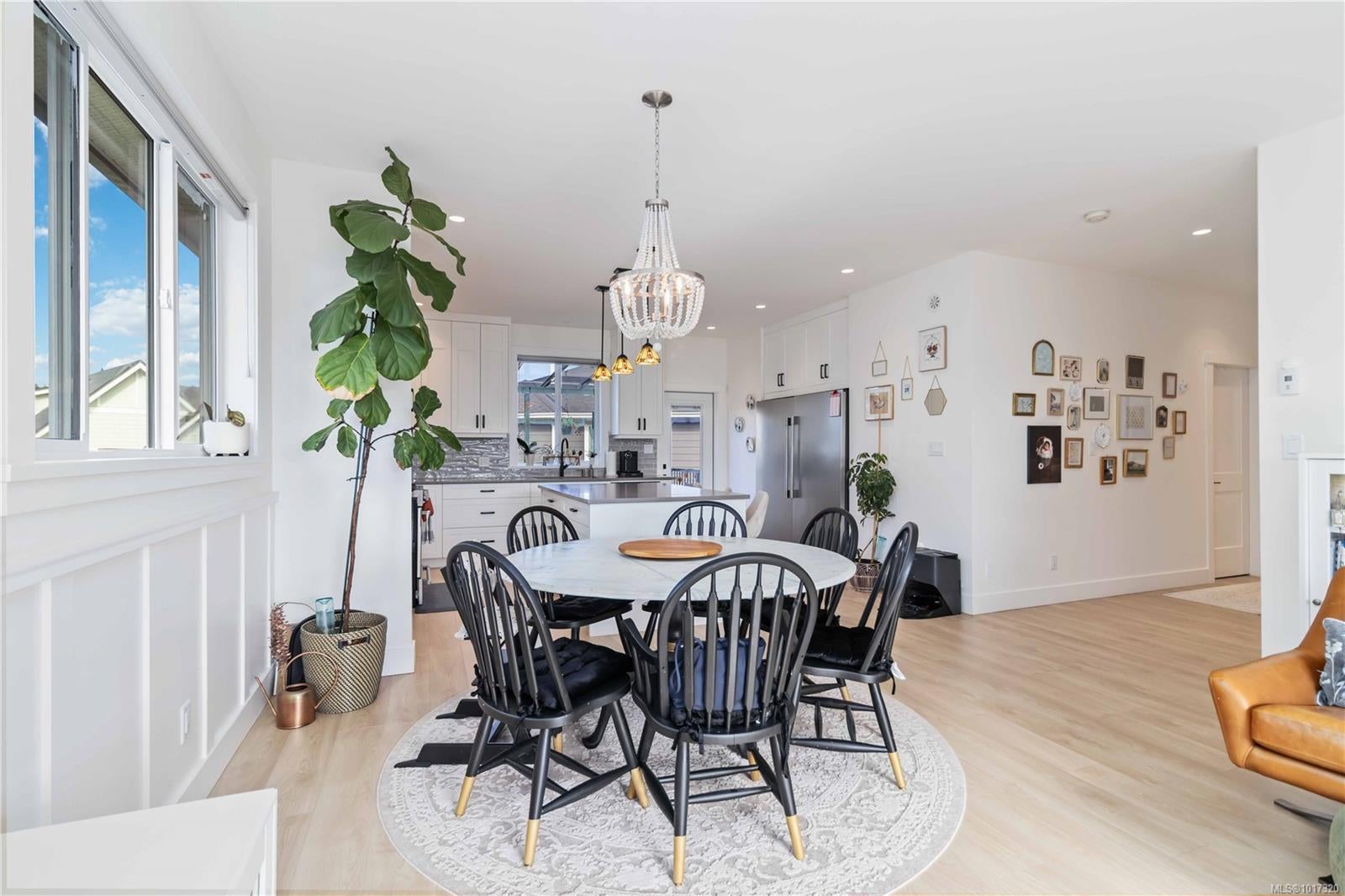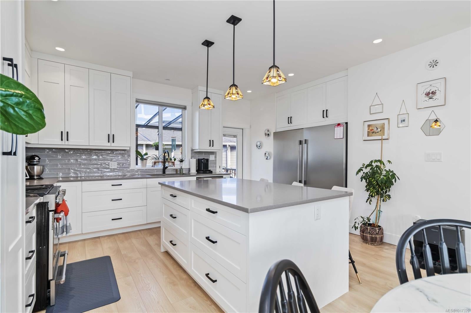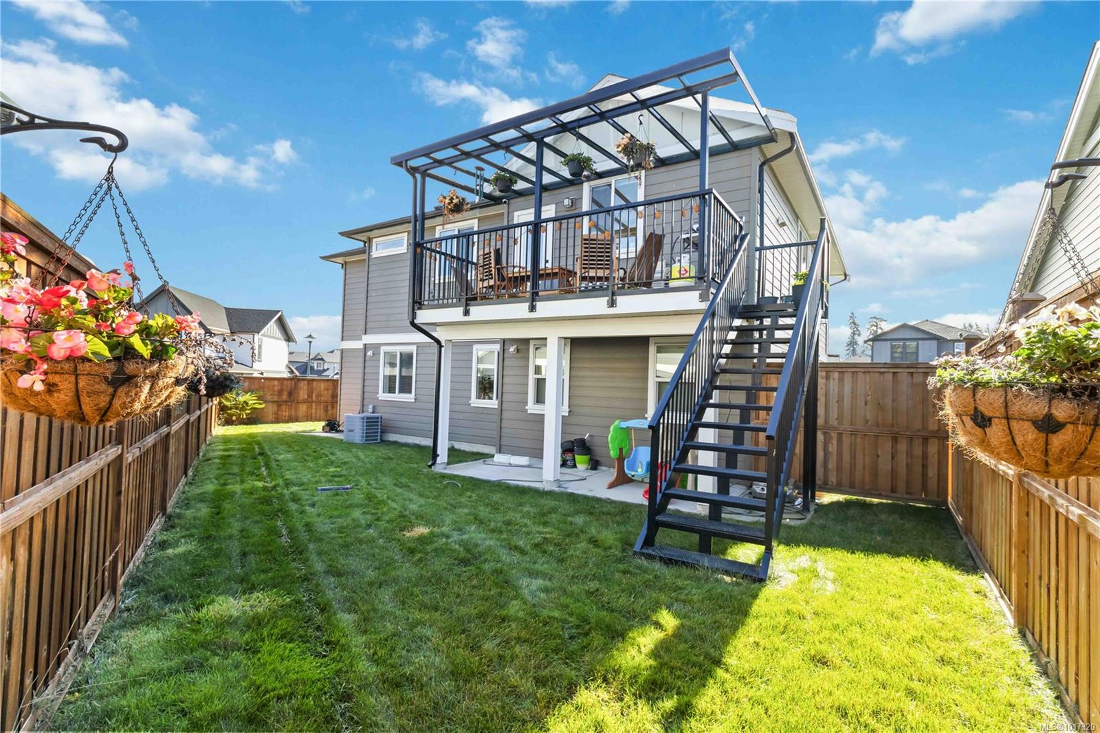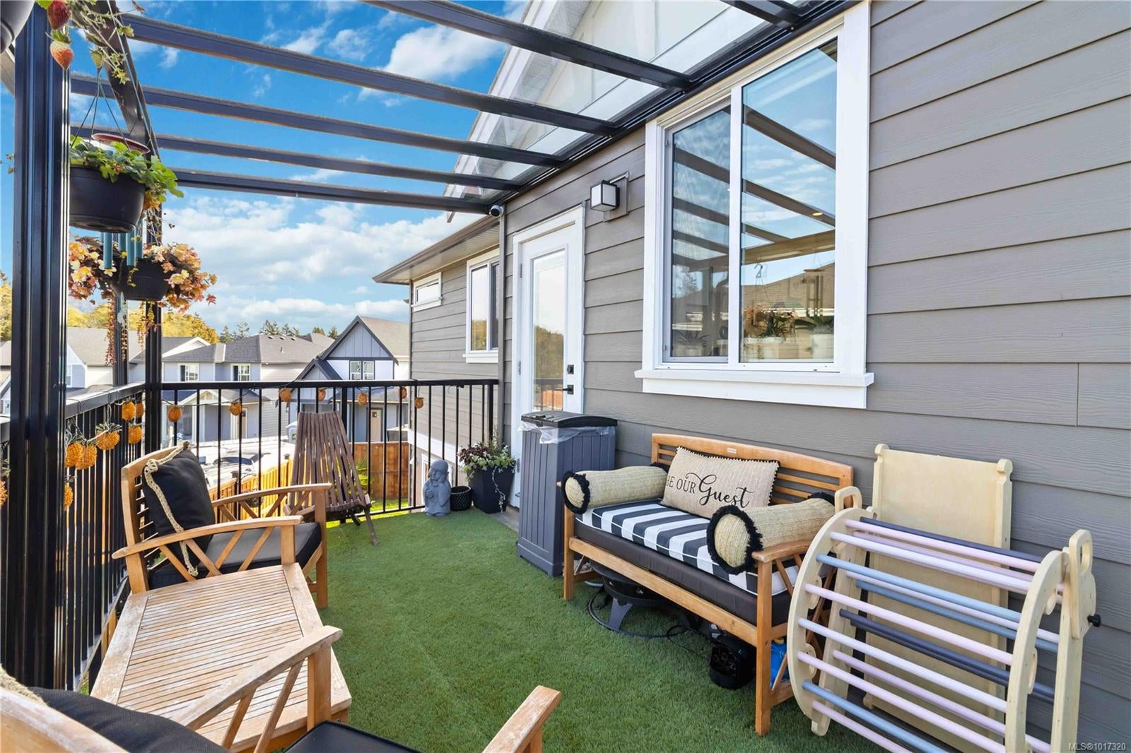 Check out this beautiful nearly new home in popular Woodland Creek - walking distance to schools, parks & Sooke Centre. Quality built by well regarded local builder. This 3 Bedroom 2 Bath home PLUS ground floor self contained 2 BR 1 Bath LEGAL SUITE (2nd bdrm-no closet) offers a spacious and open floor plan, large kitchen w/painted shaker cabinets, under counter lighting, quartz counter tops, S/S appliances, pantry & large island. Wainscoting styles the dining area. The large master suite with walk-in, attractive ensuite, heated tile floors, quartz counter, double sinks & under cabinet lighting. Laundry room has sorting counter & cabinets. Easy care laminate flooring throughout, carpeted stairs, Economical heating system, tankless hot water system. The oversized double car garage is wired for EV charger. In an ultra-convenient location with shops and amenities close by, and Westshore shopping a quick 20 min drive. Affordable new home living with built-in mortgage helper!