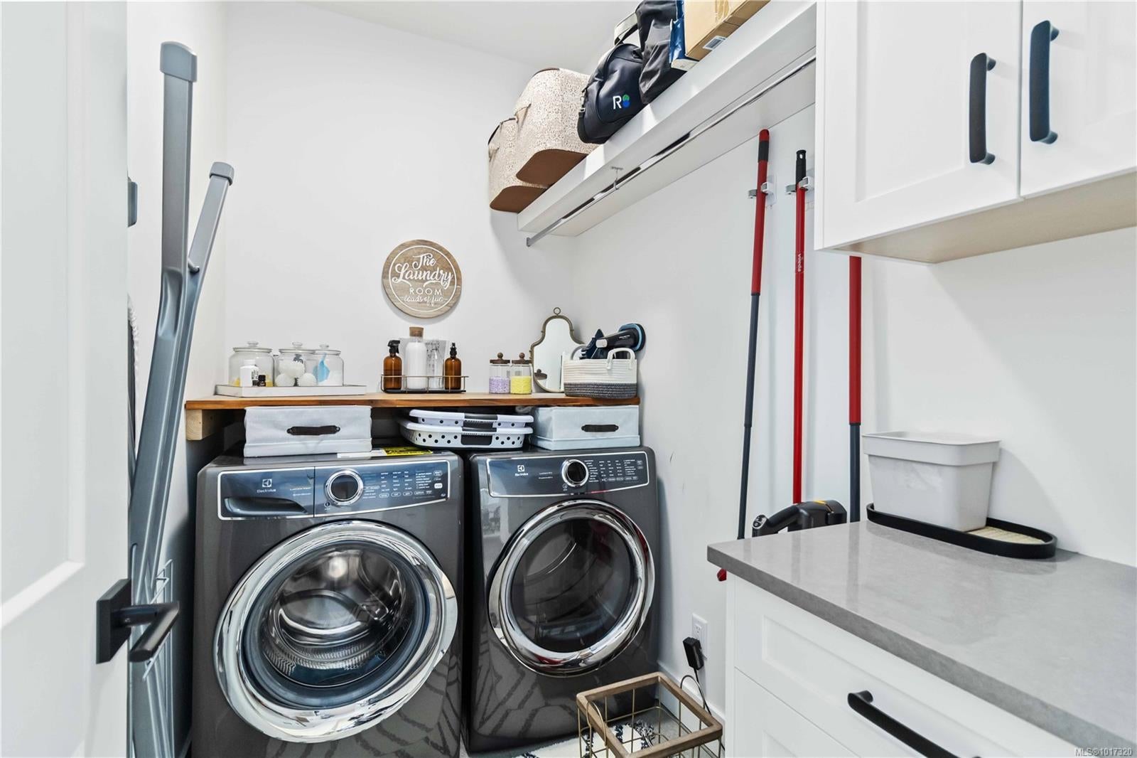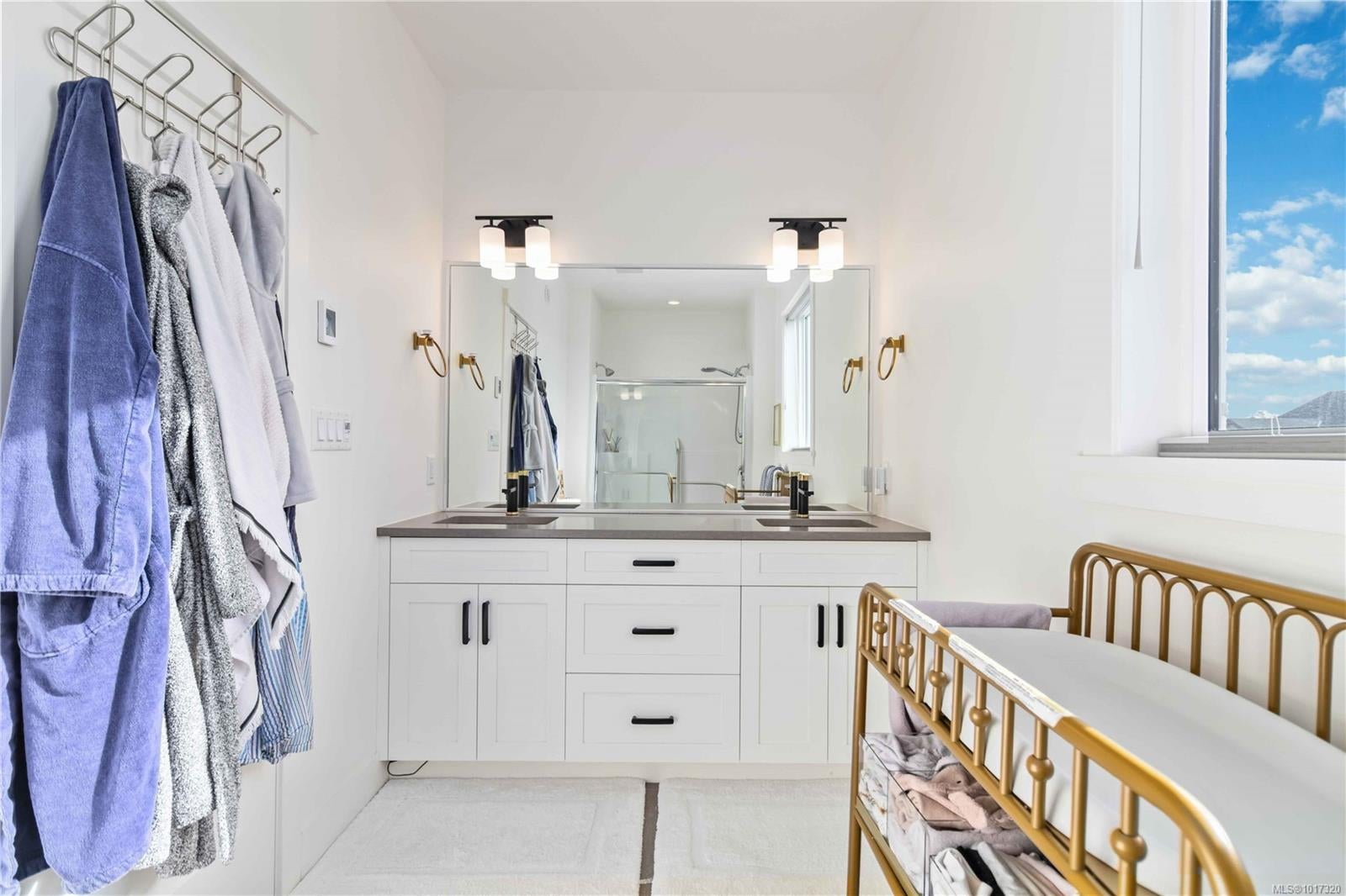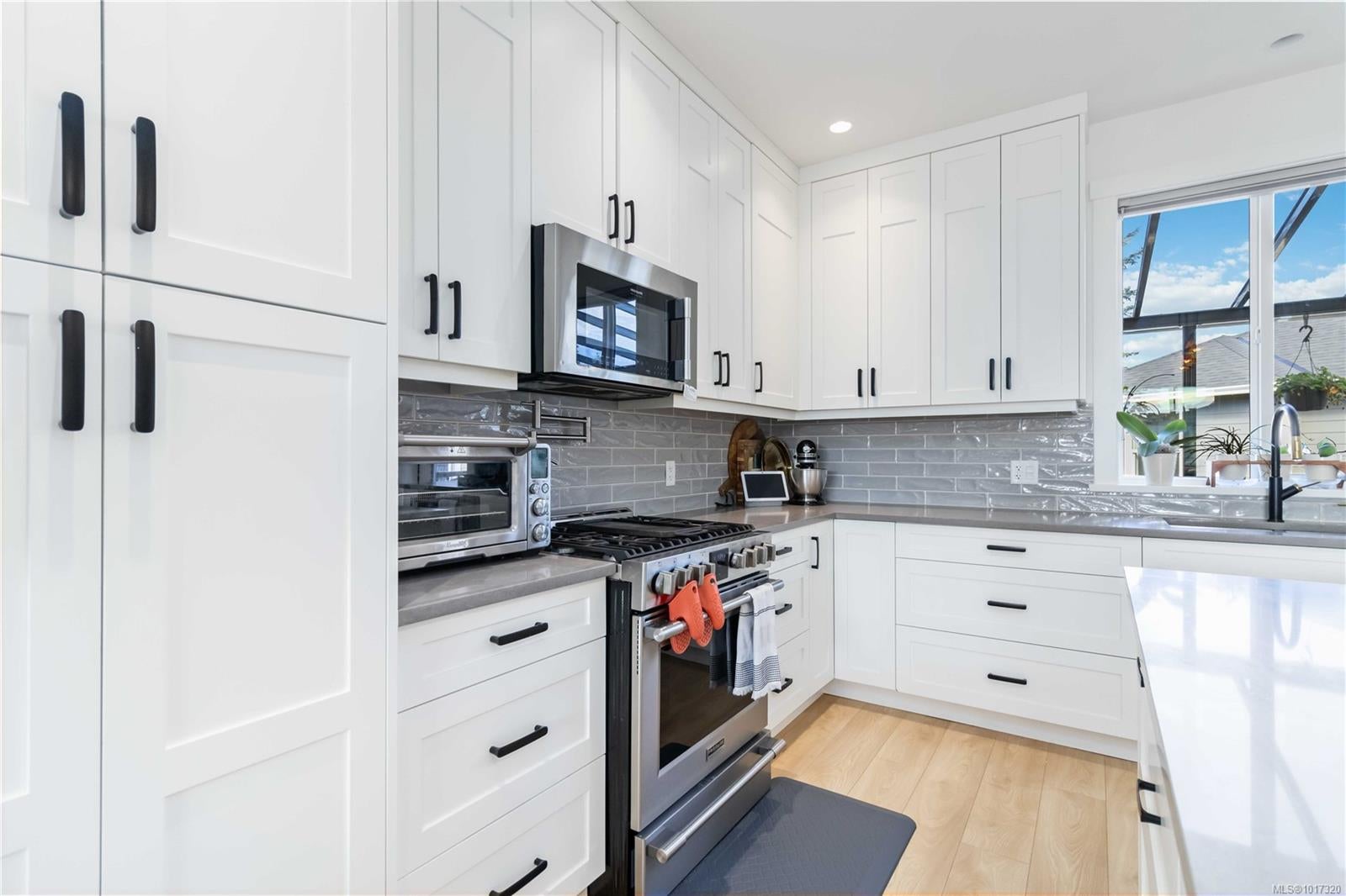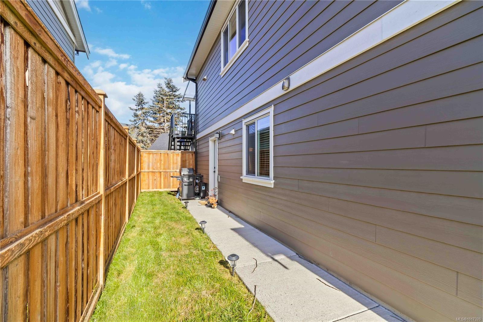 Check out this beautiful nearly new home in popular Woodland Creek - walking distance to schools, parks & Sooke Centre. Quality built by well regarded local builder. This 3 Bedroom 2 Bath home PLUS ground floor self contained 2 BR 1 Bath LEGAL SUITE (2nd bdrm-no closet) offers a spacious and open floor plan, large kitchen w/painted shaker cabinets, under counter lighting, quartz counter tops, S/S appliances, pantry & large island. Wainscoting styles the dining area. The large master suite with walk-in, attractive ensuite, heated tile floors, quartz counter, double sinks & under cabinet lighting. Laundry room has sorting counter & cabinets. Easy care laminate flooring throughout, carpeted stairs, Economical heating system, tankless hot water system. The oversized double car garage is wired for EV charger. In an ultra-convenient location with shops and amenities close by, and Westshore shopping a quick 20 min drive. Affordable new home living with built-in mortgage helper!