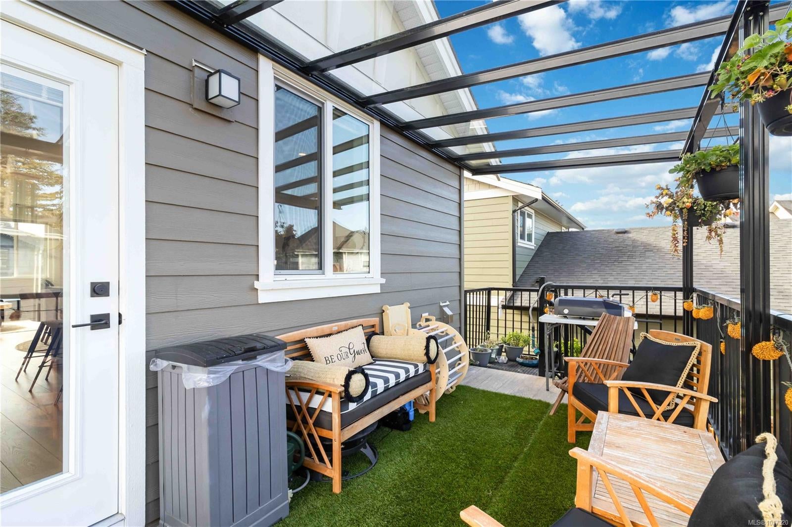 Check out this beautiful nearly new home in popular Woodland Creek - walking distance to schools, parks & Sooke Centre. Quality built by well regarded local builder. This 3 Bedroom 2 Bath home PLUS ground floor self contained 2 BR 1 Bath LEGAL SUITE (2nd bdrm-no closet) offers a spacious and open floor plan, large kitchen w/painted shaker cabinets, under counter lighting, quartz counter tops, S/S appliances, pantry & large island. Wainscoting styles the dining area. The large master suite with walk-in, attractive ensuite, heated tile floors, quartz counter, double sinks & under cabinet lighting. Laundry room has sorting counter & cabinets. Easy care laminate flooring throughout, carpeted stairs, Economical heating system, tankless hot water system. The oversized double car garage is wired for EV charger. In an ultra-convenient location with shops and amenities close by, and Westshore shopping a quick 20 min drive. Affordable new home living with built-in mortgage helper!