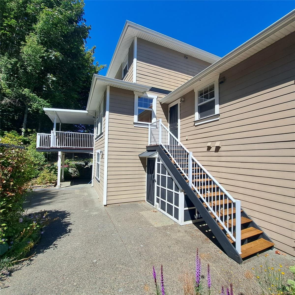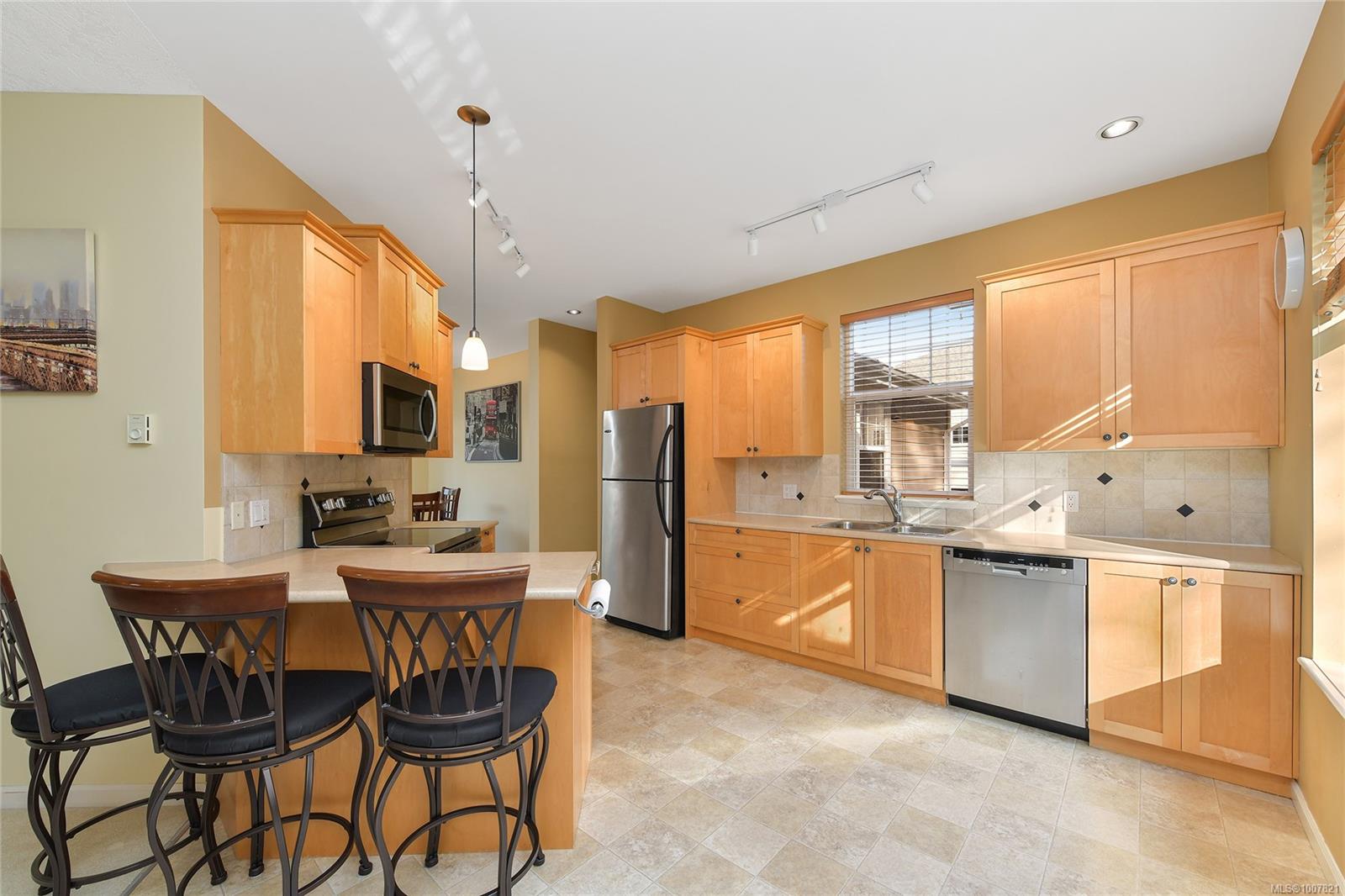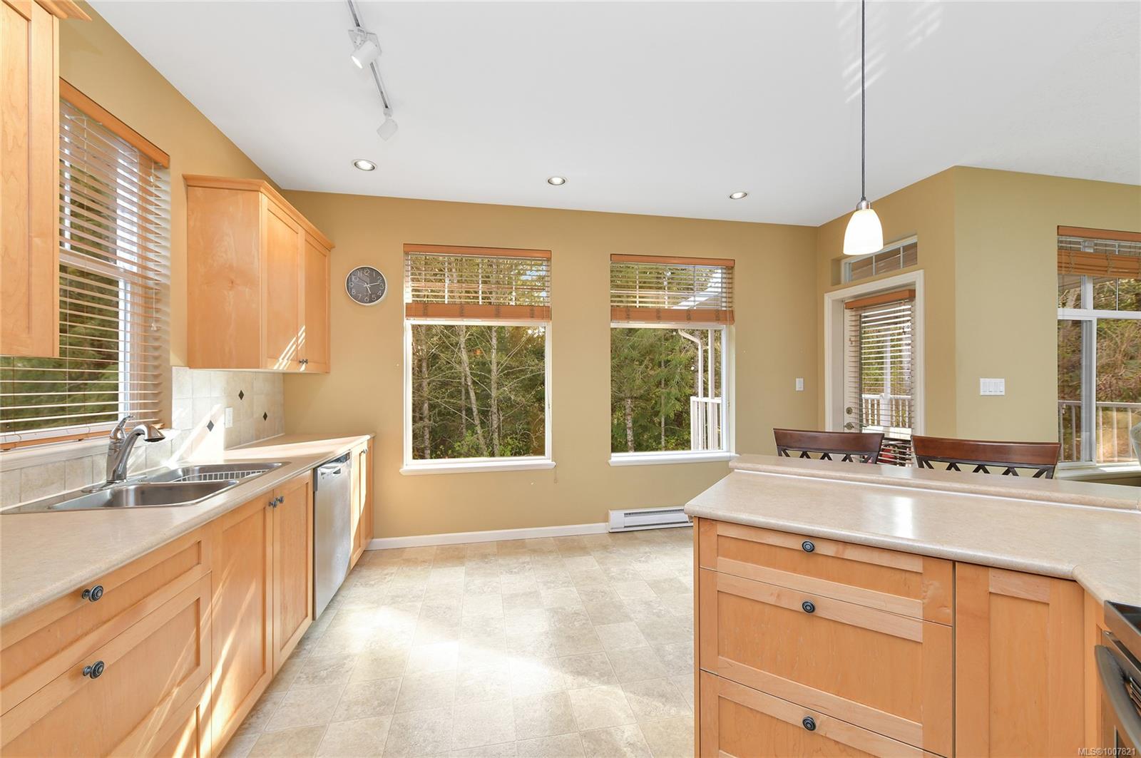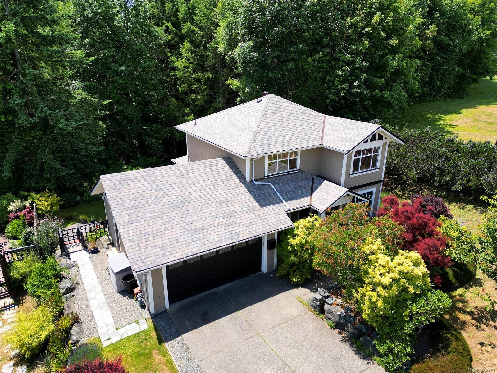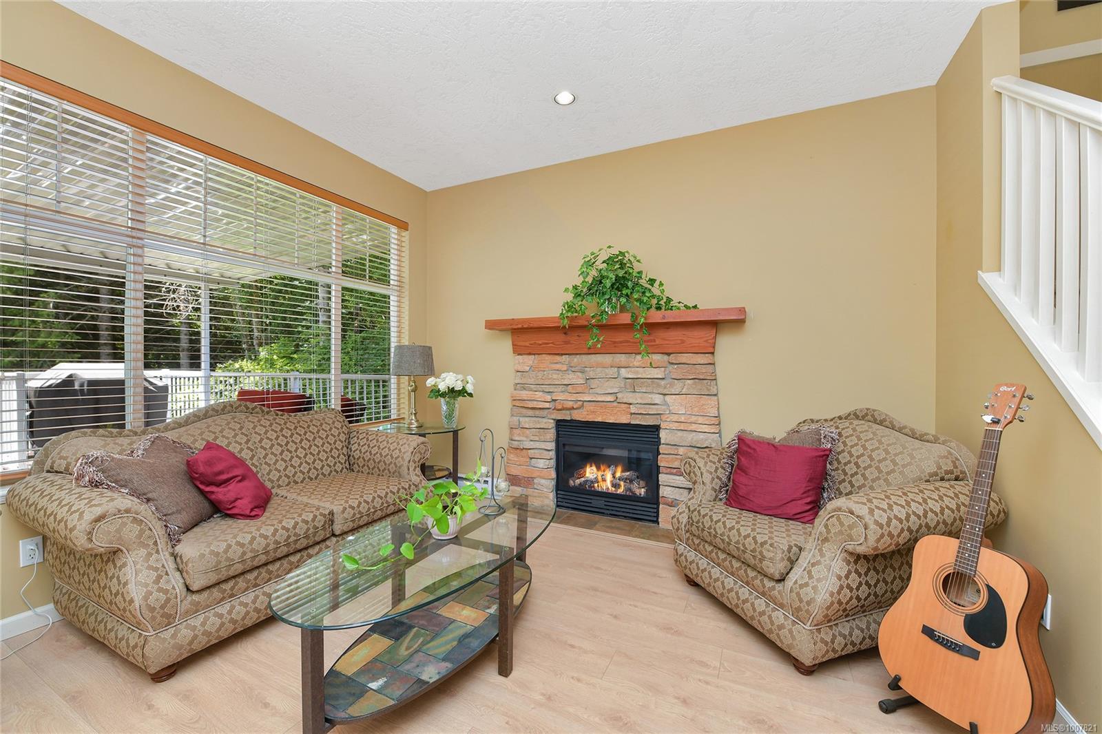 PRICE REDUCTION! Stunning residence in Sunriver Estates offering the perfect blend of luxury and tranquility. Backing onto green space and DeMamiel Creek, this home provides picturesque forest views & a peaceful atmosphere. The property features a NEW ROOF, NEW FLOORS ON THE MAIN, NEW FRIDGE, spectacular landscaping with mature plants, beautiful flowers, bushes & raised garden beds. The home features a living room with a cozy fireplace, updated flooring, heat pump, central vacuum, hot water on demand, large windows, laundry room, office/den, and large double garage! Enjoy the expansive covered deck off the kitchen overlooking the serene view and manicured backyard. Upstairs you'll find 3 bedrooms plus two 4-piece bathrooms. The lower level features a private 1-bed suite with complete with in-suite laundry, walk-in closet, pantry and large covered patio. Located in the sea side community of Sooke that is home to many Vancouver Islands adventures.