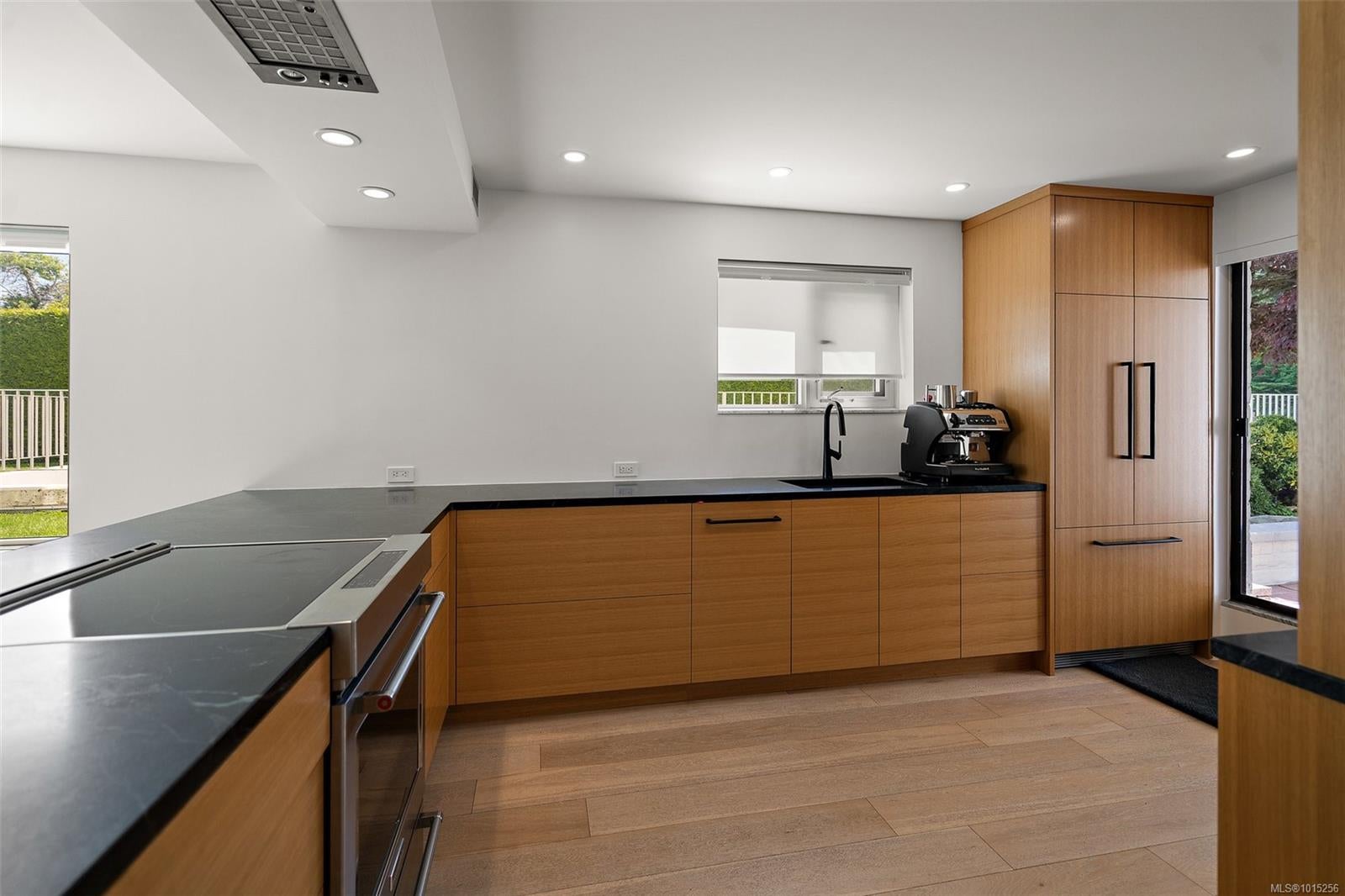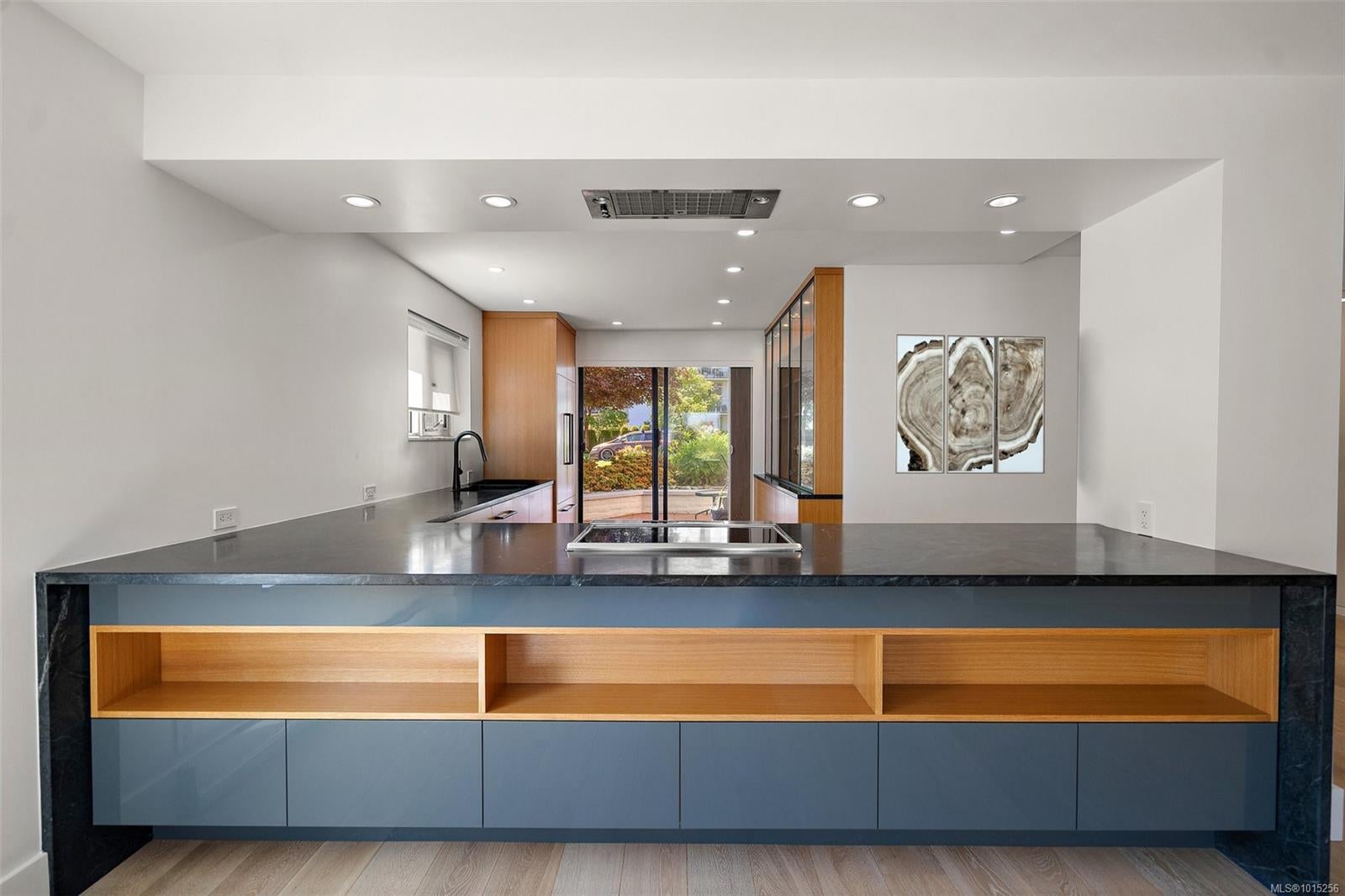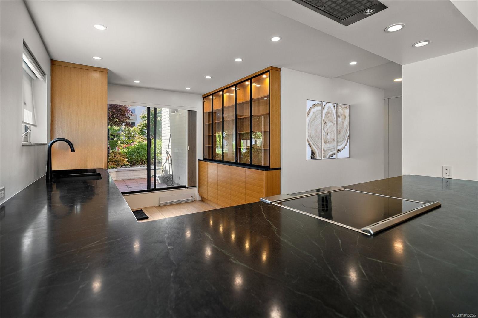 OPEN HOUSE CANCELLED. A rare offering in South Oak Bay. This beautifully updated 2 bedroom, 2 bathroom ground-floor corner suite combines refined design with unbeatable location. Featuring over 1,460 sqft of elegant living space, the home offers custom cabinetry, stone countertops, wood floors and a flowing open layout. The kitchen is both stylish and functional, opening onto a bright living area and two private patios. The spacious primary suite includes a walk-in dressing area and spa-like ensuite with heated floors and a soaker tub. A second bedroom and full bathroom offer flexibility for guests or workspace. This home includes two secure underground parking stalls with EV charger, separate storage, and ground-level access in a well-maintained and exceptionally well managed concrete and steel building. Just steps to Oak Bay Village, the Marina, Victoria Golf Club, and scenic beaches—this is a chance to enjoy the best of coastal living in one of Victoria’s most desirable communities.