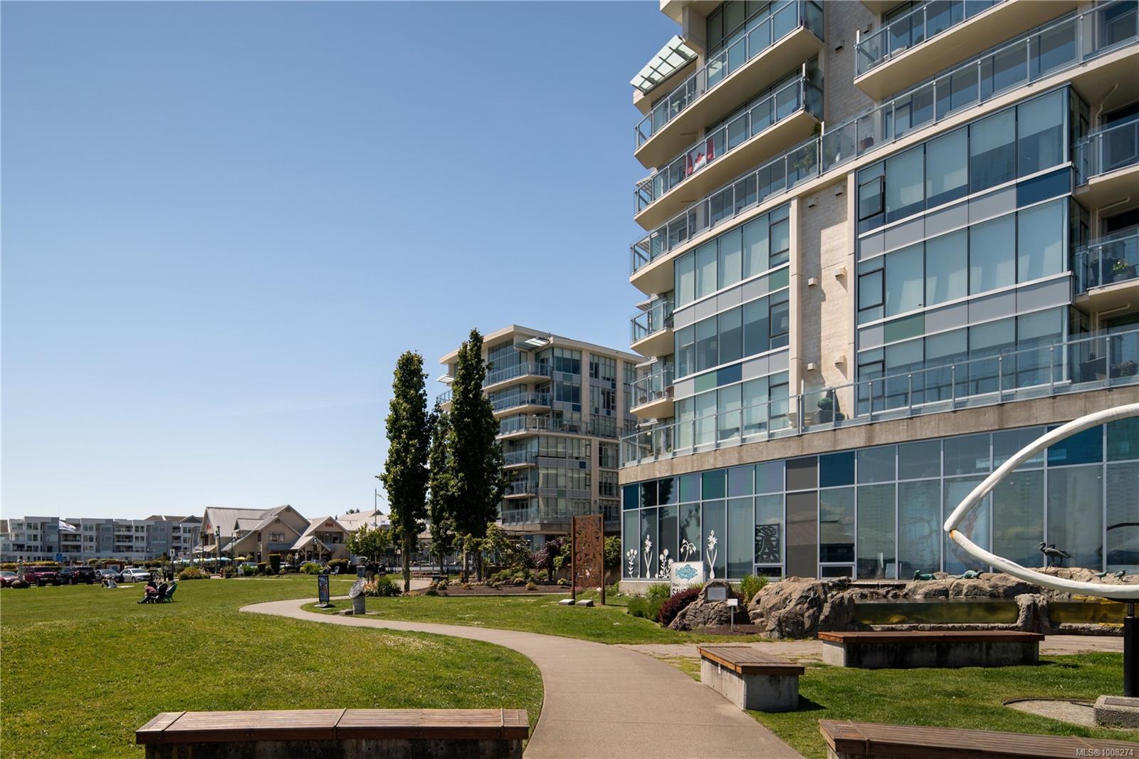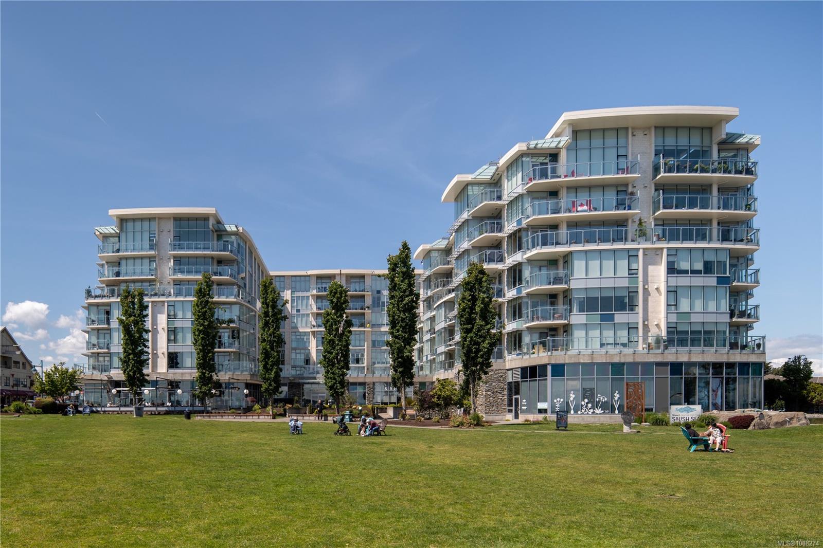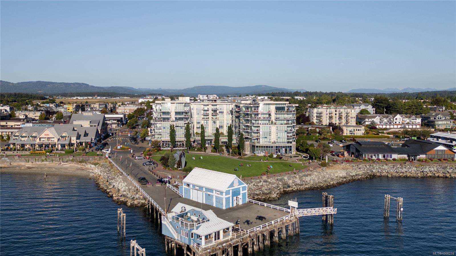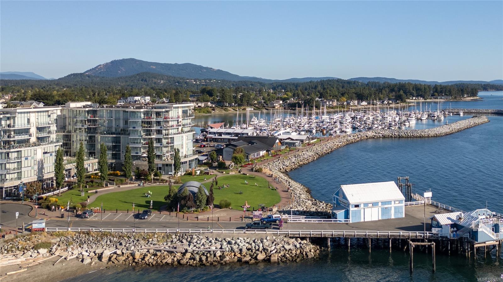 Seaport: Enjoy ocean views & marine activity from morning to night in this bright, exceptional corner condo in a distinctive steel & concrete building connected to the Sidney Pier Hotel. Just steps from the scenic waterfront walkway & Sidney marina it represents a sophisticated lifestyle with local markets, shops & cafes all within a block. Inside, the open-concept layout with huge windows offer plenty of natural light. Features include geothermal heating and cooling, hardwood floors, high ceilings, roller blinds, granite countertops & high-end appliances. The primary bedroom has a five-piece ensuite, and the second bedroom is beside a full bathroom. A separate den offers overflow guest accommodation or a functional workspace. At Seaport Place, you have a designated parking space (2 more available to purchase) & sep storage unit. All just minutes from Victoria International Airport & BC Ferries. An exceptional choice for those seeking comfort, convenience & location.