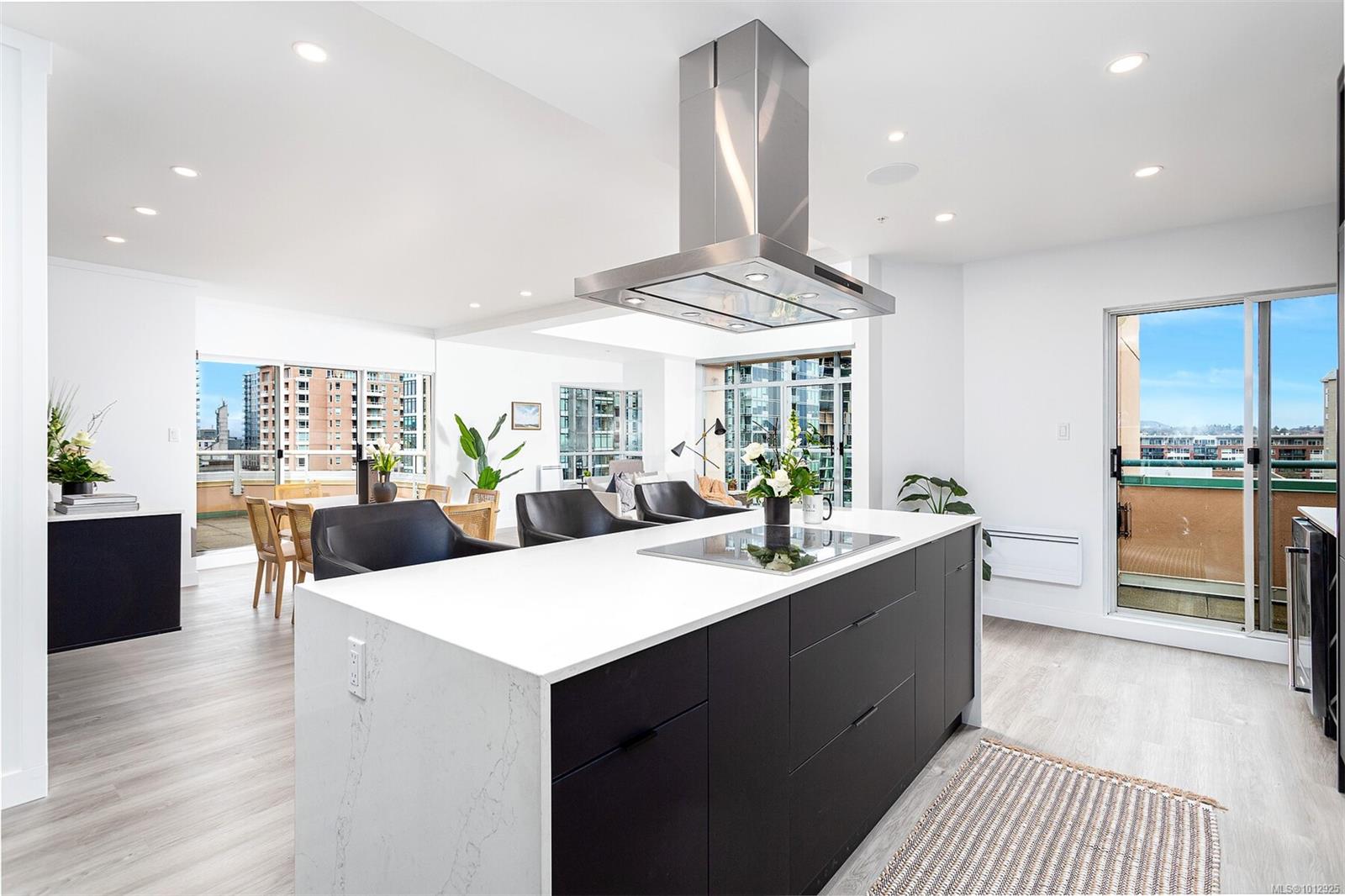A RARE OFFERING - TOP FLOOR 3 BEDROOM PENTHOUSE offering over 1,800 sf located in Regents Park. Come and discover this totally transformed luxury home with sweeping downtown, and city beyond views just steps to shopping, parks, and restaurants. You will love the open design featuring new chef style kitchen including quartz counters, induction cooktop, wine fridge, quality Stainless steel appliances, and waterfall island. You can entertain in a huge formal living/dining room with a cathedral skylight, impressive engineering flooring, gas fireplace all with stunning views. The bedroom and bathroom wing is very private and you will love the Primary bedroom including a full walk-in closet, and a WOW ensuite bath with heated Italian tile floors, soaker tub, over-sized shower, double vanity with anti-fog mirrors. This fine strata offers secure underground parking, on-site caretaker, exercise room, whirlpool and sauna. There is a total of 6 decks to take advantage of all the fabulous views.