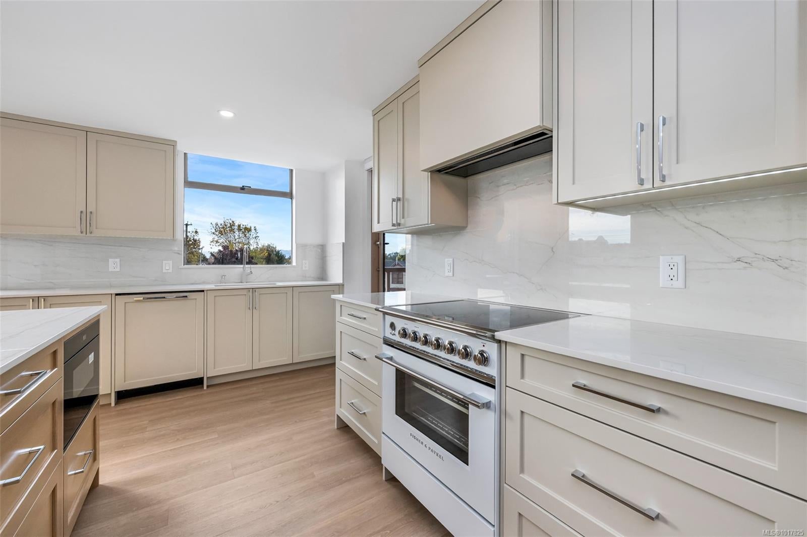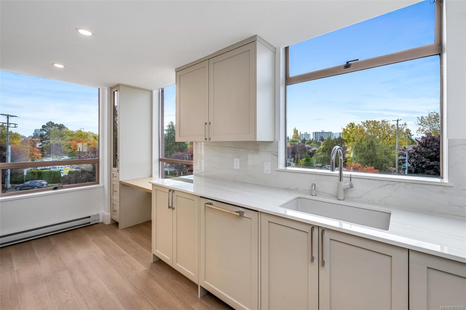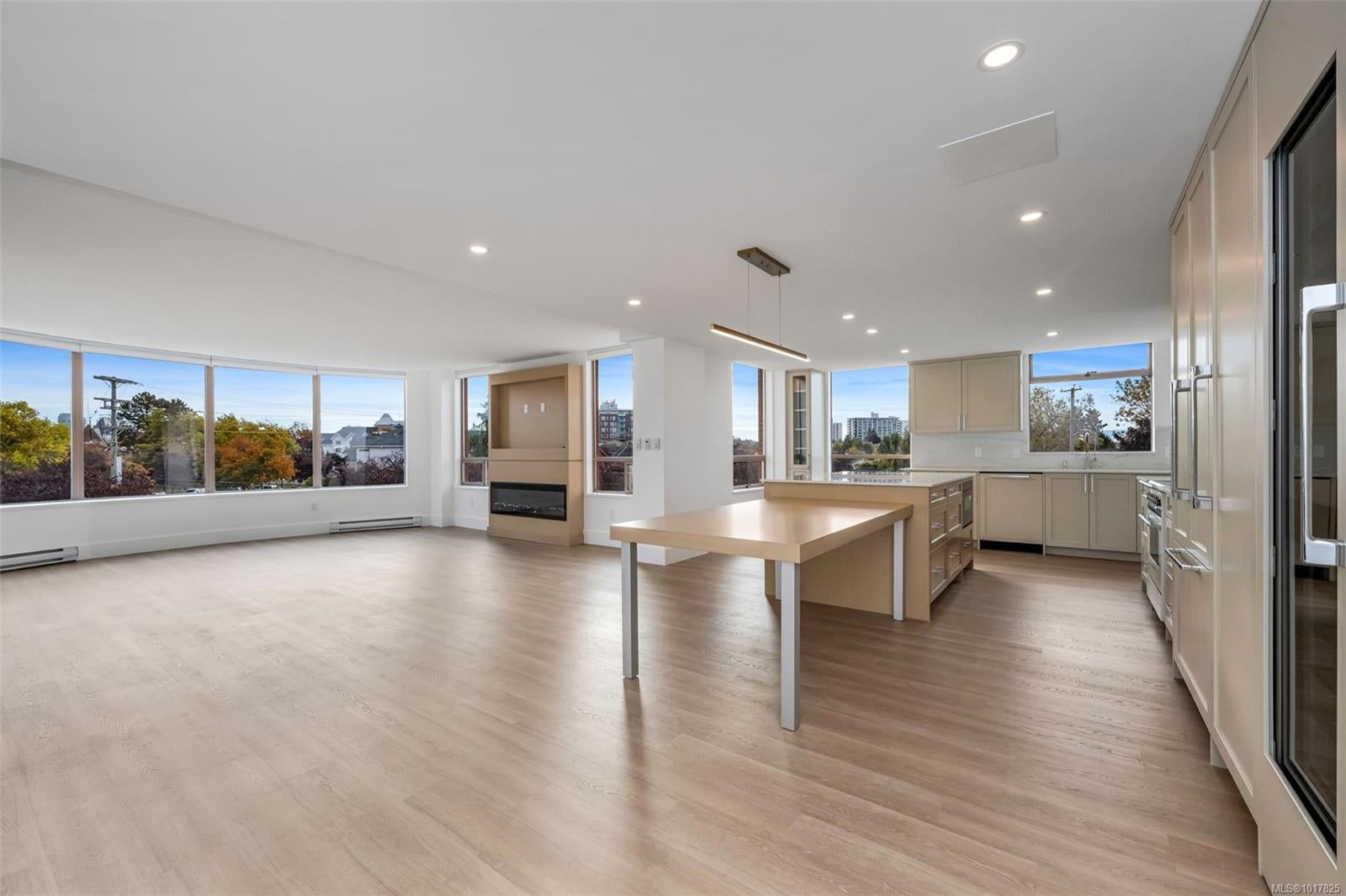 Welcome to this meticulously renovated James Bay home, blending luxury, functionality, and an unbeatable location. The bright, airy open-concept layout is ideal for entertaining and everyday living. The chef’s kitchen features high-end Fisher & Paykel appliances, a built-in wine fridge, and sleek Dekton countertops. Custom built-in cabinetry extends throughout, maximizing storage with a clean, modern aesthetic. Enjoy remote-controlled blinds, luxury vinyl plank flooring, and plush new carpeting with 8 lb underlay. Expansive windows showcase beautiful views filling the home with natural light. Steps to Fisherman’s Wharf, the scenic Dallas Road waterfront, and minutes from the vibrant downtown core, this exceptional home is move-in ready for those seeking refined design and a prime James Bay lifestyle.