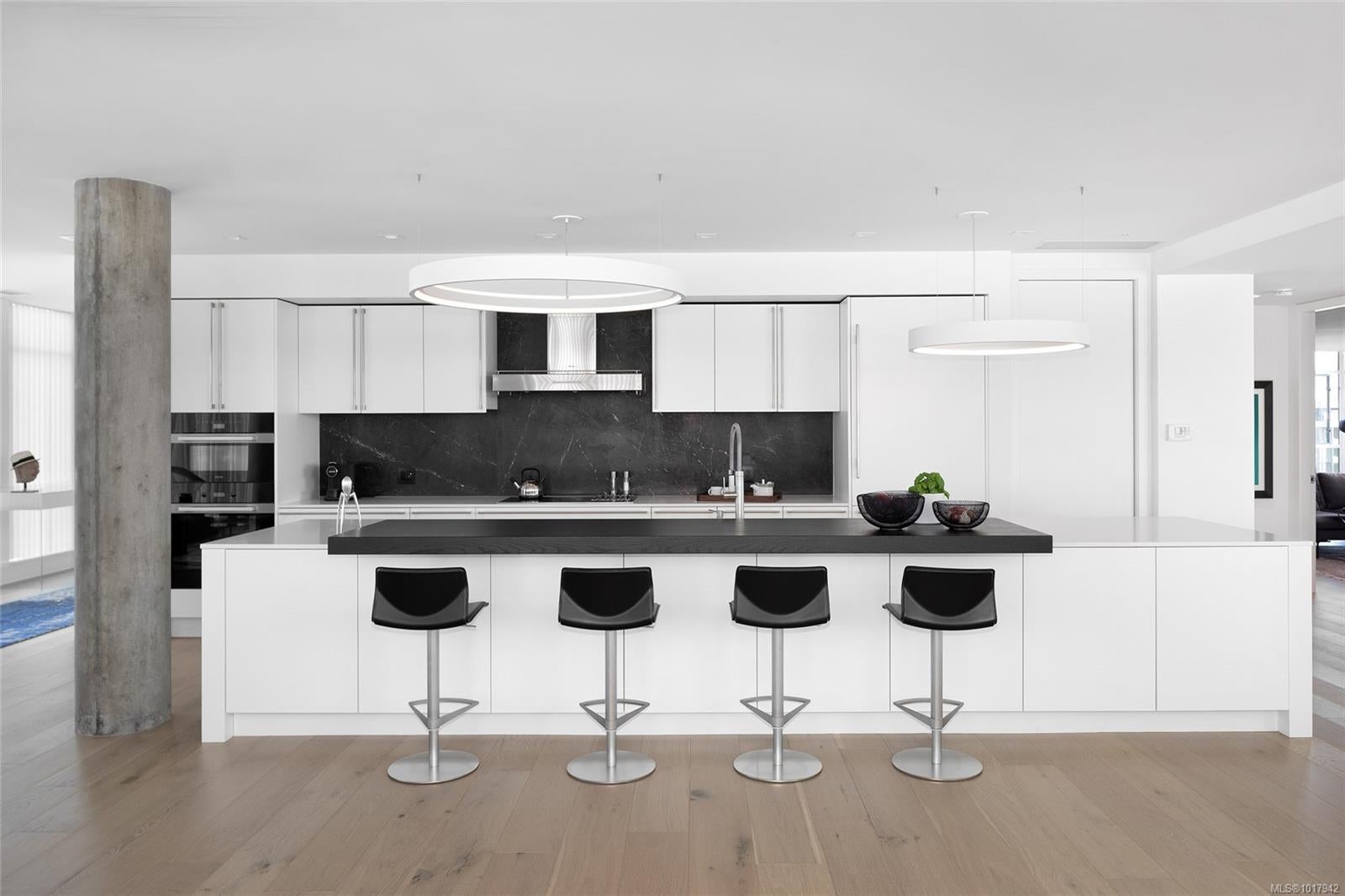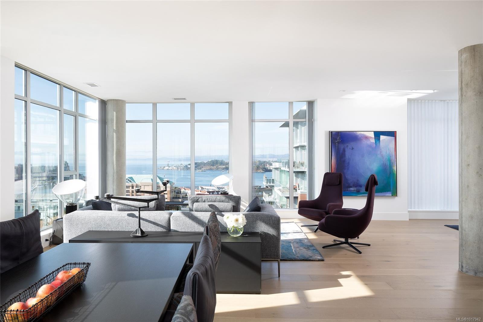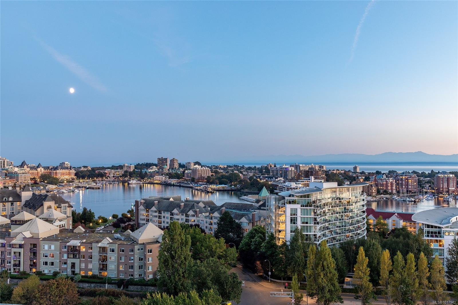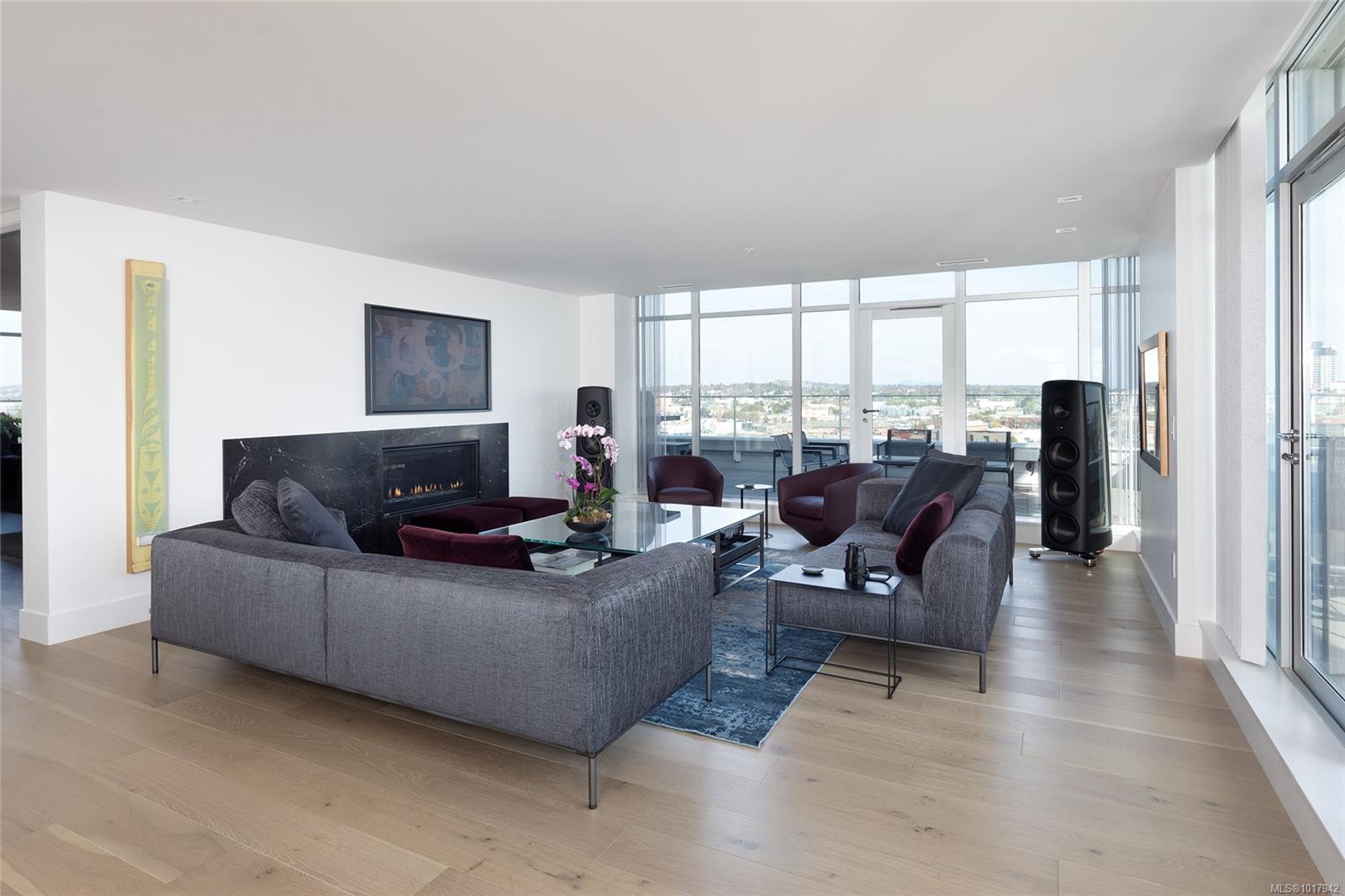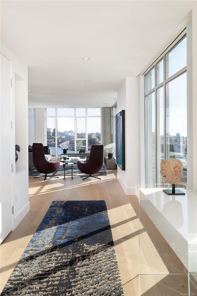 Perched high on one of Victoria's most prestigious buildings, this one-of-a-kind, 4234 sq ft penthouse offers unparalleled luxury and breathtaking panoramic views. With a rare position that overlooks the dynamic activity of the Inner Harbour, the tranquil waters, and majestic mountain vistas, this home spans East, South, and West, providing views of the Olympic Mountains, Port Angeles, and the iconic Mt. Baker. The open-concept design is flooded with natural light, thanks to expansive windows that frame the ever-changing scenery. Every inch of this residence has been meticulously curated and extensively renovated in 2022, blending sophisticated elegance with modern functionality. The home boasts three luxurious bedrooms, each with its own ensuite bathroom, a stunning media room, and a spacious butler’s pantry off the chef-inspired kitchen. Crafted with the finest materials, the property features engineered flooring with a ¾” plywood base for exceptional stability, locally sourced marble, and high-end appliances. High-tech elements such as an integrated Whole House electrical system, electric window blinds, and heat pumps ensure both convenience and comfort. The building itself is regarded as one of the best in Victoria, offering exclusive amenities such as a concierge, a common entertainment room with a pool table, outdoor BBQ area, gym, hot tub, sauna, and even a dog-washing facility. Additional luxuries include four parking stalls in a secure, heated underground garage and two oversized storage lockers. This penthouse epitomizes the pinnacle of refined living in Victoria, combining space, style, and spectacular surroundings.