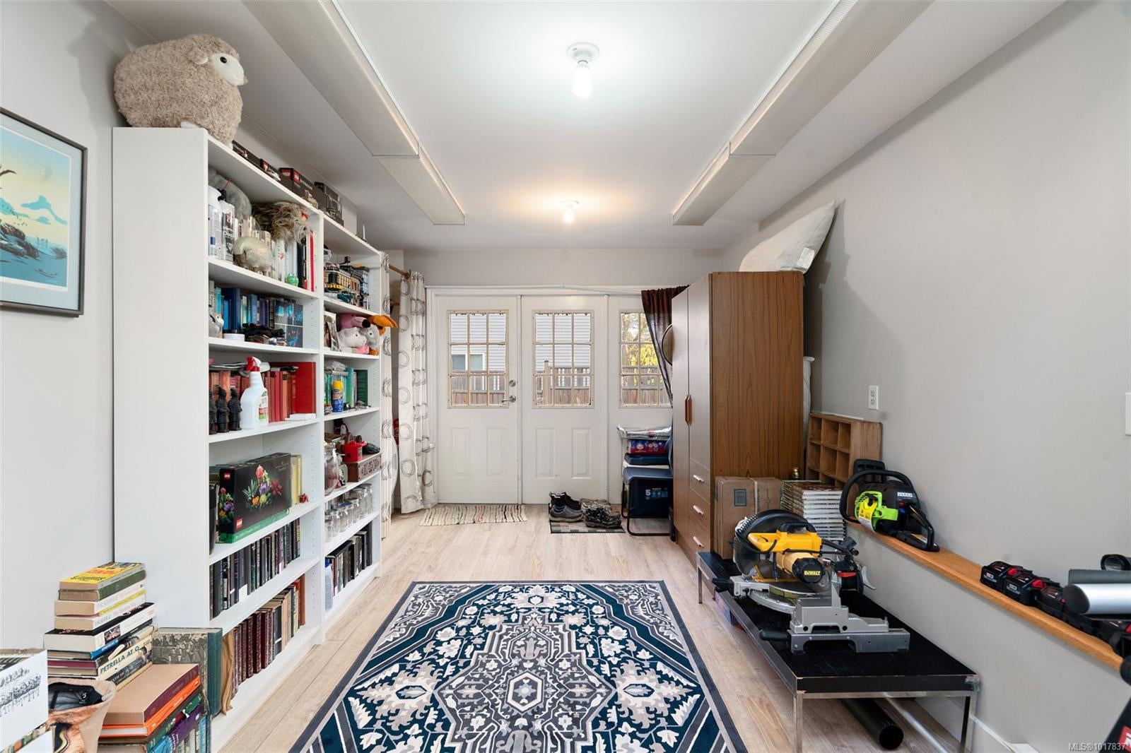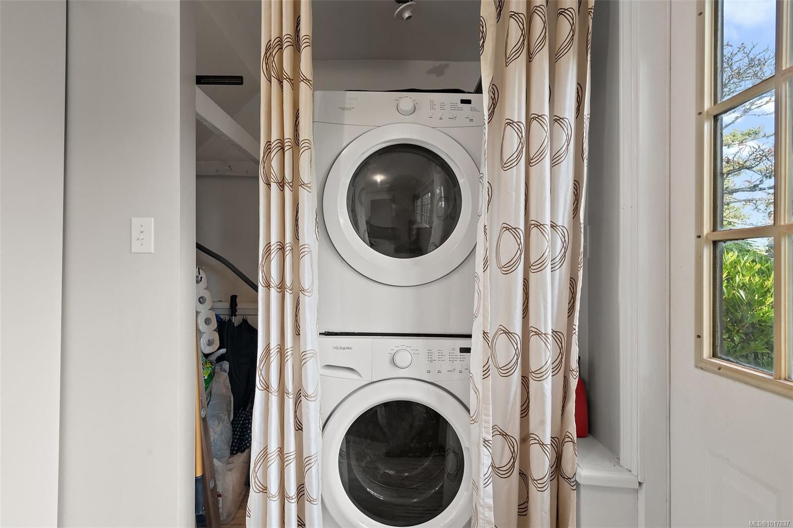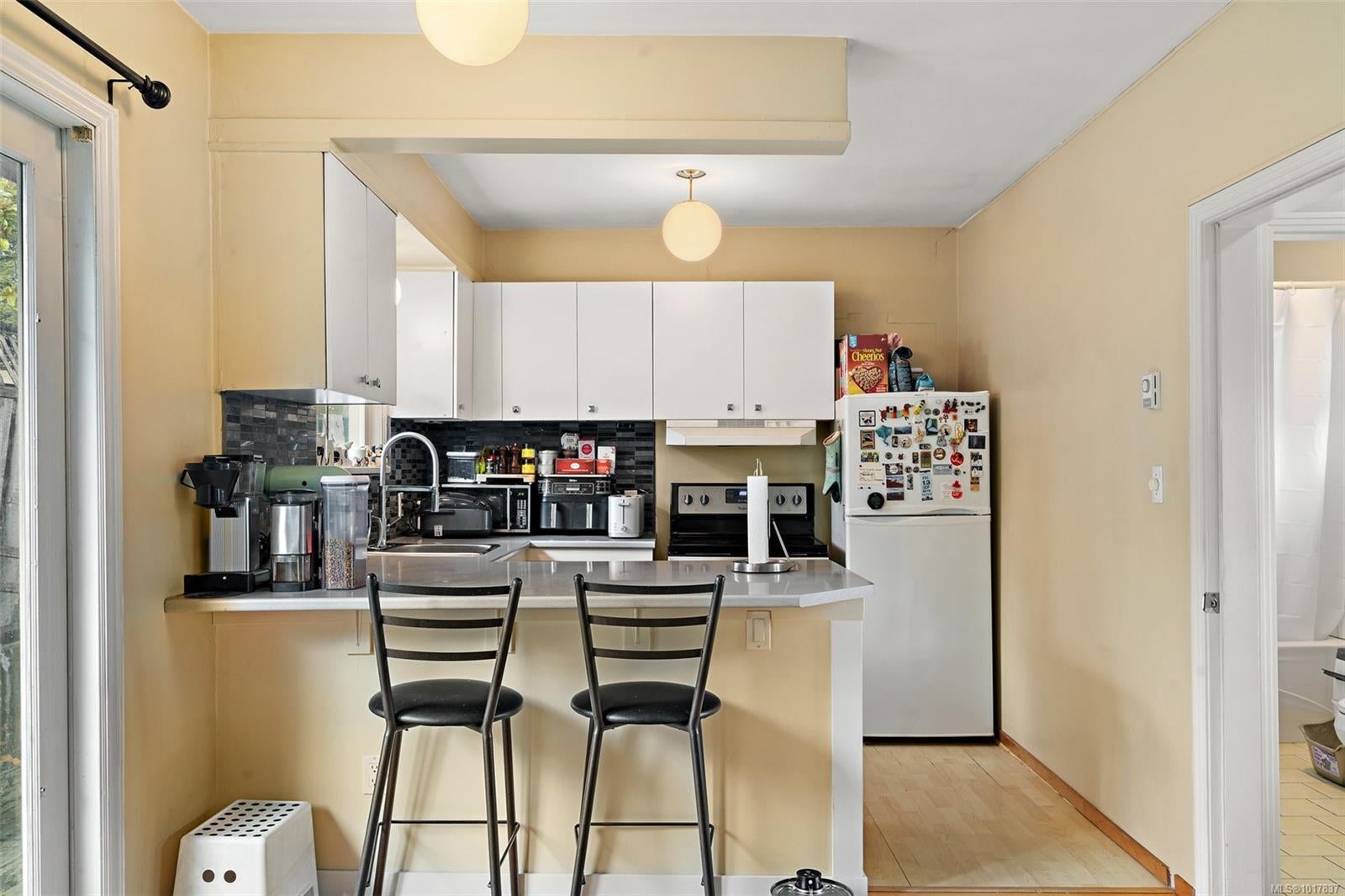 Step into this charming 1948 character home, where timeless style meets modern versatility. Warm wood floors, elegant coved ceilings, and a cozy wood-burning fireplace create a sense of comfort and nostalgia, while abundant natural light fills every corner. The main home features three spacious bedrooms, including a sun-drenched primary suite with a skylight and private 2-piece ensuite. From the kitchen, watch the morning sun rise over a peaceful landscape, or relax on the large, private patio surrounded by lush greenery with water views. Thoughtfully designed in a front-and-back duplex style, this property is perfect for multi-generational living or added privacy. The suite offers a bright, inviting space with 1 bedroom plus a den (or 2nd bedroom), a cozy fireplace, and a private deck. Nestled in a quiet, friendly neighborhood close to parks, schools, and every convenience, this home offers the perfect balance of character, flexibility, and comfort — a truly special place to call home.