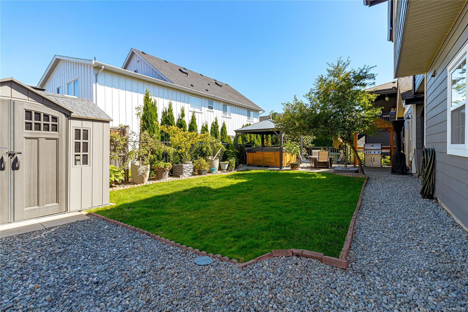 Welcome to this amazing Eagle Ridge 2-level 5 bd/4 bth family home, including legal 1-bd suite, totally sep!If you're seeking space, this is it!The f/room sits at the front of home & opens into huge liv/din area with large, newer kitchen featuring gourmet Thomasville cabinets to ceiling, silestone counters, soft-close cabinetry, heavy butcher block & natural gas stove-perfect for culinary enthusiasts!Down the hall is laundry/2-pce bth & washing/doggy room!L/room offers cozy gas F/P, French doors to great patio with hot tub/gazebo, natural gas BBQ area/gazebo & room for everyone in the neat b/yard.Upper level boasts primary suite with hefty walk-in closet & splendid 5-pce with soaker tub.There are 3 more good-sized bds up & 4-pce bth.Tucked discreetly away is private, self-contained suite-ideal for family/mortgage helper.Additional features include updated flooring, interior/exterior paint, d/garage, landscaped yard, greenhouse, sheds & close to Westshore amenities, bus routes & schools