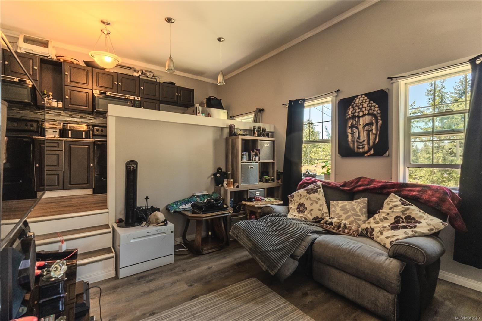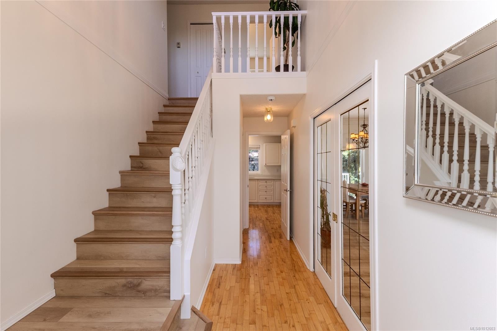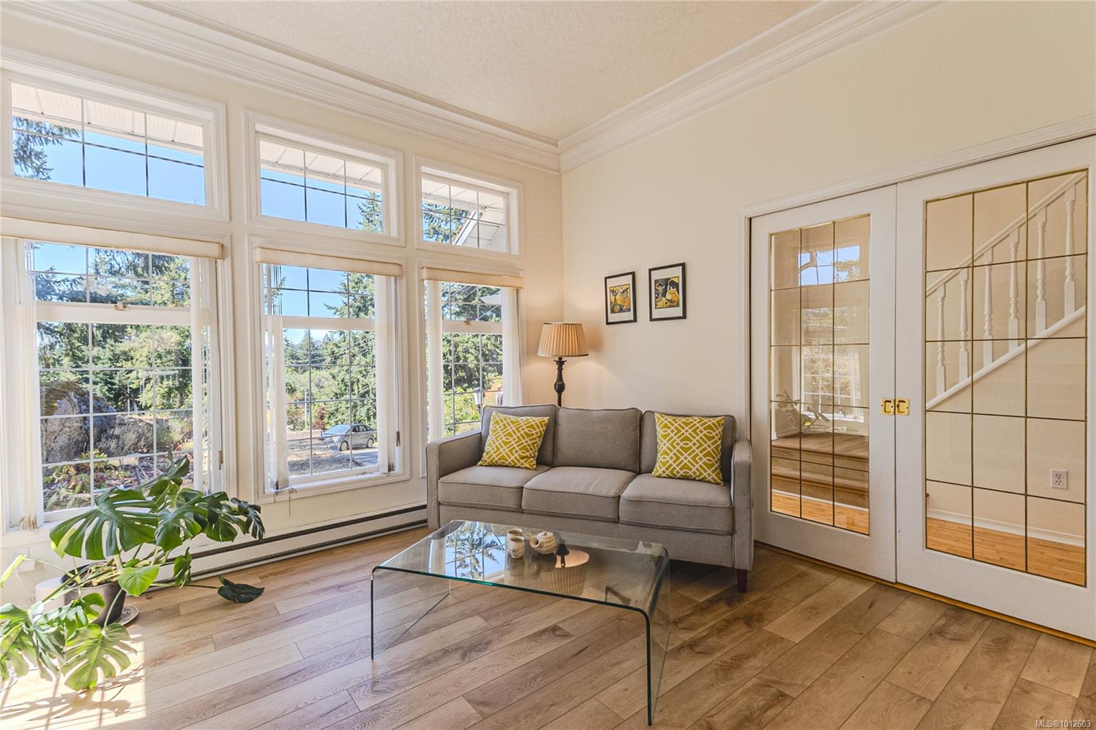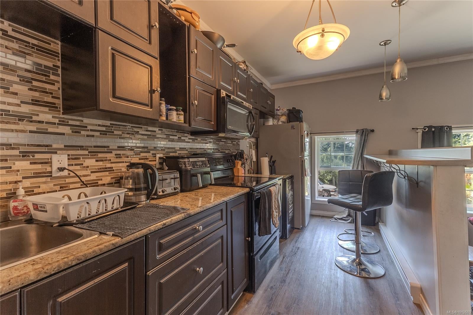 Solid family home Sitting high on a sunny lot in wooded Thetis Heights. A 0.47 acre lot featuring lots of stonework, privacy and views. A custom-built home with top end features, from a beautiful staircase in the grand entrance to the luxury living room with tall windows topped with transom windows that flood the house with light, to the millwork mantel over gas FP & handsome crown moulding on high ceilings which carry thru to the formal dining that opens to a big deck. The kitchen offers lots of cabinetry, bay window breakfast nook & open access to the large family room with brick woodburning FP & sliders to the other end of the deck. Up are 3 family bedrooms, master with large custom ensuite & walk in closet. Plus spacious main bath & a landing with tree top views. Hardwood and new vinyl flooring throughout. New Large deck for entertaining. Modern one bedroom suite has its own entrance and patio area. Quite & close to schools, shopping & fabulous hiking trails.
