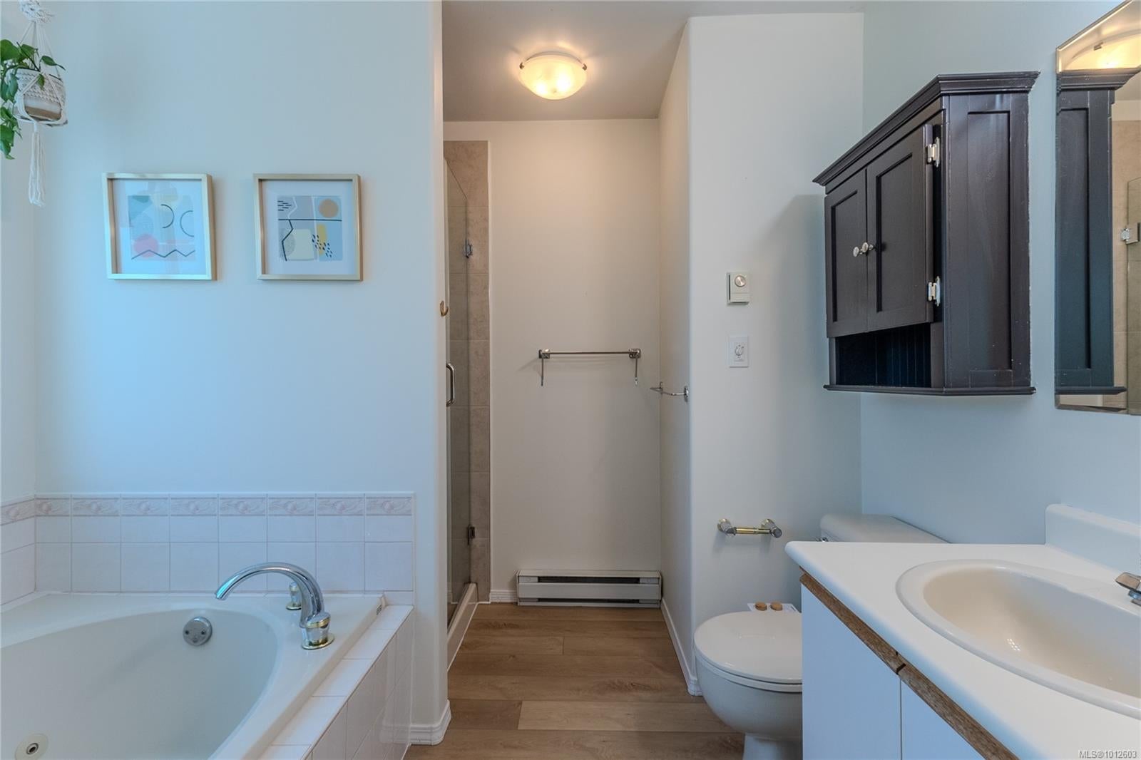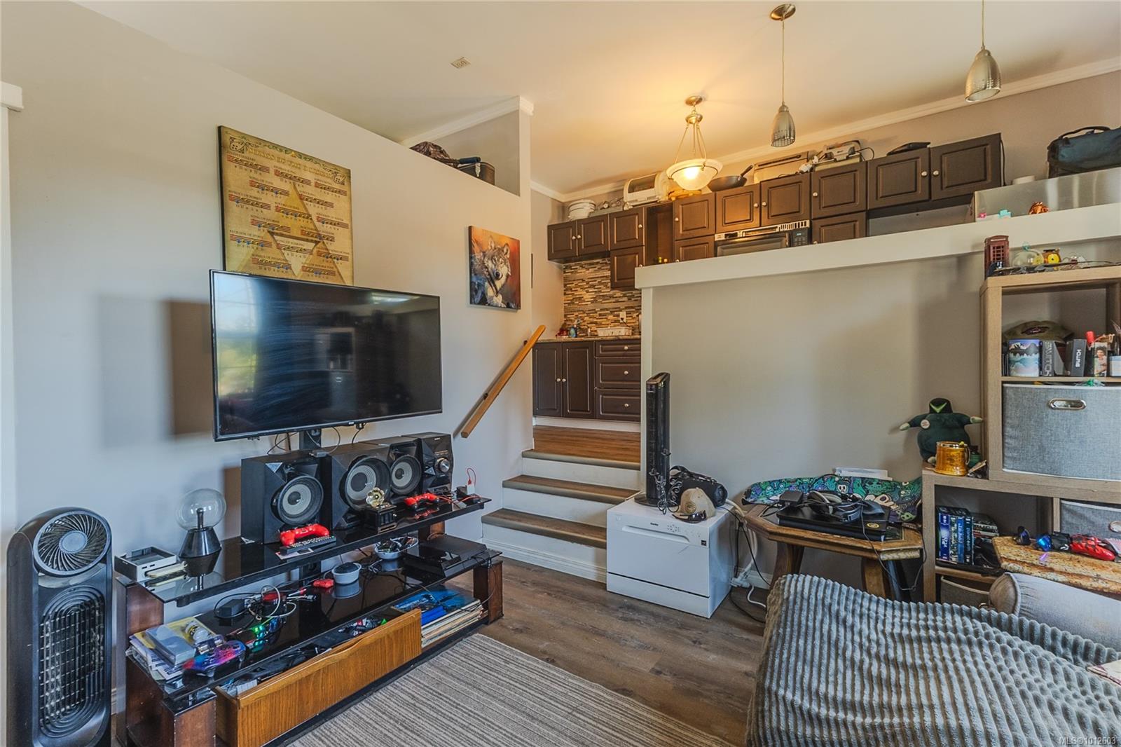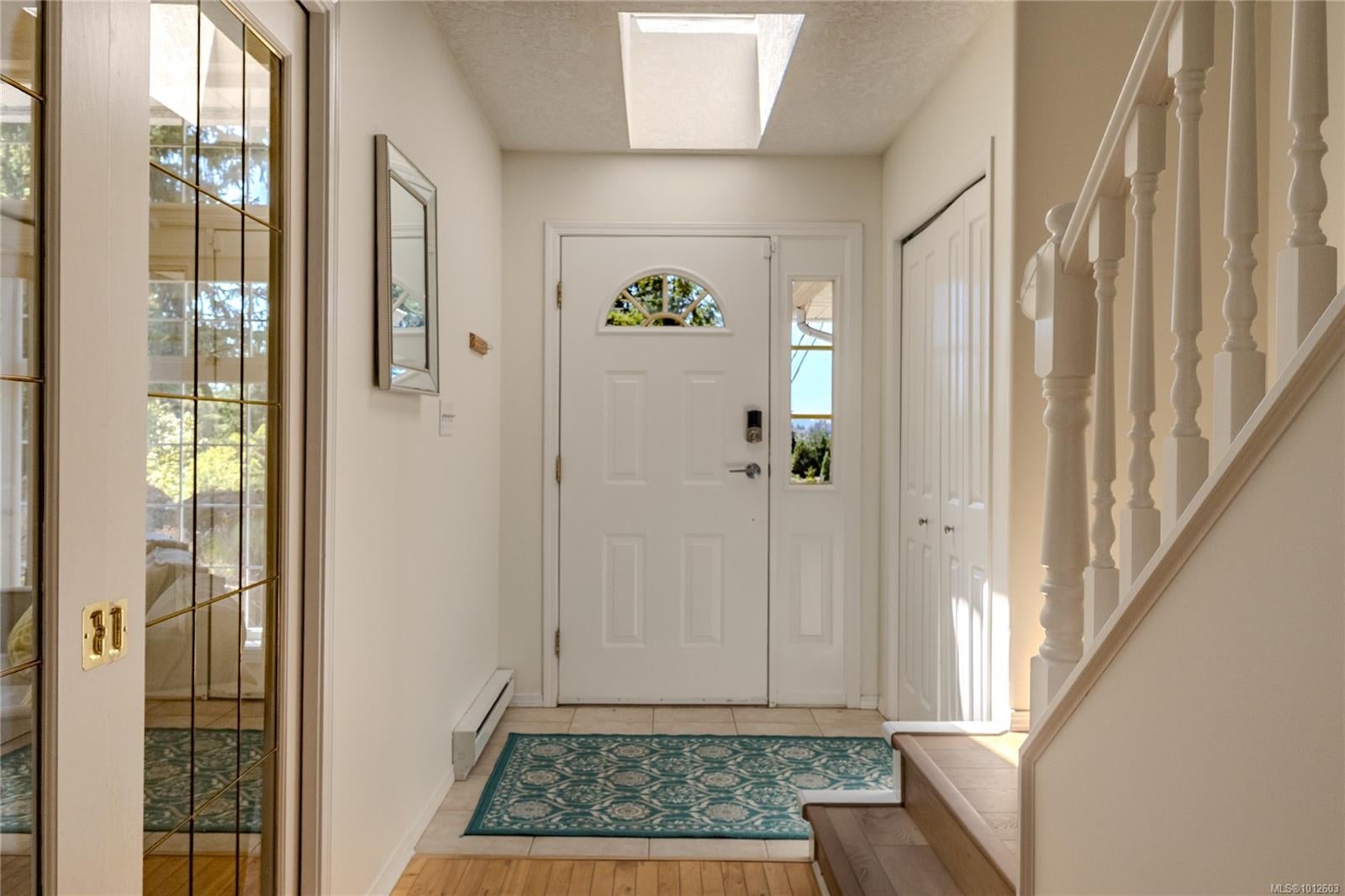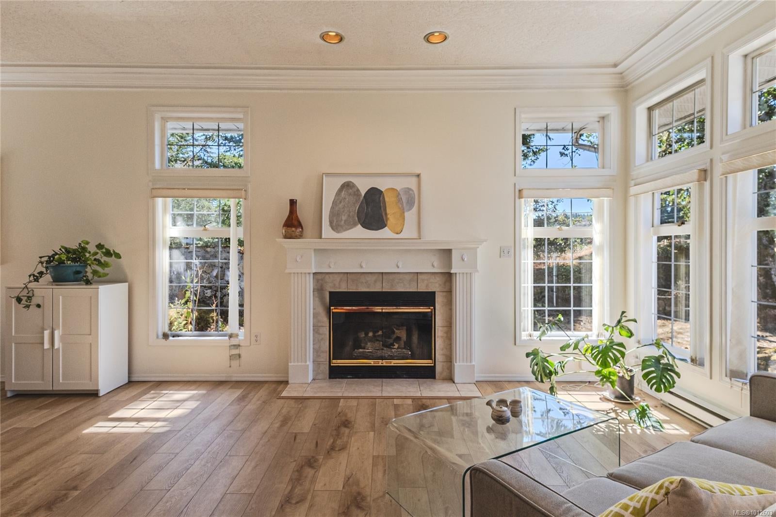 Solid family home Sitting high on a sunny lot in wooded Thetis Heights. A 0.47 acre lot featuring lots of stonework, privacy and views. A custom-built home with top end features, from a beautiful staircase in the grand entrance to the luxury living room with tall windows topped with transom windows that flood the house with light, to the millwork mantel over gas FP & handsome crown moulding on high ceilings which carry thru to the formal dining that opens to a big deck. The kitchen offers lots of cabinetry, bay window breakfast nook & open access to the large family room with brick woodburning FP & sliders to the other end of the deck. Up are 3 family bedrooms, master with large custom ensuite & walk in closet. Plus spacious main bath & a landing with tree top views. Hardwood and new vinyl flooring throughout. New Large deck for entertaining. Modern one bedroom suite has its own entrance and patio area. Quite & close to schools, shopping & fabulous hiking trails.