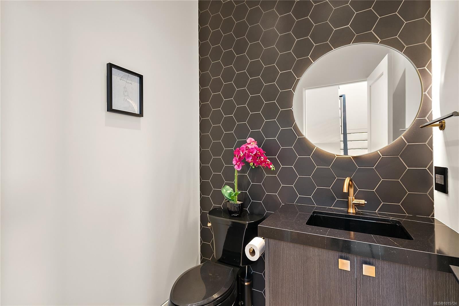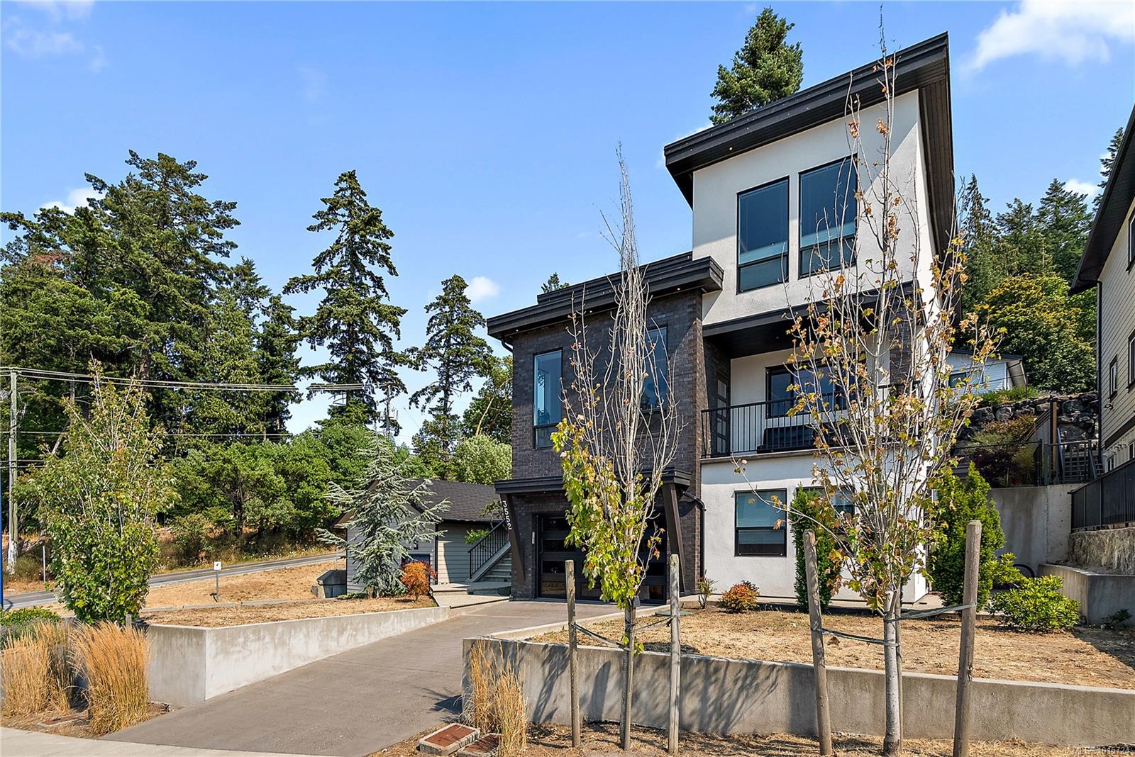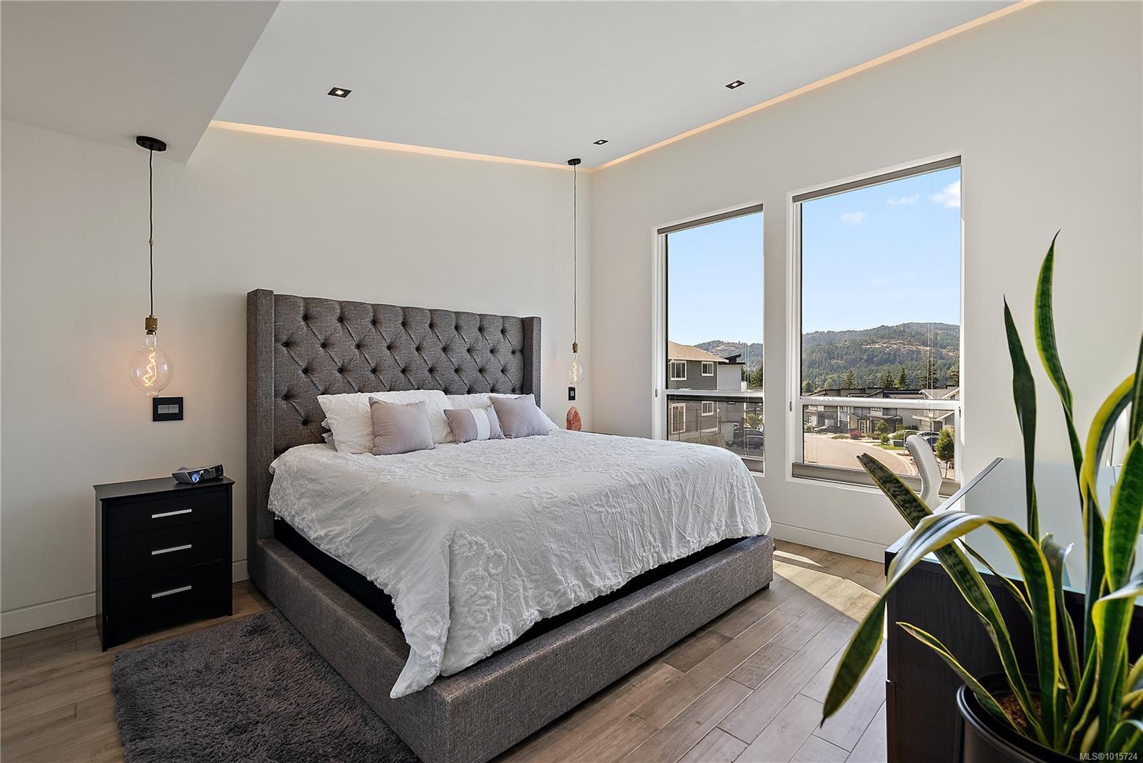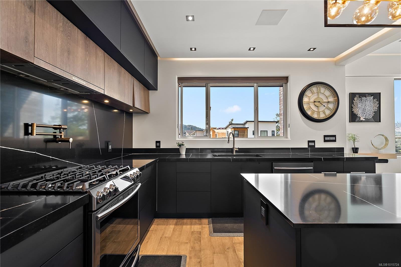 Modern, Contemporary & Bold, this 4 bed/4 bath home with legal suite in the heart of Langford is thoughtfully designed and an entertainer's dream! Built in 2020, this 2,600+ sq ft stunner blends style, function & quality. Eye-catching exterior with stamped concrete, lit aggregate walkways, custom railings & a mix of brick, stucco & wood. You will love the open layout and high-end finishings with high ceilings, recessed lighting, a large media/entertainment room, spacious great room & a dream kitchen with gas range, oversized quartz island & dining area. Step out to a covered patio with gas fireplace & fenced yard—perfect for kids, pets & entertaining. Upstairs, retreat to the primary oasis with valley views, walk-in closet & spa-like ensuite, plus 2 more bedrooms, walk in laundry room & a 4-pc bath. Added perks: heat pump, on-demand HW, projector and surround sound, security system, EV charger, central vac & premium finishes throughout. A like-new executive home with income potential!