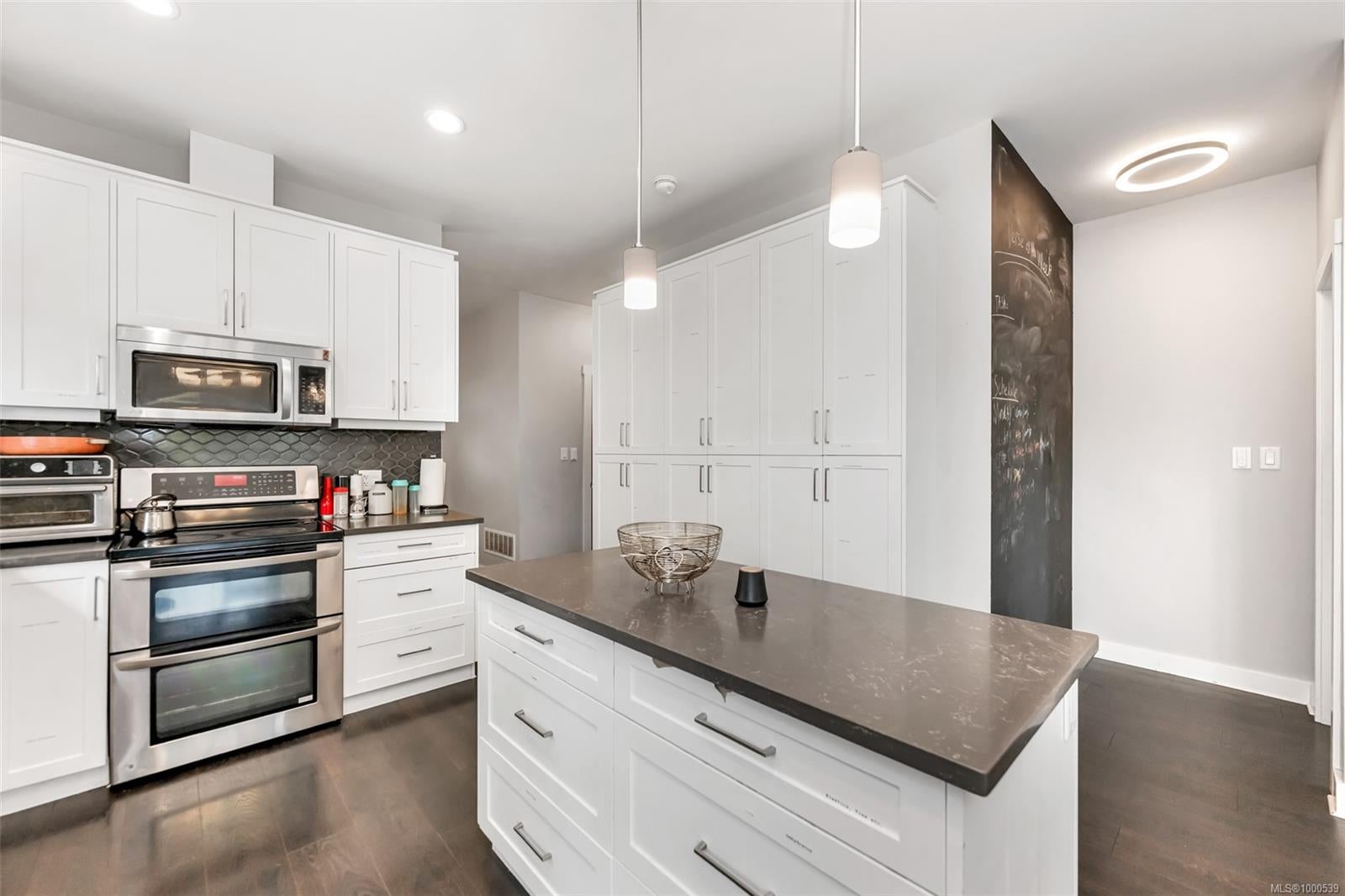 Welcome to this bright and beautiful 6 bedroom & 4 bathroom home in the sought-after Westhills. Ideally situated within walking distance of the YMCA, Library, Langford Lake, & various recreational spots. This main-level entry home boasts a full walk-out basement and includes a legal 2-bedroom suite. As a built green home, it benefits from an eco-friendly Geo-Exchange system providing economical heating and cooling. The home also features a solar system that ensures this home achieves a low carbon footprint. The open floor plan features a great room, seamlessly connecting living and dining areas to a custom kitchen with quartz countertops and stainless steel appliances. The main floor primary bedroom offers ample space, a full ensuite, a walk-in closet, and direct access to the rear deck. Upgrades include a built-in sound system and an EV charger. The lower level houses the 2-bedroom suite plus additional space for two guest bedrooms and a full bathroom for the main residence.