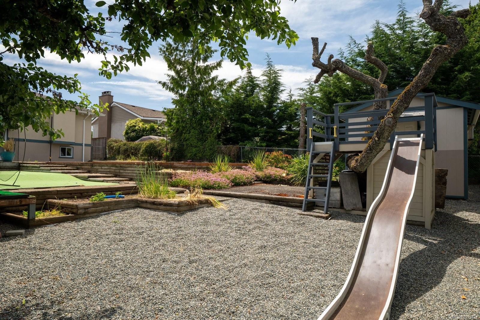 Discover an exceptional opportunity in the heart of Saanich West. This versatile home is tucked into a central, family-oriented neighbourhood with schools, parks, and shopping just minutes away. The main level offers a functional layout with three bedrooms, full bath, a bright kitchen, and easy access to a large deck with gas hookup—perfect for gatherings. The backyard is a true highlight, designed for fun and functionality with a tree fort, powered 10x16 shed, workshop/storage, putting green, and a hot tub–ready pad. The lower level features a spacious two-bedroom in-law suite, providing room for extended family or the option of a great mortgage helper. Blending lifestyle and practicality, this property is ideal for families seeking space, flexibility, and a convenient location.