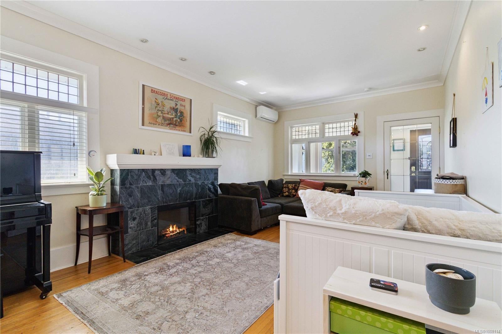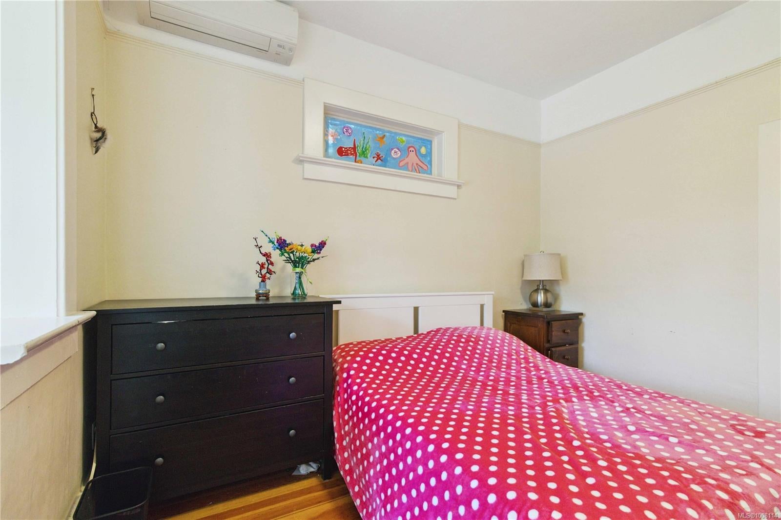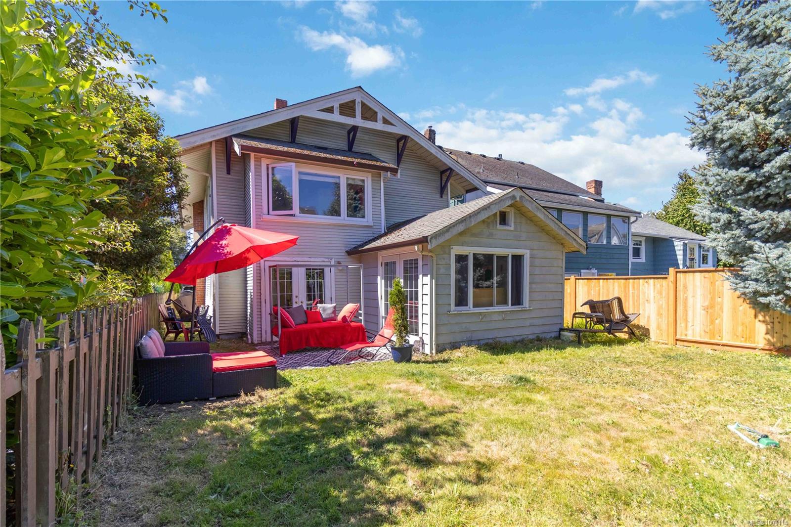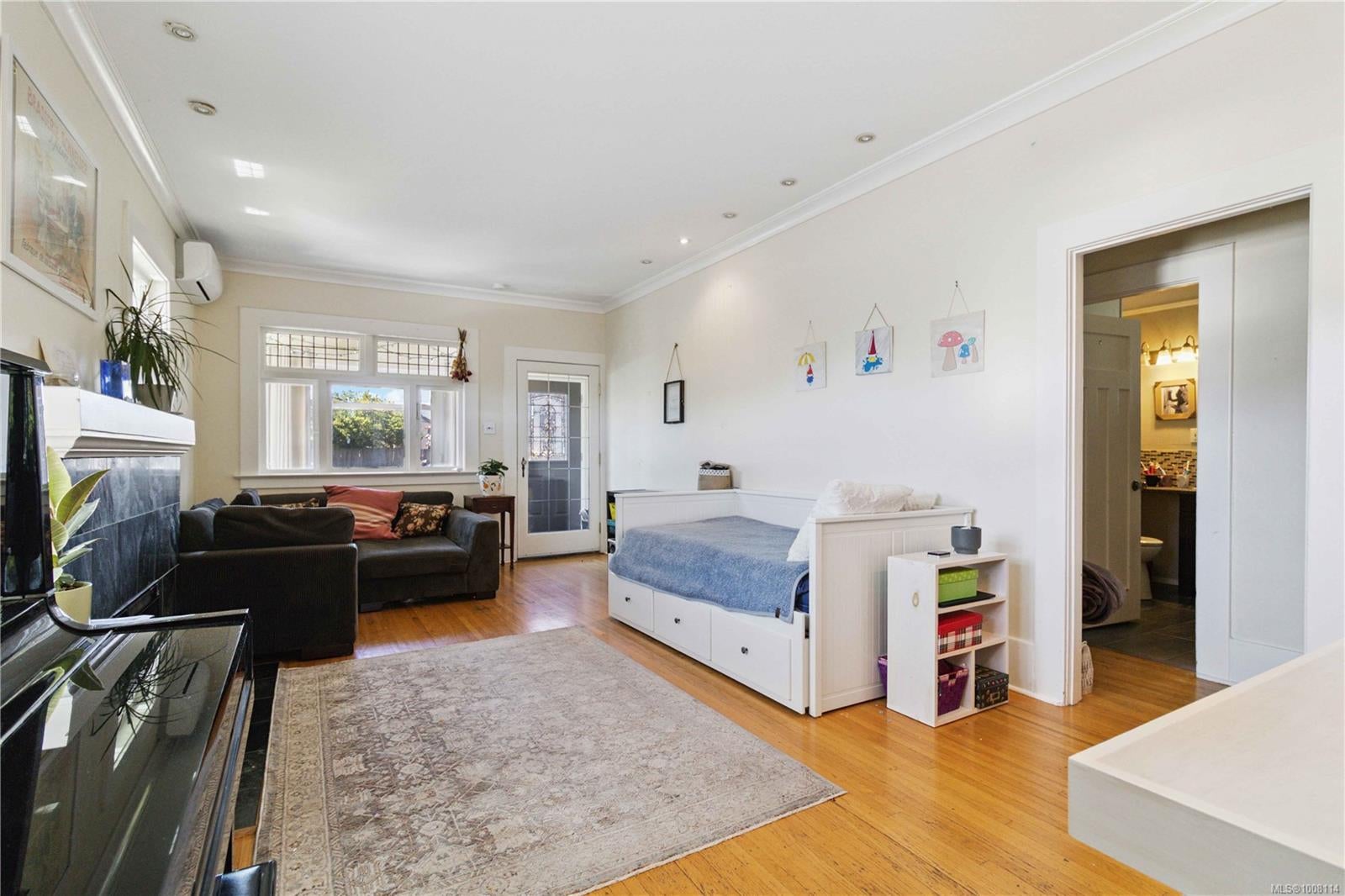 Set on a quiet no-through street in the heart of vibrant James Bay, this charming character home offers an unbeatable lifestyle just steps from beaches, the Breakwater, Dallas Road waterfront, Fisherman's Wharf & all the amenities of James Bay Village. Enjoy the best of walkable living in one of Victoria’s most sought-after neighbourhoods. The bright main level features original oak floors, ceilings w/crown molding & recessed lighting. Stay comfortable year-round w/a gas furnace & heat pump splits offering efficient heating & A/C. The layout includes a sunny eat-in kitchen, spacious living room w/electric fireplace, two generous bdrms, a 4-pc bath & a welcoming sunroom at the entry. Downstairs offers excellent flexibility w/a large bdrm w/French doors to the private backyard patio, a laundry area, flex space w/French doors,3 pc bath PLUS a self-contained 2-bdrm (or 1-bed + den) in-law suite w/ 4-pc bath perfect as a mortgage helper. A lovely home in a fantastic & scenic location.