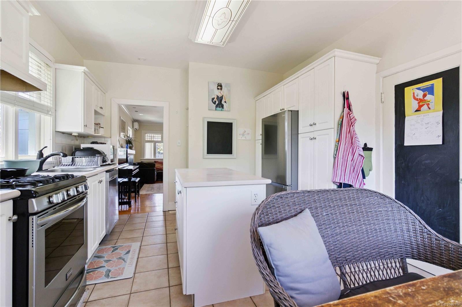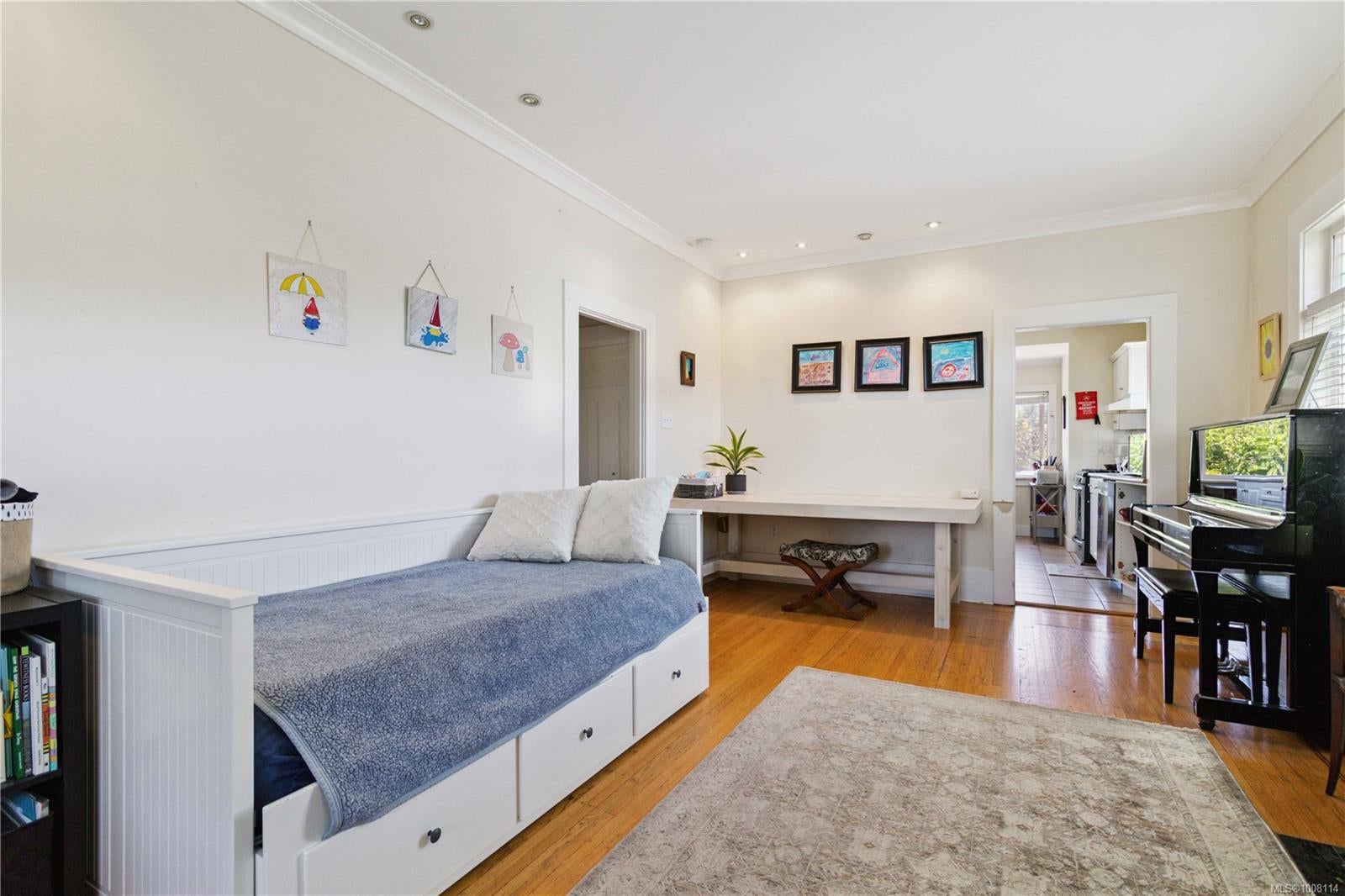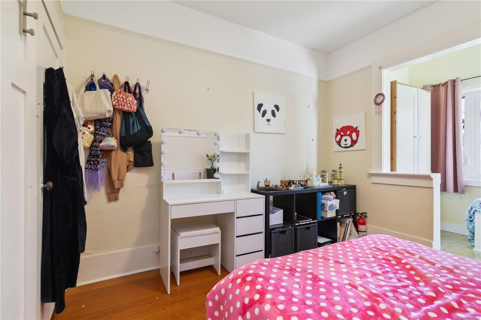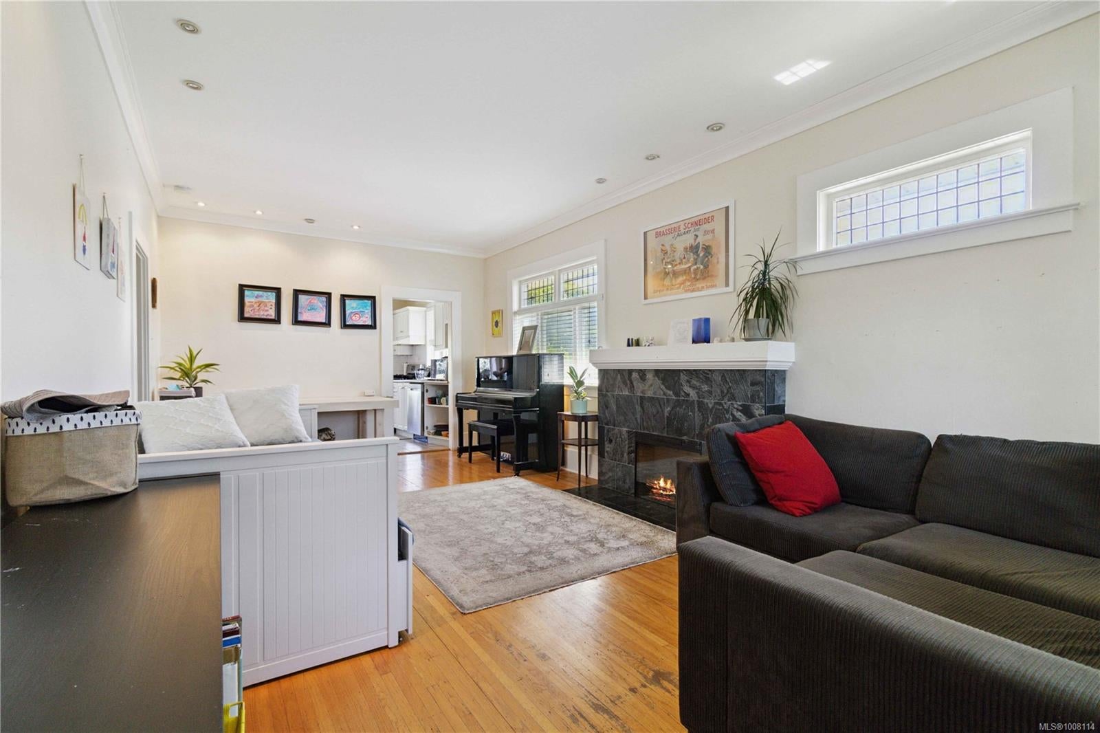 Set on a quiet no-through street in the heart of vibrant James Bay, this charming character home offers an unbeatable lifestyle just steps from beaches, the Breakwater, Dallas Road waterfront, Fisherman's Wharf & all the amenities of James Bay Village. Enjoy the best of walkable living in one of Victoria’s most sought-after neighbourhoods. The bright main level features original oak floors, ceilings w/crown molding & recessed lighting. Stay comfortable year-round w/a gas furnace & heat pump splits offering efficient heating & A/C. The layout includes a sunny eat-in kitchen, spacious living room w/electric fireplace, two generous bdrms, a 4-pc bath & a welcoming sunroom at the entry. Downstairs offers excellent flexibility w/a large bdrm w/French doors to the private backyard patio, a laundry area, flex space w/French doors,3 pc bath PLUS a self-contained 2-bdrm (or 1-bed + den) in-law suite w/ 4-pc bath perfect as a mortgage helper. A lovely home in a fantastic & scenic location.