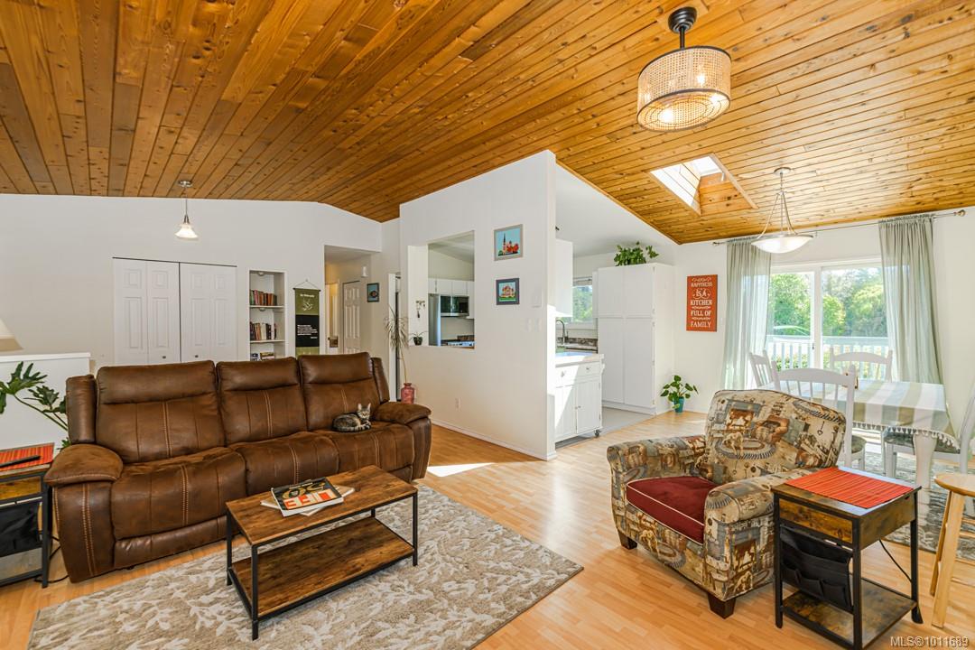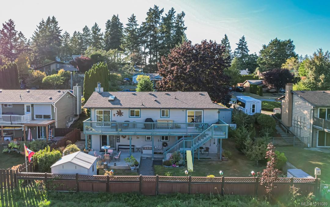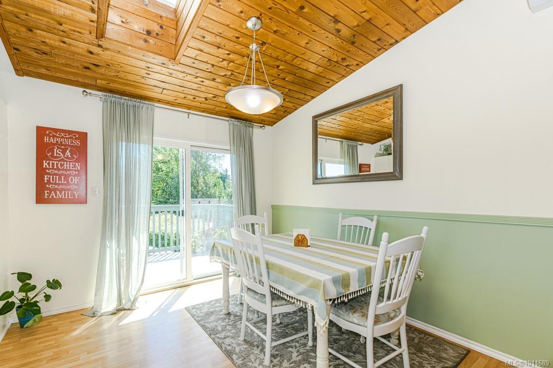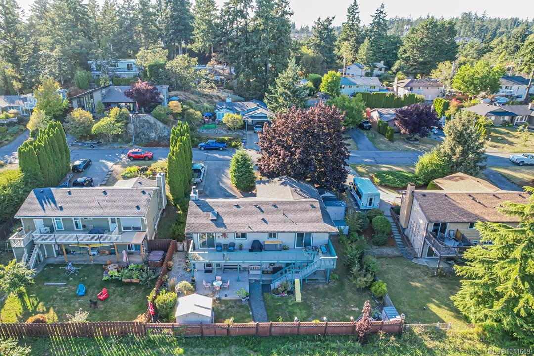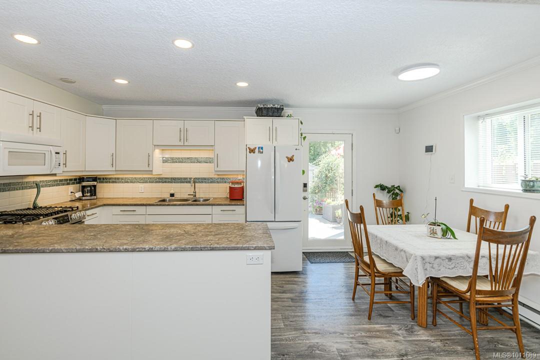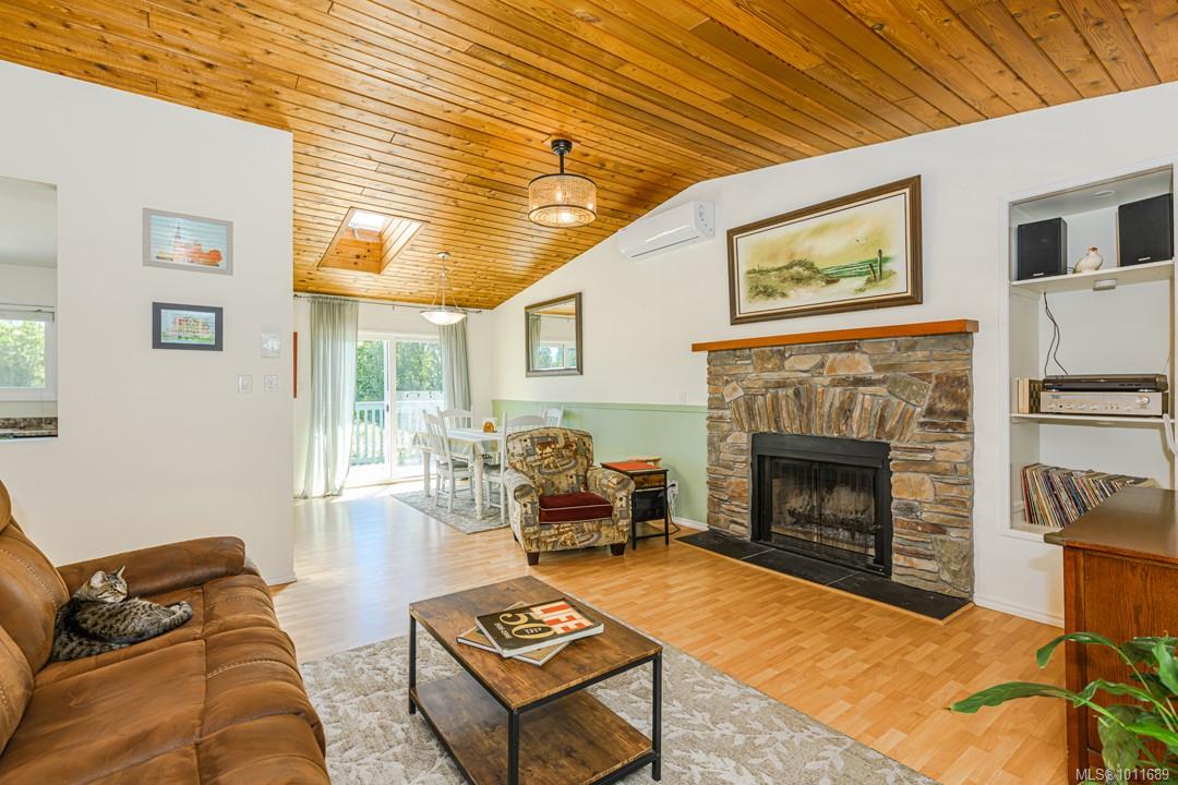 Home Business? Check out the flexible inlaw area w/kitchenette, 3pc bath & sep entrance, perfect for guests & extended family. Updated, multi-generational home on a no thru street, VR Park is an extension of the beautiful level backyard. Enjoy level entry living w/3 beds/2 baths up & income in legal 2 bed/1 bath suite. Open-concept layout shows off the vaulted wood ceilings & handsome rock fireplace, with spacious dining opening to new deck & fully fenced, landscaped yard. Skylights&lrg windows let the light flood in year round while the heat pump regulates for comfort. Other great updates include: 8yr roof, hot water on demand!, 2 laundries, & newer appliances. Yard offers fruit trees, gardens, generous storage, covered patio for the suite & locked gate to park for endless opportunities to bike, play, & off-leash walks. Ample parking for tenants or toys. Close to schools, E&N Trail, Eagle Creek shopping, Thetis Lake & local beaches, in a quiet, family-friendly neighbourhood!