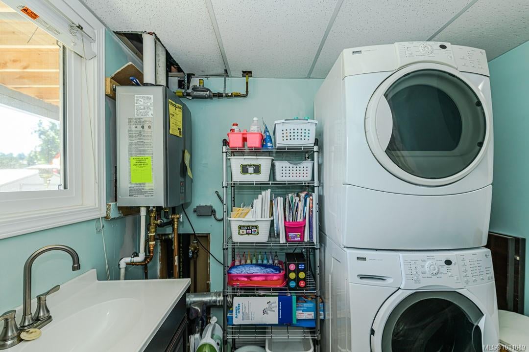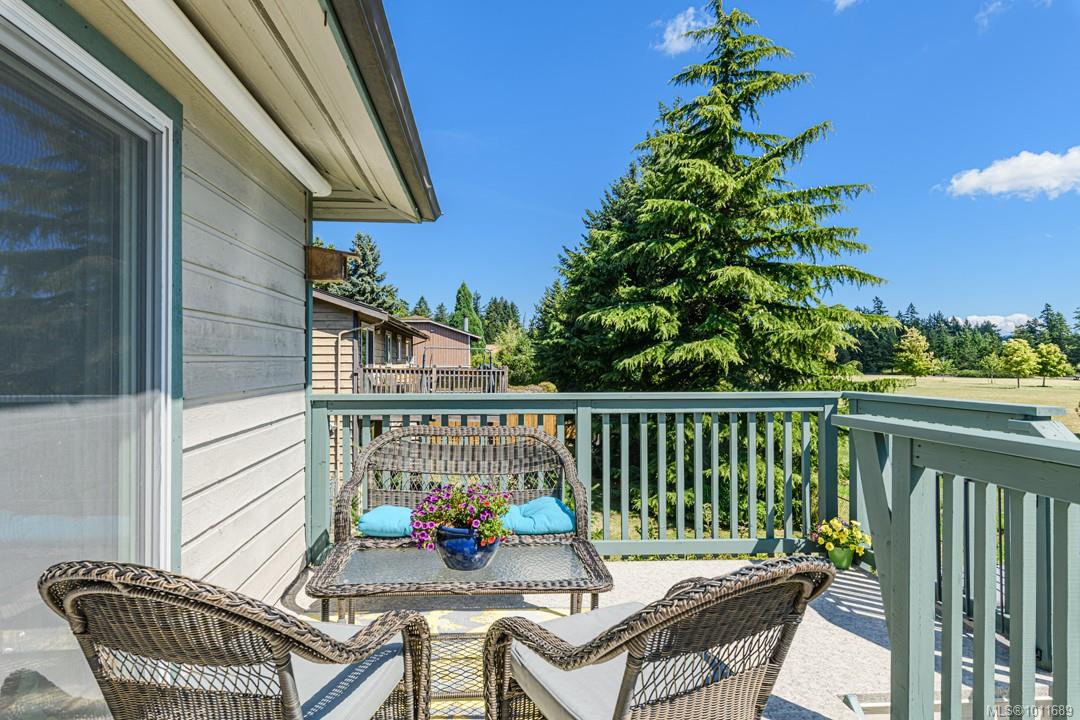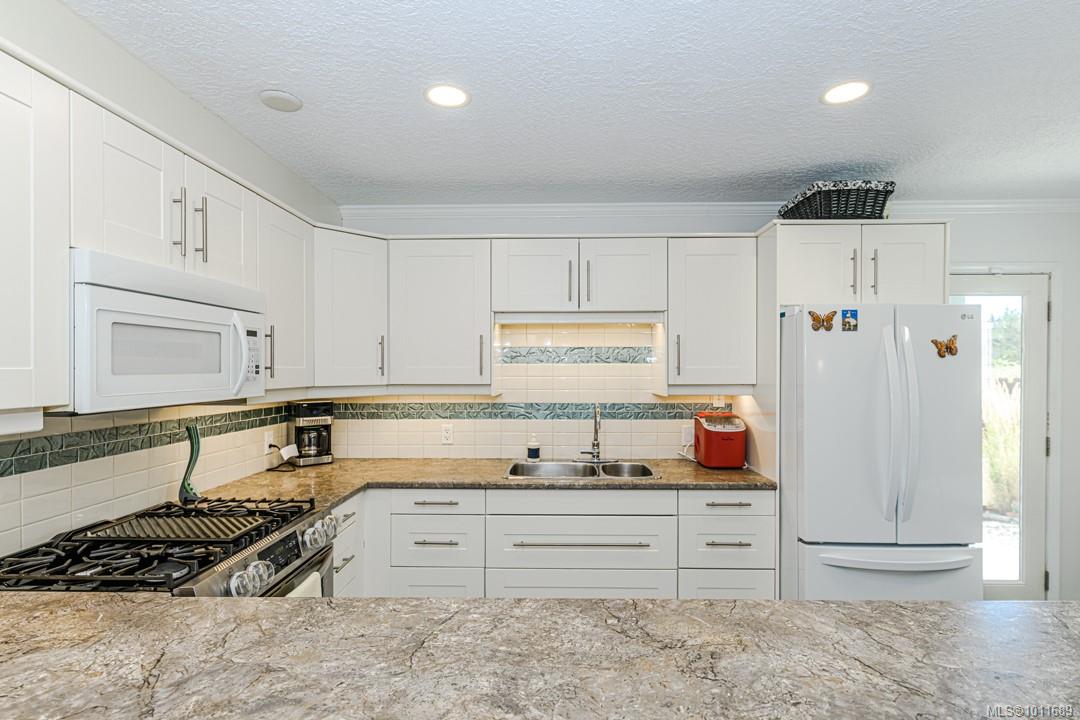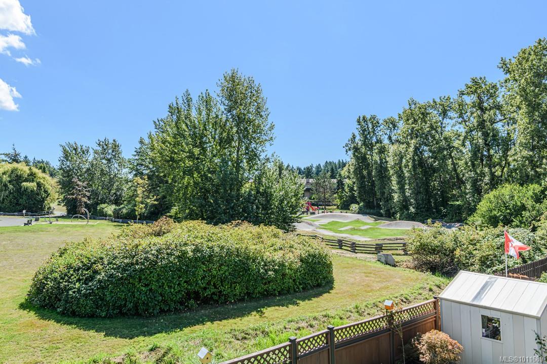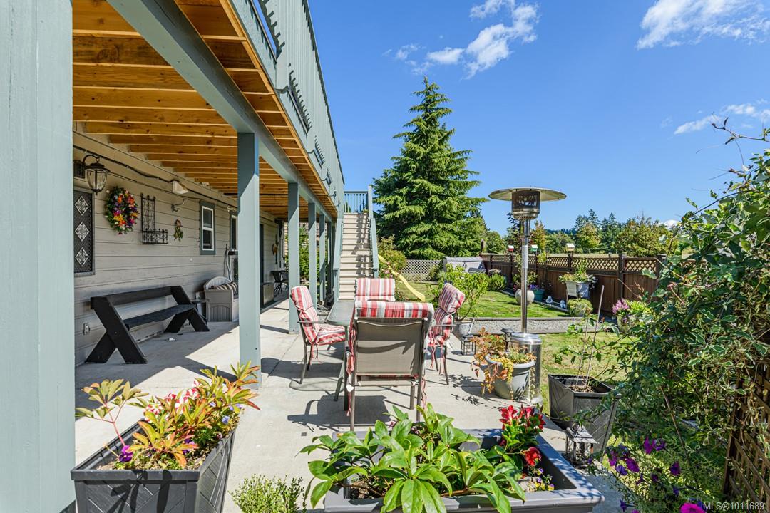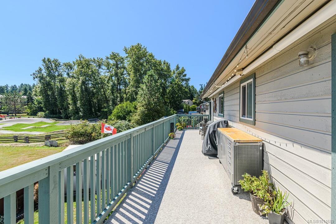 Home Business? Check out the flexible inlaw area w/kitchenette, 3pc bath & sep entrance, perfect for guests & extended family. Updated, multi-generational home on a no thru street, VR Park is an extension of the beautiful level backyard. Enjoy level entry living w/3 beds/2 baths up & income in legal 2 bed/1 bath suite. Open-concept layout shows off the vaulted wood ceilings & handsome rock fireplace, with spacious dining opening to new deck & fully fenced, landscaped yard. Skylights&lrg windows let the light flood in year round while the heat pump regulates for comfort. Other great updates include: 8yr roof, hot water on demand!, 2 laundries, & newer appliances. Yard offers fruit trees, gardens, generous storage, covered patio for the suite & locked gate to park for endless opportunities to bike, play, & off-leash walks. Ample parking for tenants or toys. Close to schools, E&N Trail, Eagle Creek shopping, Thetis Lake & local beaches, in a quiet, family-friendly neighbourhood!