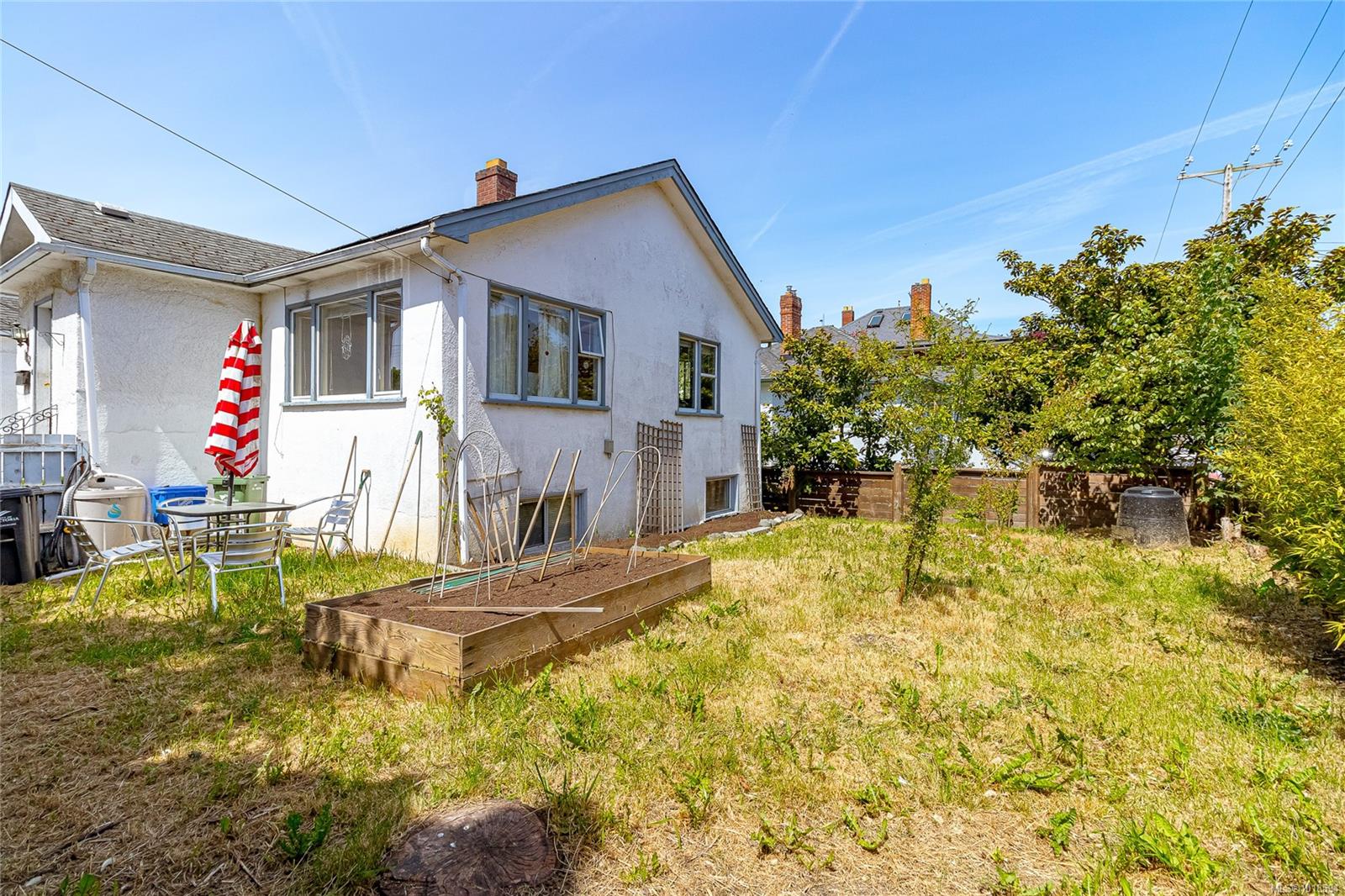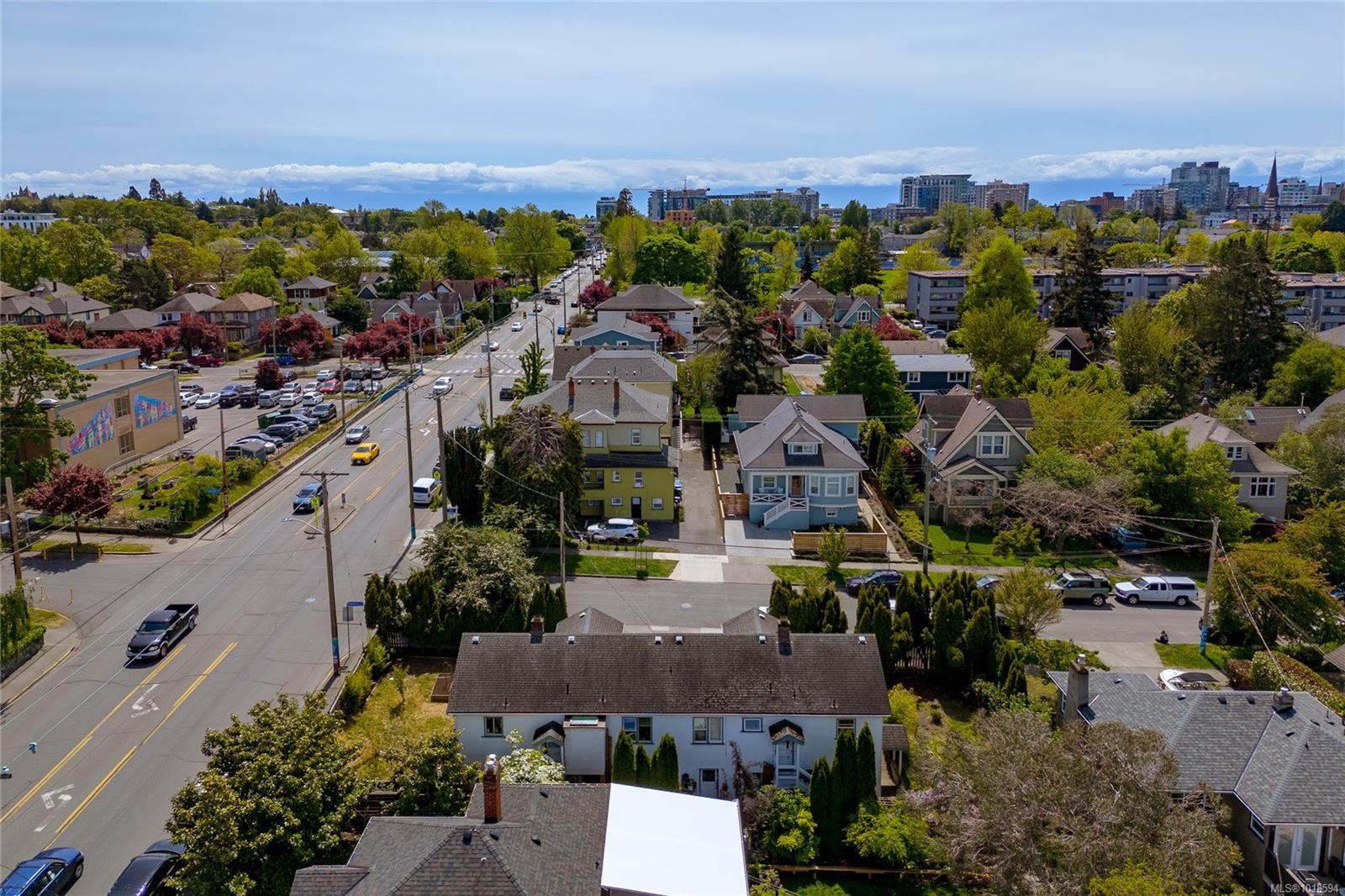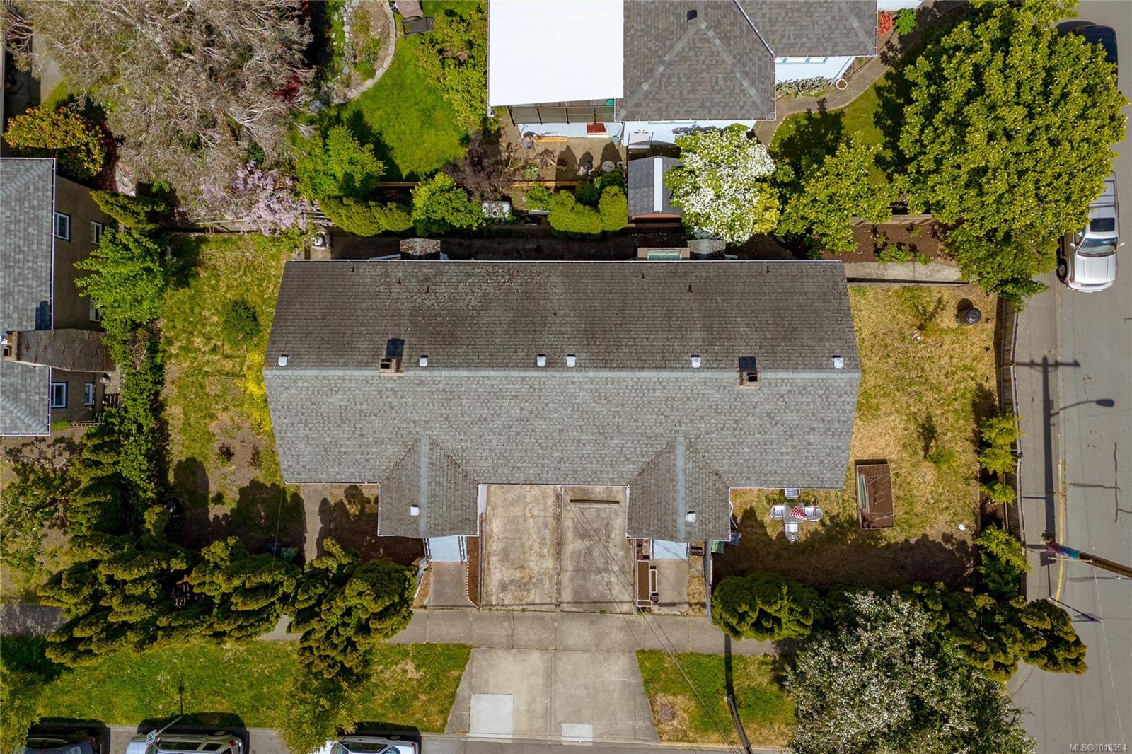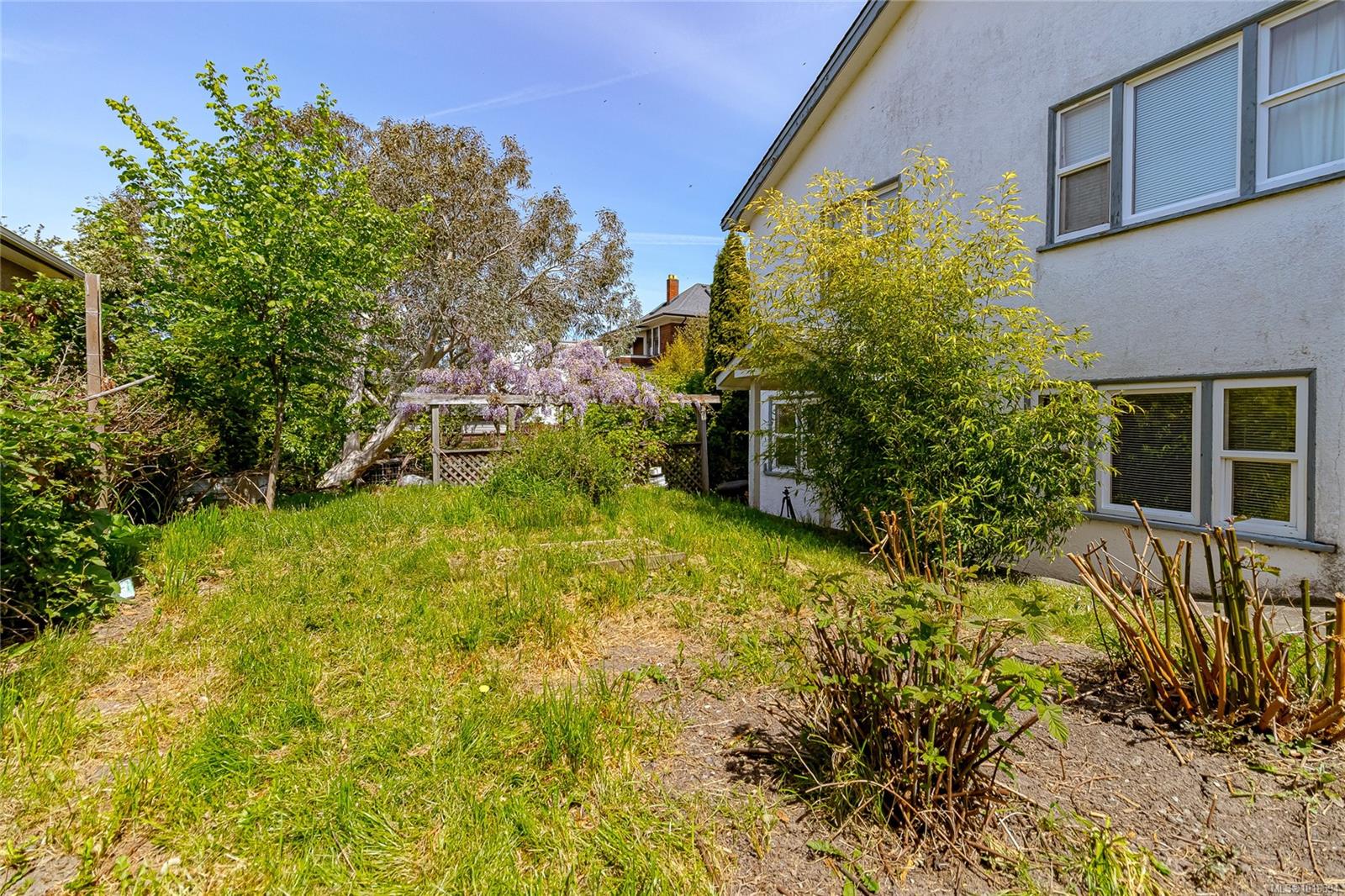 Duplex with 4 units total (3x2BR & 1x1BR.) All suites have their own entrances, electrical , HW tank and laundry. Both downstairs suites have been updated with newer kitchens, bathrooms, flooring and paint. Upper suites both recently fully repainted. Other upgrades include freshly painted front steps, replacement of back stairs leading down from upper units, water tank, sump pump, updated plumbing and perimeter drainage, attic work and yard clean up. 400 sqft unfinished garage / storage area with potential for reconfiguration. Both sides of the duplex have sunny, fenced garden spaces perfect for relaxing outdoors and growing veggies. Two parking spots on the property and lots of street parking too. Nestled between the various villages of Victoria proper with amenities galore within walking. Excellent location for renters going to U-Vic, or working at the hospital. One block to Central Park and Crystal Pool. Fully vacant. Buyer has the opportunity to move in, update and reconfigure as desired and/or rent at current market value. A great holding property with Victoria’s Official Community Plan designating this corner as “Priorty Growth Area.” Act quick!