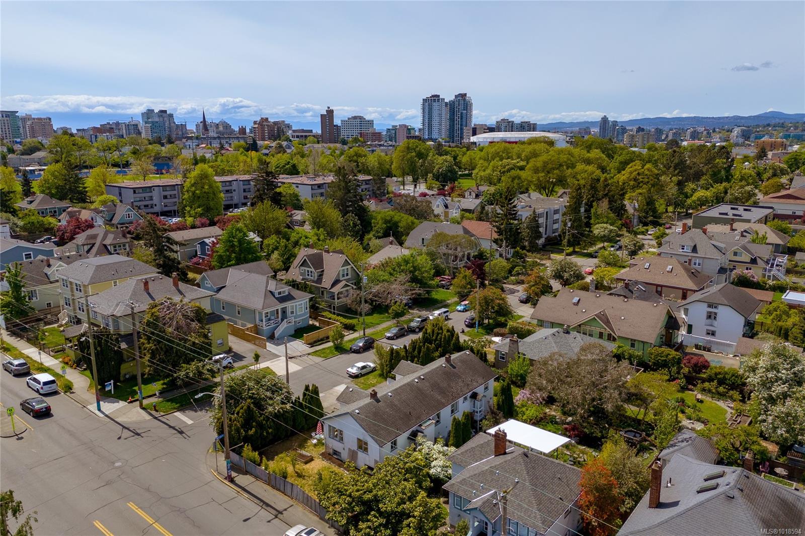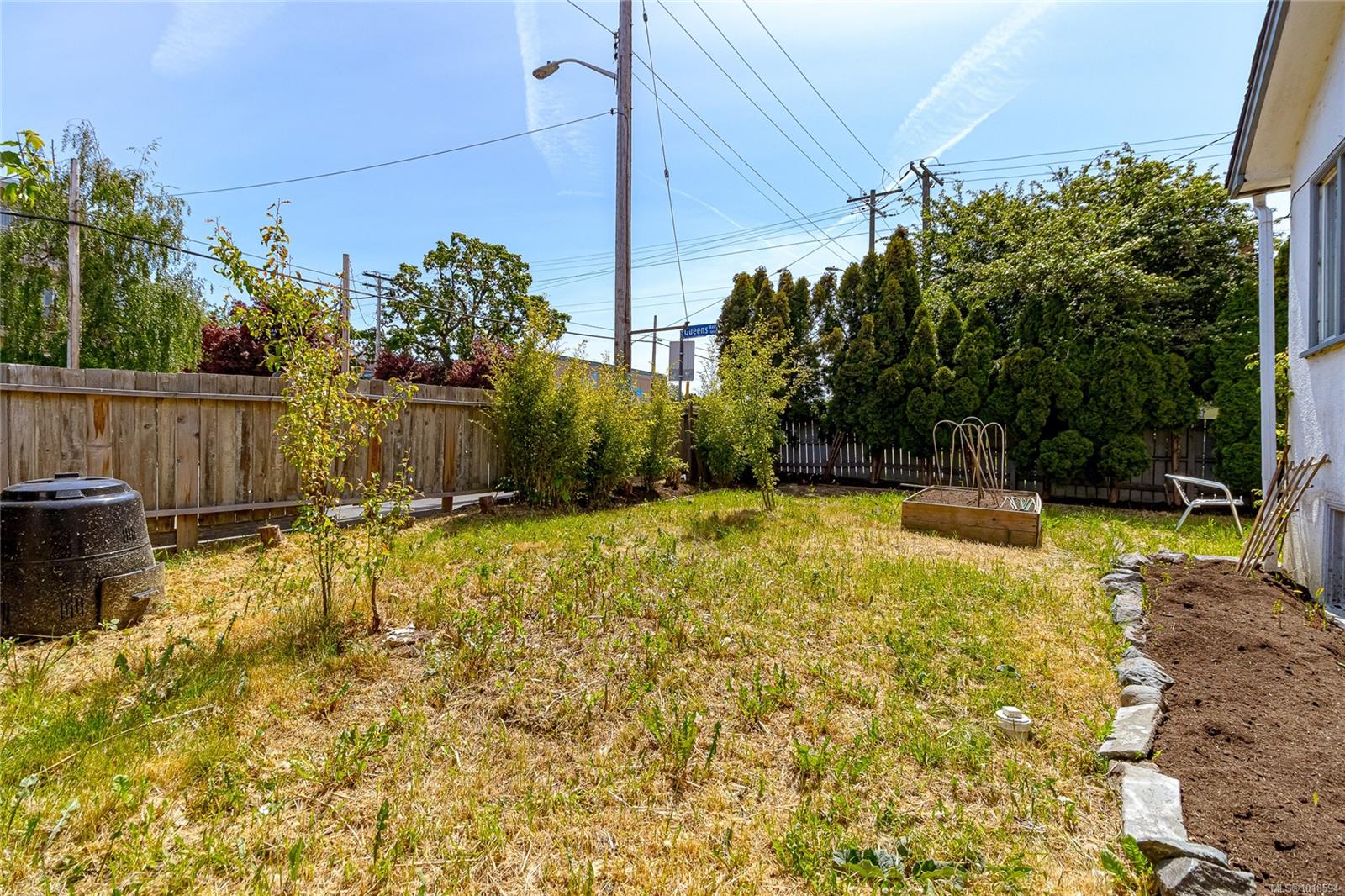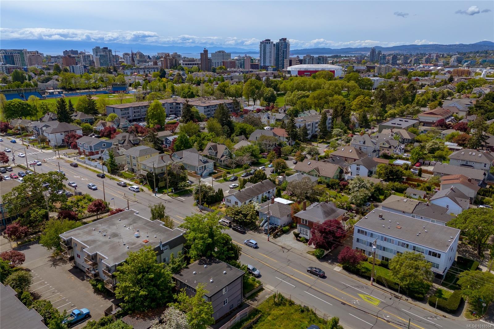 Duplex with 4 units total (3x2BR & 1x1BR.) All suites have their own entrances, electrical , HW tank and laundry. Both downstairs suites have been updated with newer kitchens, bathrooms, flooring and paint. Upper suites both recently fully repainted. Other upgrades include freshly painted front steps, replacement of back stairs leading down from upper units, water tank, sump pump, updated plumbing and perimeter drainage, attic work and yard clean up. 400 sqft unfinished garage / storage area with potential for reconfiguration. Both sides of the duplex have sunny, fenced garden spaces perfect for relaxing outdoors and growing veggies. Two parking spots on the property and lots of street parking too. Nestled between the various villages of Victoria proper with amenities galore within walking. Excellent location for renters going to U-Vic, or working at the hospital. One block to Central Park and Crystal Pool. Fully vacant. Buyer has the opportunity to move in, update and reconfigure as desired and/or rent at current market value. A great holding property with Victoria’s Official Community Plan designating this corner as “Priorty Growth Area.” Act quick!