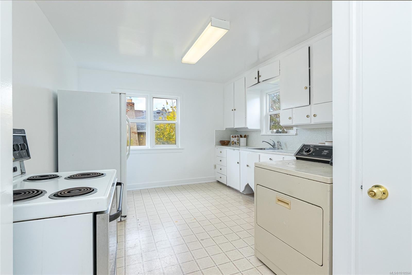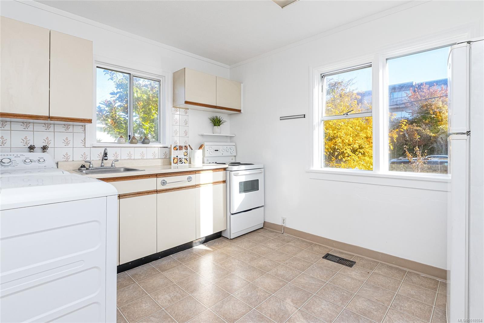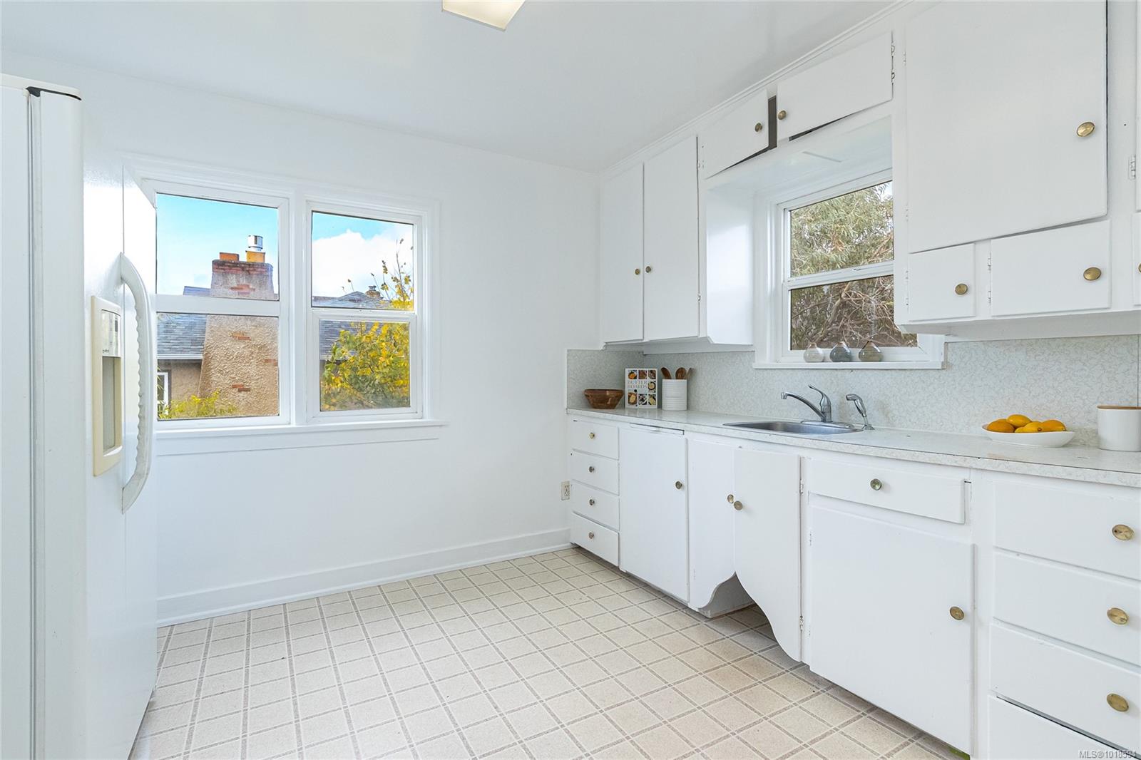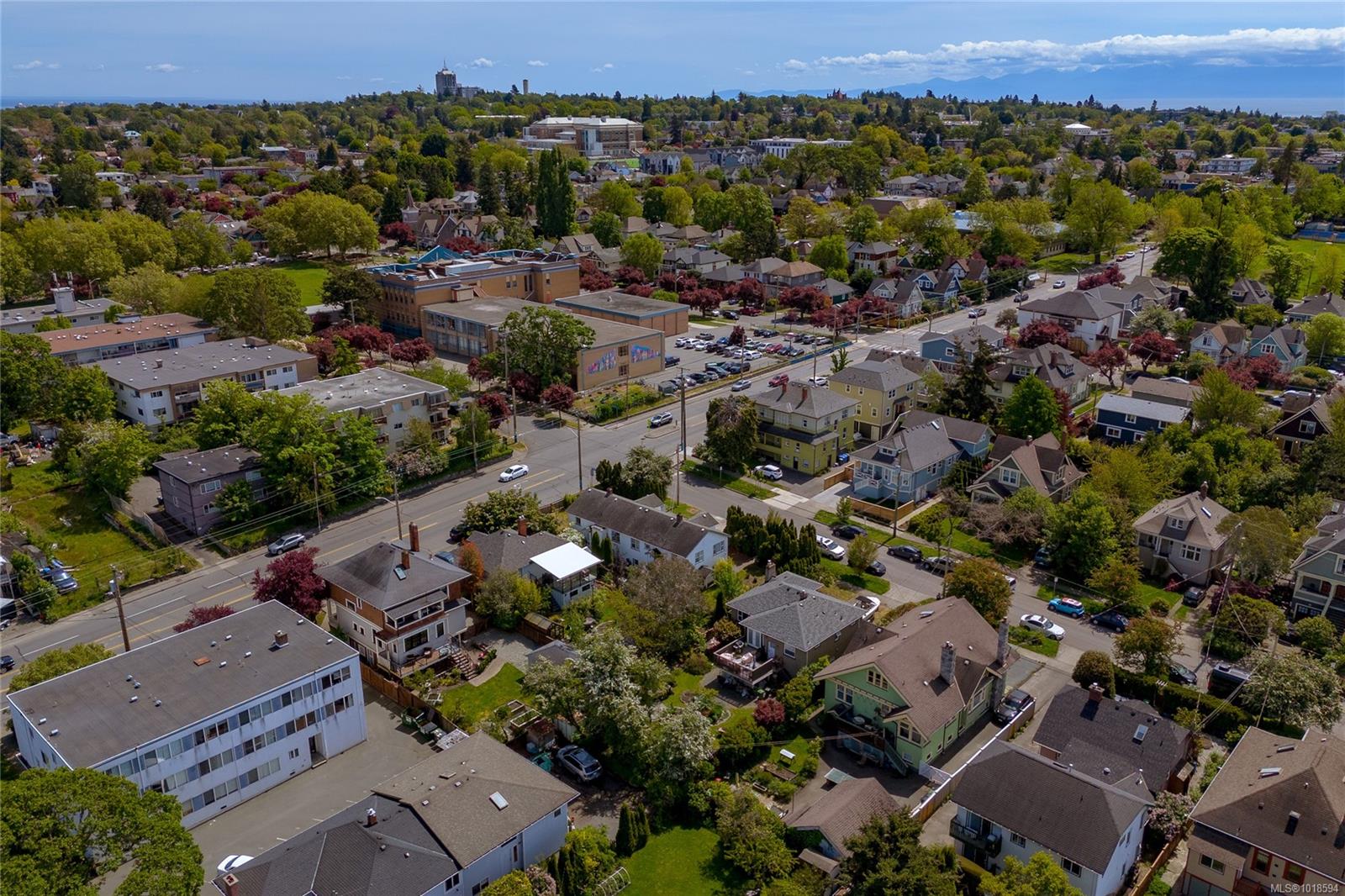 Duplex with 4 units total (3x2BR & 1x1BR.) All suites have their own entrances, electrical , HW tank and laundry. Both downstairs suites have been updated with newer kitchens, bathrooms, flooring and paint. Upper suites both recently fully repainted. Other upgrades include freshly painted front steps, replacement of back stairs leading down from upper units, water tank, sump pump, updated plumbing and perimeter drainage, attic work and yard clean up. 400 sqft unfinished garage / storage area with potential for reconfiguration. Both sides of the duplex have sunny, fenced garden spaces perfect for relaxing outdoors and growing veggies. Two parking spots on the property and lots of street parking too. Nestled between the various villages of Victoria proper with amenities galore within walking. Excellent location for renters going to U-Vic, or working at the hospital. One block to Central Park and Crystal Pool. Fully vacant. Buyer has the opportunity to move in, update and reconfigure as desired and/or rent at current market value. A great holding property with Victoria’s Official Community Plan designating this corner as “Priorty Growth Area.” Act quick!