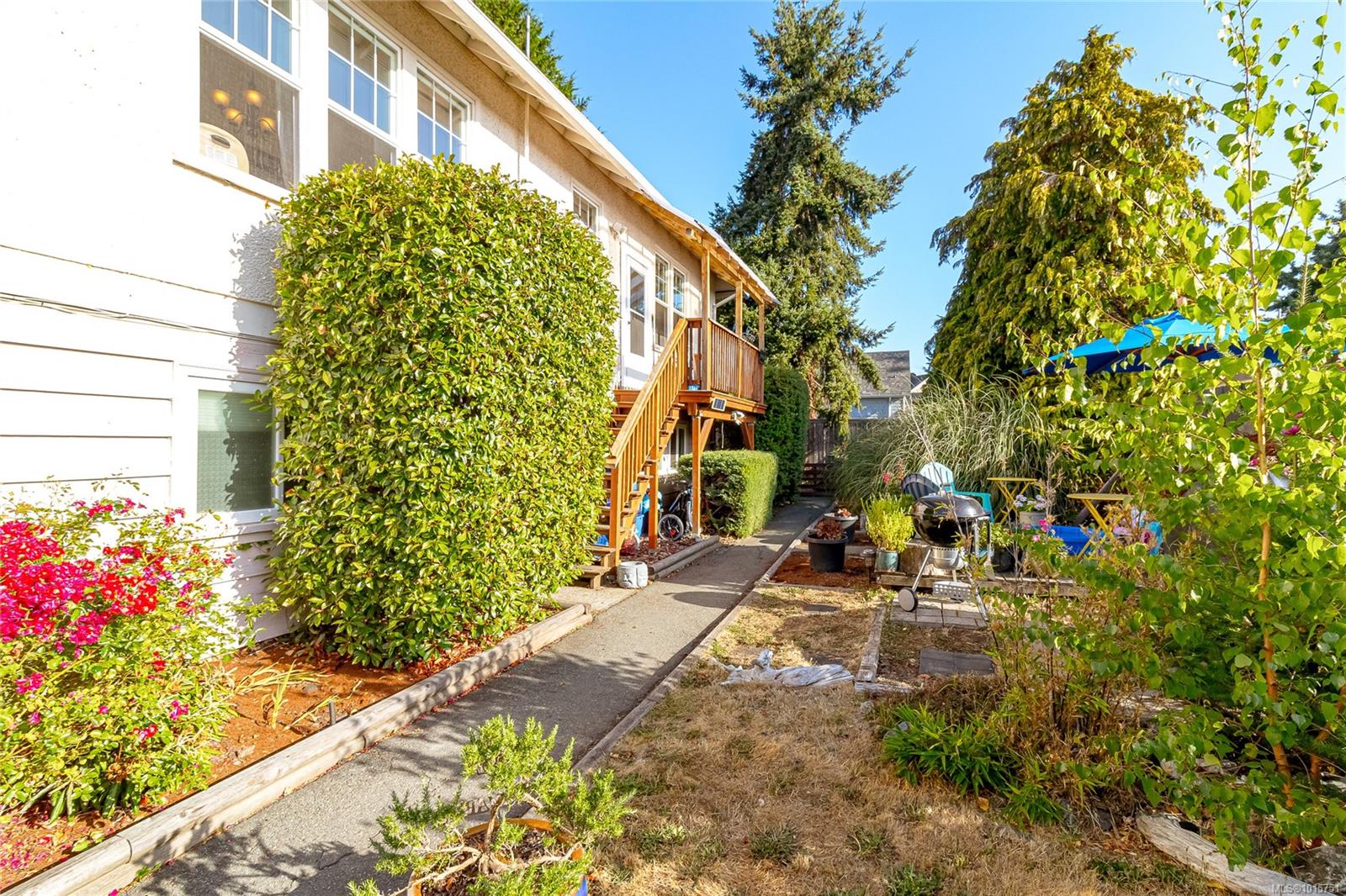 Nestled in a quiet pocket of Oaklands just two blocks from Hillside Mall, this meticulously maintained LEGAL 4-plex is a rare opportunity to secure a strong, income-producing investment. Originally built in the 1920s, the home was moved to its current location and converted to a 4-plex with permits in 1989. Set on a private 13,000+ sq ft panhandle lot, the property offers three bright 2-bedroom suites and one spacious 1-bedroom + den, each with separate entrances, individual meters, hot water tanks, and outdoor space. Character details include 10-foot ceilings and loft-style bedrooms in the upper units, while the garden suites provide generous layouts filled with natural light. Practical features include 300-amp service, common laundry, updated windows, and a double garage (one side converted to storage). With direct transit to UVIC, Camosun, and downtown, this property offers both immediate rental income and excellent long-term holding value. This property is fully tenanted with a showing schedule, and a minimum of 24 hours is required for viewings.