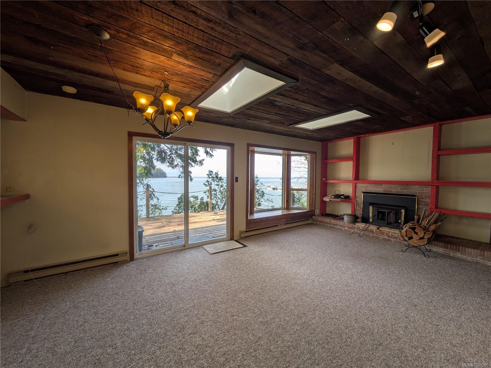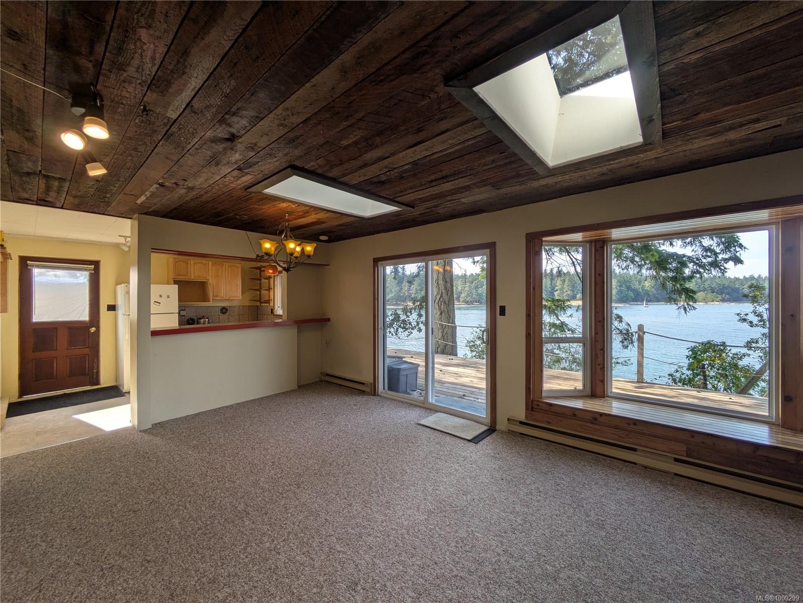 Rare waterfront opportunity! Are you a nature lover,kayaker,ocean swimmer,or just young at heart?! Then this peaceful waterfront cabin on beautiful Protection Island could be for you.Come see this 2 bed 1 bath home nestled into the most stunning location-facing Saysutshun Island,w/views of mainland mountains.Listen to seabirds calling,children playing in the tidal shallows;explore the beach from your doorstep;launch your kayak, paddle, or even walk across to Saysutshun at very lowest tides.Glass doors & bay windows in the living area bring the wide views inside, skylights keep the home bright in all seasons,& a wood stove insert will keep you cosy. An expansive deck extends out from the kitchen& living room. PI has; City water, sewer, its own Fire Station/First Responders, community hall,library, garden&museum. Live/work/play here on this island oasis,just a short ferry ride to the amenities of Downtown Nanaimo,with onward connections via Hullo& BC ferries, seaplane & Helijet