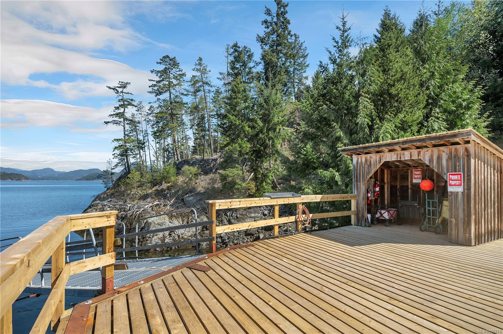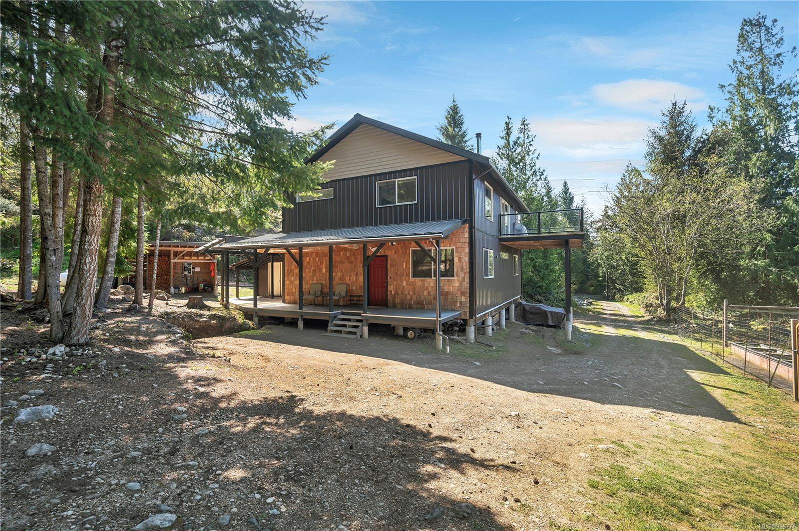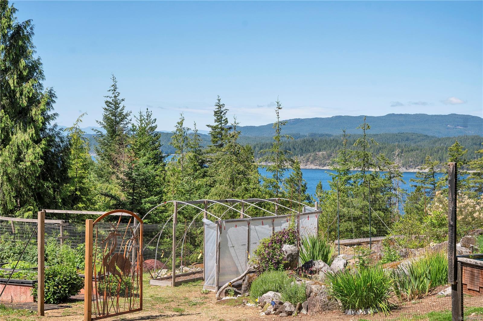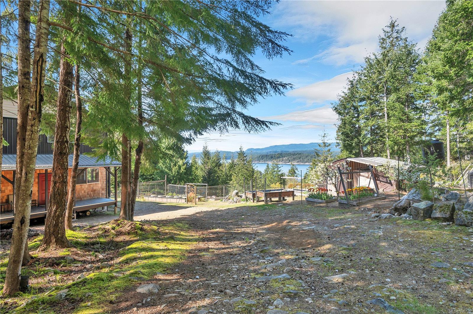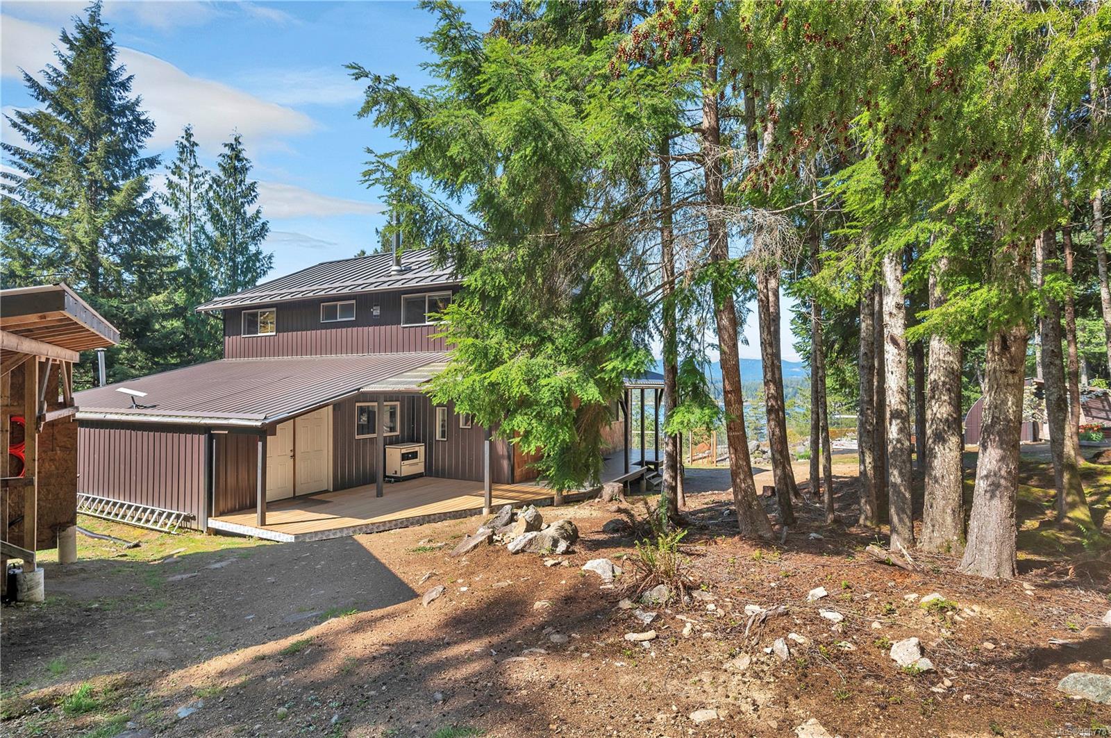 Read Island custom built home on 3.7 acre off-grid, highbank oceanfront property overlooking King Island Bay! This 2,400 sq ft two level home features a low maintenance design with metal roof & siding & aluminum deck on the upper floor. The lower level of the home offers a covered deck off the entry that opens to the canning kitchen with propane range & electric stove & stainless steel prep sink. There is a spacious family room with woodstove also on the lower level, with doors leading to the storage & workshop & large pantry. There is 1 bedroom with a 3pc ensuite also on this level. Upstairs you’ll find the inviting open floor plan living room, dining room and kitchen with vaulted ceilings, a woodstove and sliding door to the upper deck overlooking the ocean. The kitchen has a propane & electric oven & electric fridge and a good-sized pantry. Also on the upper floor there are 2 bedrooms and a 3pc bathroom, including the primary bedroom. The home boasts modern engineered flooring throughout, nice neutral paint & many windows. The sale includes most furnishings & off-grid equipment to run the power to the property including 15 solar panels, Pelton wheel turbine, inverter and battery bank. Other features of this beautiful property include two wood storage sheds, established fenced garden with irrigation, hot house & greenhouse/potting shed. There are also 4 apple trees, 1 pear tree, 1 cherry tree & 1 plum tree, plus a variety of other established fruit/vegetable plants and ornamental plants. Much of this acreage is in natural state with a nice mix of mature trees. This property is situated in a bareland strata subdivision on the west side of Read Island, with a shared strata wharf and road system through the subdivision to easily access the property from the wharf, about a 10 minute private boat ride from Heriot Bay. Come enjoy peaceful off-grid island living!