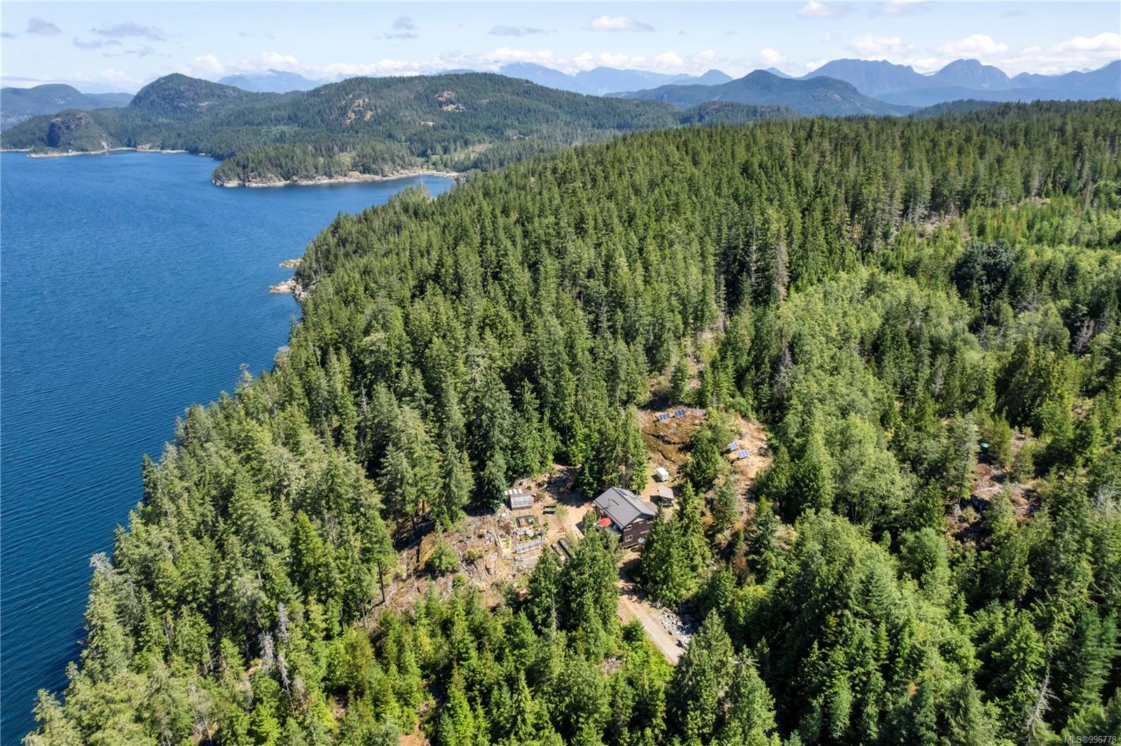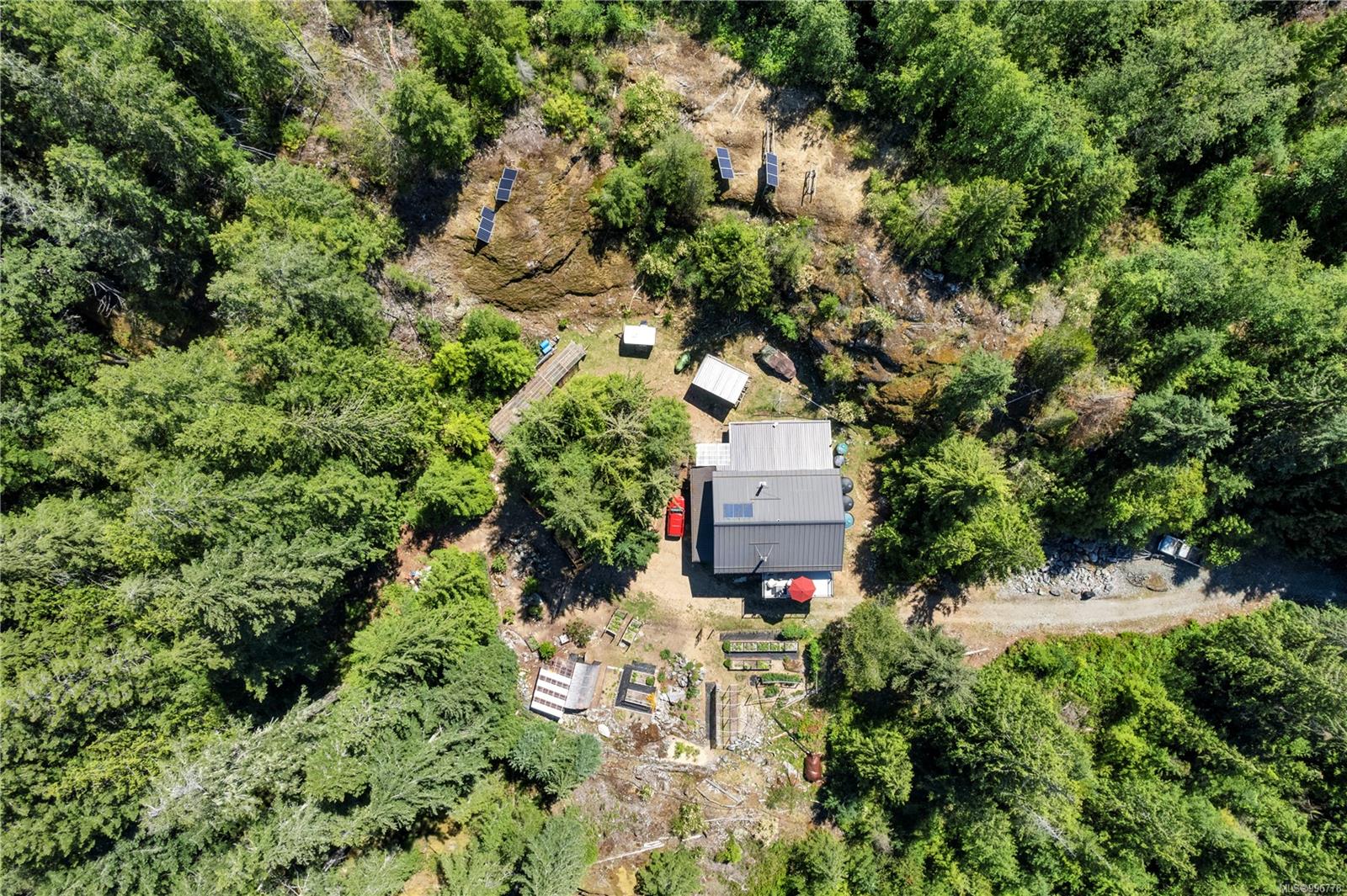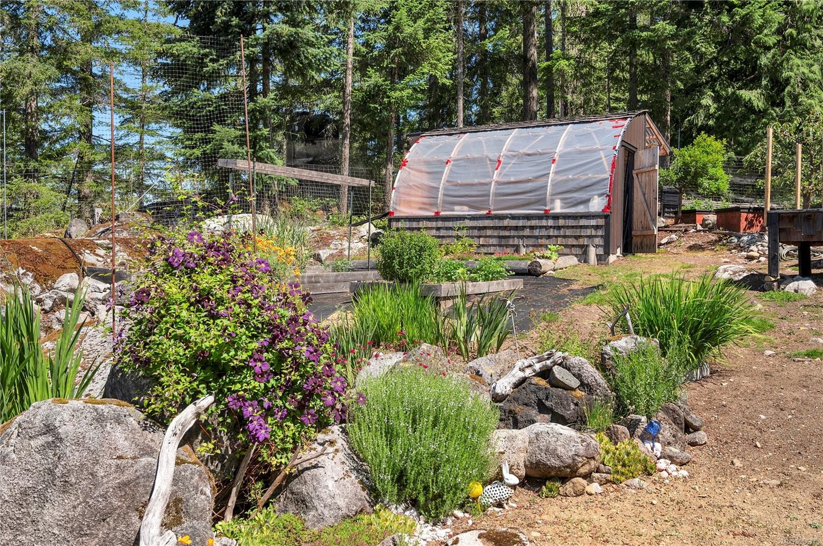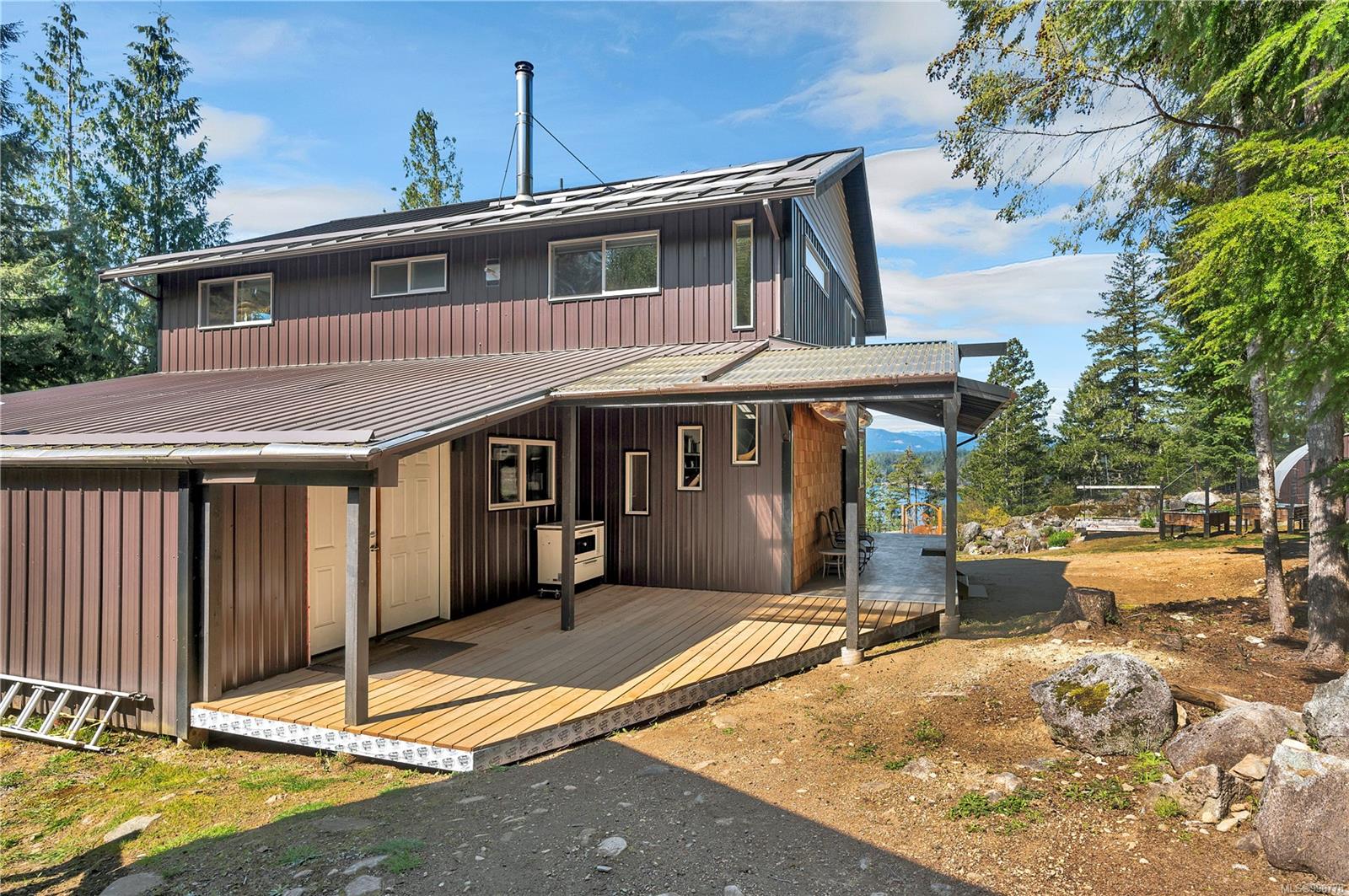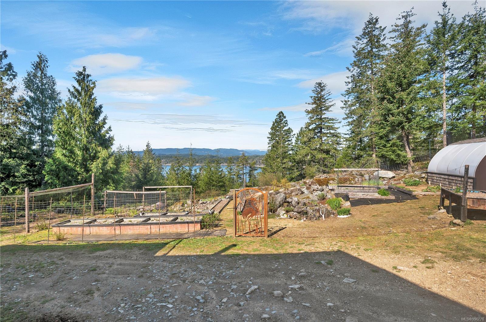 Read Island custom built home on 3.7 acre off-grid, highbank oceanfront property overlooking King Island Bay! This 2,400 sq ft two level home features a low maintenance design with metal roof & siding & aluminum deck on the upper floor. The lower level of the home offers a covered deck off the entry that opens to the canning kitchen with propane range & electric stove & stainless steel prep sink. There is a spacious family room with woodstove also on the lower level, with doors leading to the storage & workshop & large pantry. There is 1 bedroom with a 3pc ensuite also on this level. Upstairs you’ll find the inviting open floor plan living room, dining room and kitchen with vaulted ceilings, a woodstove and sliding door to the upper deck overlooking the ocean. The kitchen has a propane & electric oven & electric fridge and a good-sized pantry. Also on the upper floor there are 2 bedrooms and a 3pc bathroom, including the primary bedroom. The home boasts modern engineered flooring throughout, nice neutral paint & many windows. The sale includes most furnishings & off-grid equipment to run the power to the property including 15 solar panels, Pelton wheel turbine, inverter and battery bank. Other features of this beautiful property include two wood storage sheds, established fenced garden with irrigation, hot house & greenhouse/potting shed. There are also 4 apple trees, 1 pear tree, 1 cherry tree & 1 plum tree, plus a variety of other established fruit/vegetable plants and ornamental plants. Much of this acreage is in natural state with a nice mix of mature trees. This property is situated in a bareland strata subdivision on the west side of Read Island, with a shared strata wharf and road system through the subdivision to easily access the property from the wharf, about a 10 minute private boat ride from Heriot Bay. Come enjoy peaceful off-grid island living!