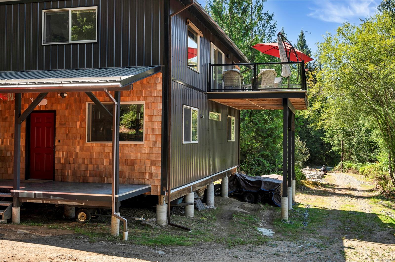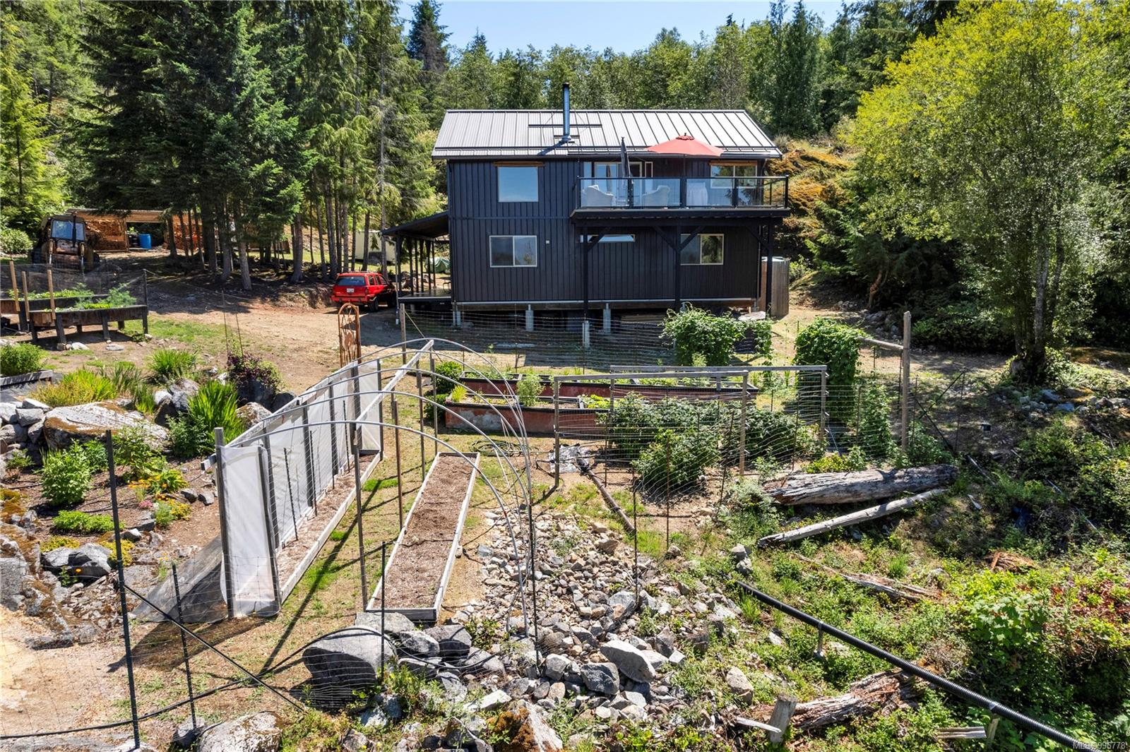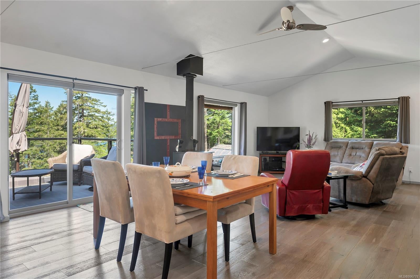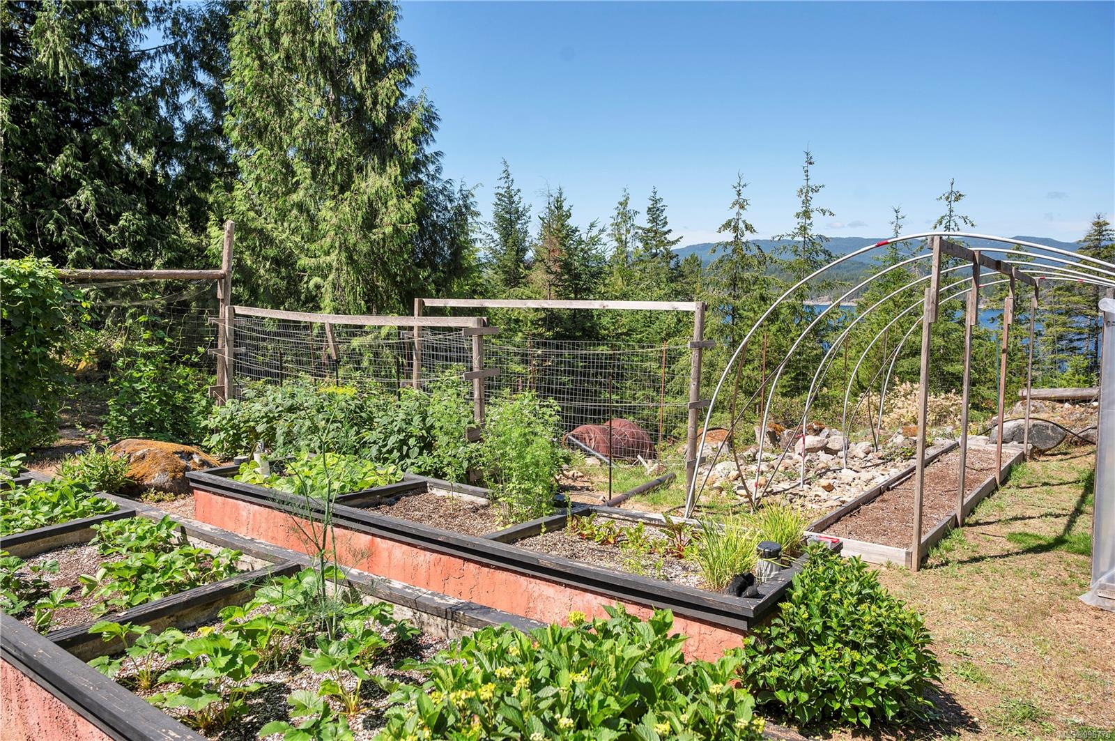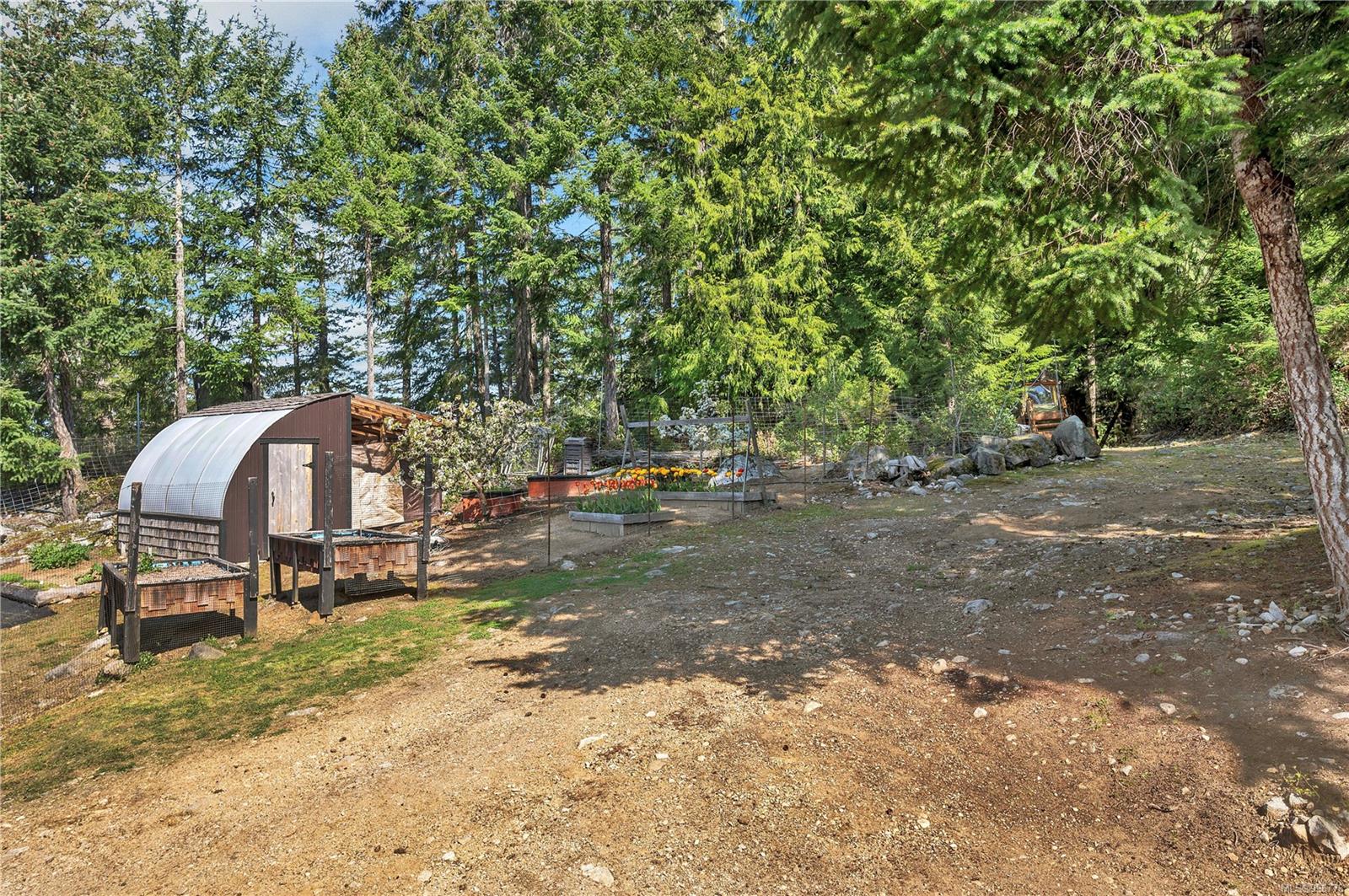 Read Island custom built home on 3.7 acre off-grid, highbank oceanfront property overlooking King Island Bay! This 2,400 sq ft two level home features a low maintenance design with metal roof & siding & aluminum deck on the upper floor. The lower level of the home offers a covered deck off the entry that opens to the canning kitchen with propane range & electric stove & stainless steel prep sink. There is a spacious family room with woodstove also on the lower level, with doors leading to the storage & workshop & large pantry. There is 1 bedroom with a 3pc ensuite also on this level. Upstairs you’ll find the inviting open floor plan living room, dining room and kitchen with vaulted ceilings, a woodstove and sliding door to the upper deck overlooking the ocean. The kitchen has a propane & electric oven & electric fridge and a good-sized pantry. Also on the upper floor there are 2 bedrooms and a 3pc bathroom, including the primary bedroom. The home boasts modern engineered flooring throughout, nice neutral paint & many windows. The sale includes most furnishings & off-grid equipment to run the power to the property including 15 solar panels, Pelton wheel turbine, inverter and battery bank. Other features of this beautiful property include two wood storage sheds, established fenced garden with irrigation, hot house & greenhouse/potting shed. There are also 4 apple trees, 1 pear tree, 1 cherry tree & 1 plum tree, plus a variety of other established fruit/vegetable plants and ornamental plants. Much of this acreage is in natural state with a nice mix of mature trees. This property is situated in a bareland strata subdivision on the west side of Read Island, with a shared strata wharf and road system through the subdivision to easily access the property from the wharf, about a 10 minute private boat ride from Heriot Bay. Come enjoy peaceful off-grid island living!