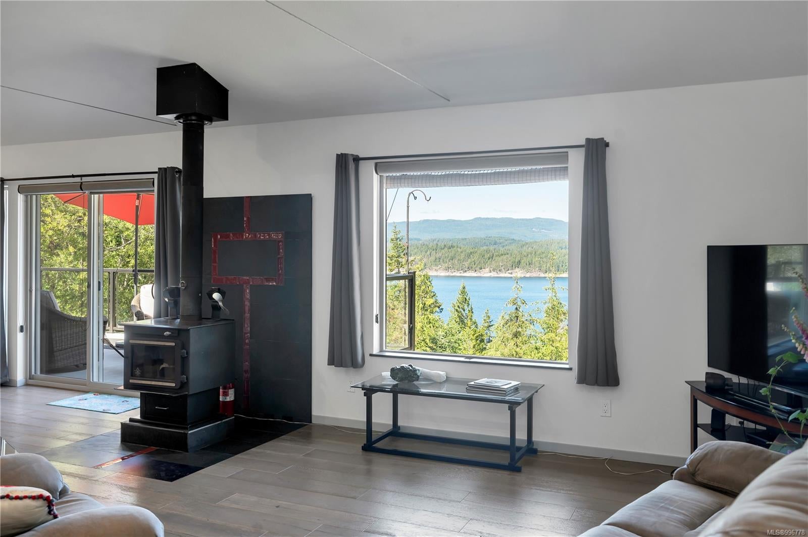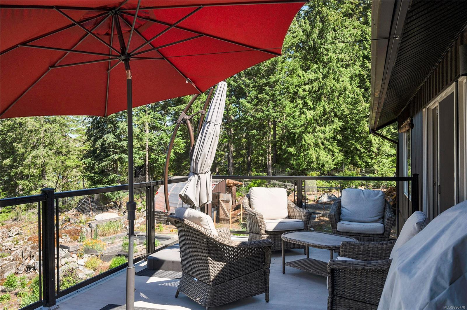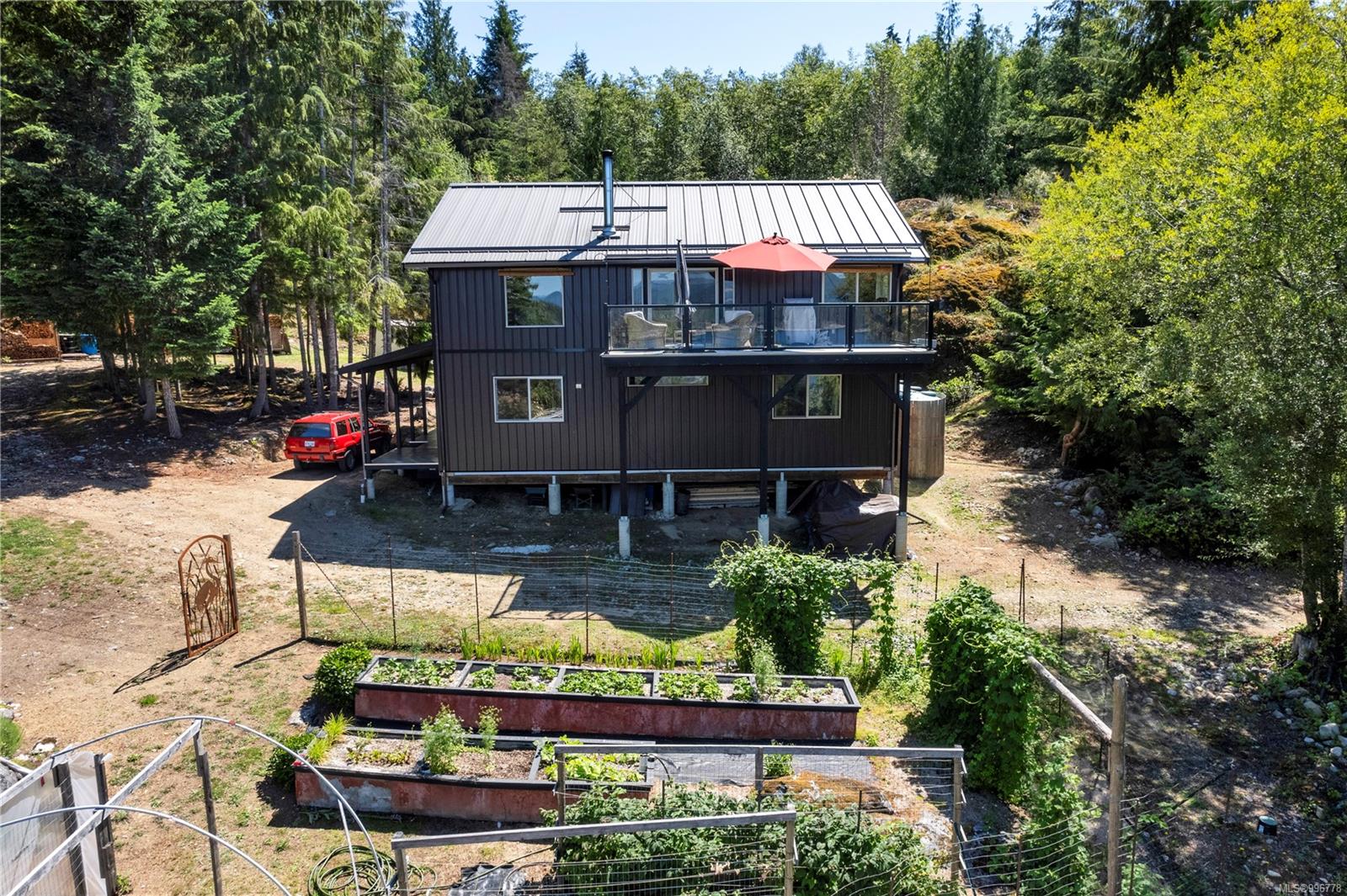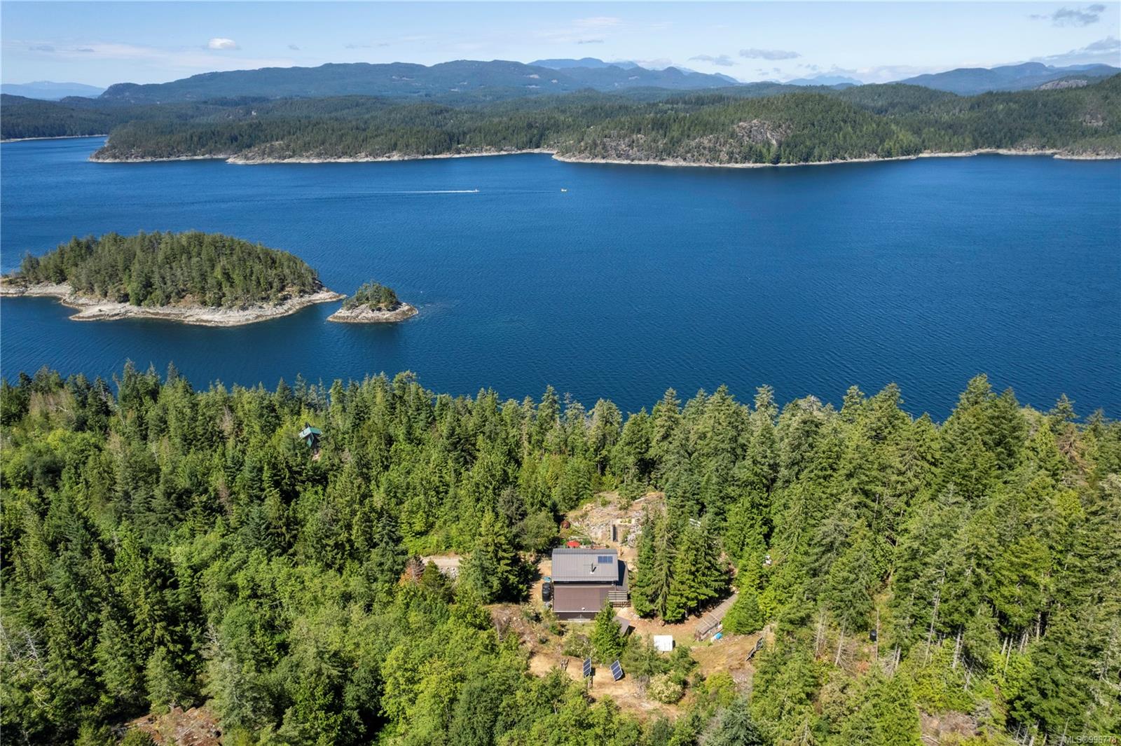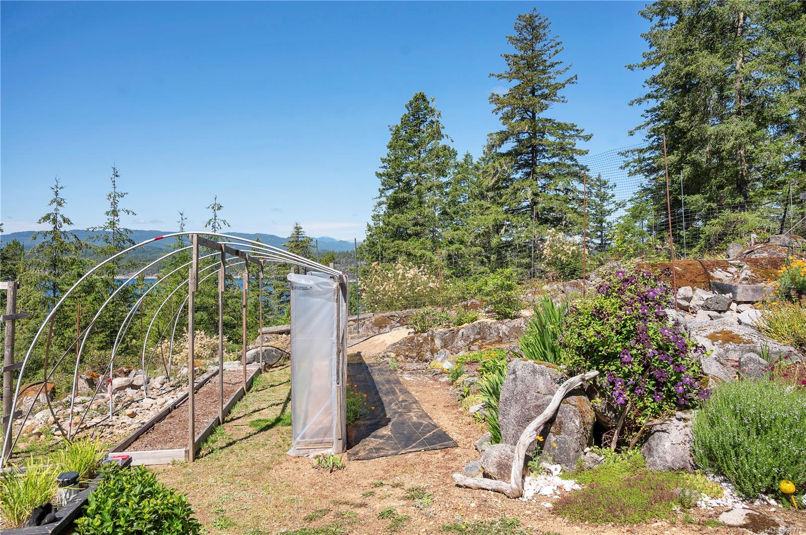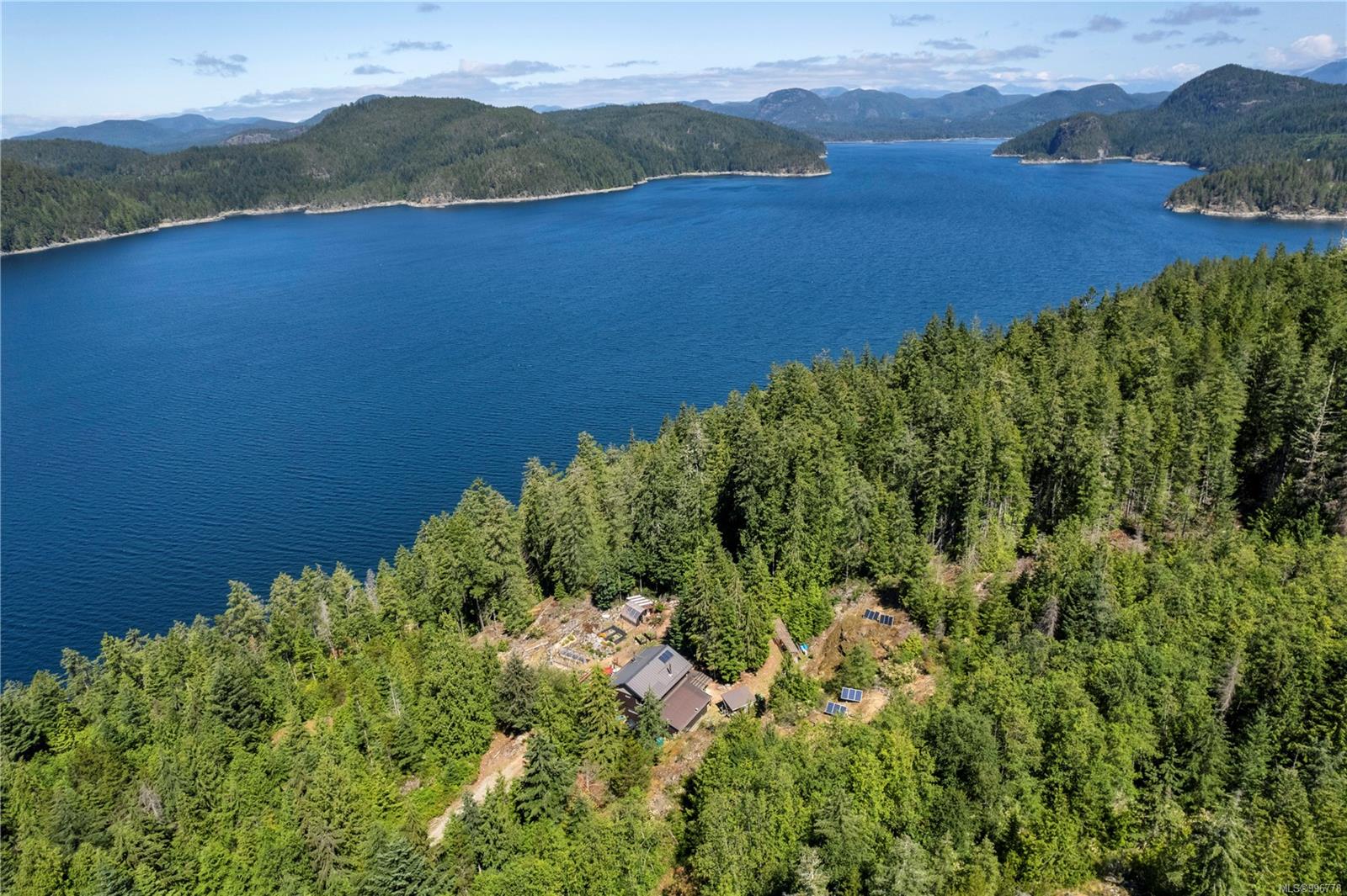 Read Island custom built home on 3.7 acre off-grid, highbank oceanfront property overlooking King Island Bay! This 2,400 sq ft two level home features a low maintenance design with metal roof & siding & aluminum deck on the upper floor. The lower level of the home offers a covered deck off the entry that opens to the canning kitchen with propane range & electric stove & stainless steel prep sink. There is a spacious family room with woodstove also on the lower level, with doors leading to the storage & workshop & large pantry. There is 1 bedroom with a 3pc ensuite also on this level. Upstairs you’ll find the inviting open floor plan living room, dining room and kitchen with vaulted ceilings, a woodstove and sliding door to the upper deck overlooking the ocean. The kitchen has a propane & electric oven & electric fridge and a good-sized pantry. Also on the upper floor there are 2 bedrooms and a 3pc bathroom, including the primary bedroom. The home boasts modern engineered flooring throughout, nice neutral paint & many windows. The sale includes most furnishings & off-grid equipment to run the power to the property including 15 solar panels, Pelton wheel turbine, inverter and battery bank. Other features of this beautiful property include two wood storage sheds, established fenced garden with irrigation, hot house & greenhouse/potting shed. There are also 4 apple trees, 1 pear tree, 1 cherry tree & 1 plum tree, plus a variety of other established fruit/vegetable plants and ornamental plants. Much of this acreage is in natural state with a nice mix of mature trees. This property is situated in a bareland strata subdivision on the west side of Read Island, with a shared strata wharf and road system through the subdivision to easily access the property from the wharf, about a 10 minute private boat ride from Heriot Bay. Come enjoy peaceful off-grid island living!