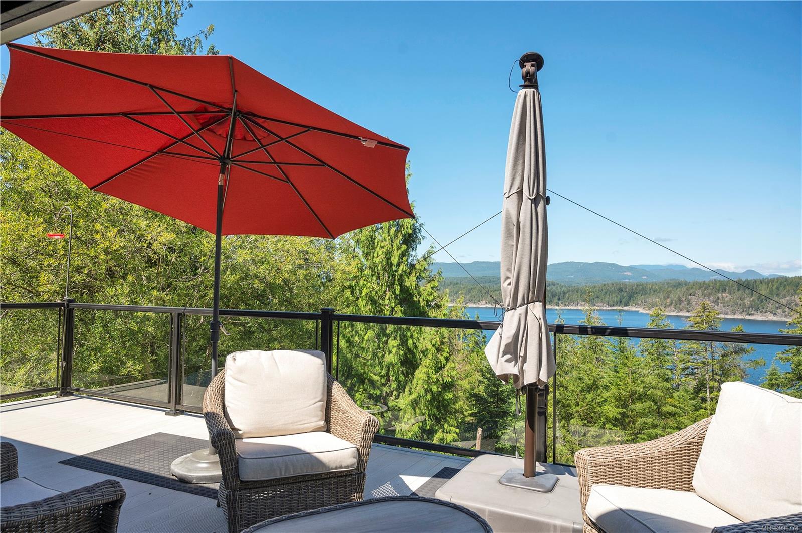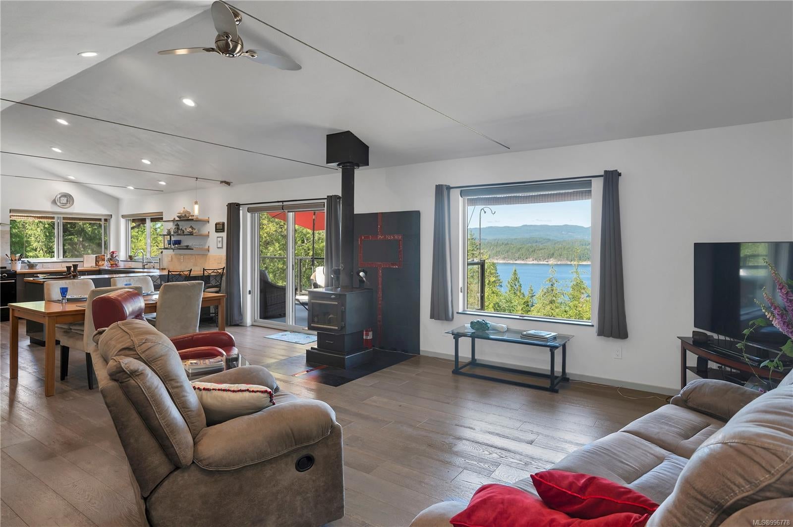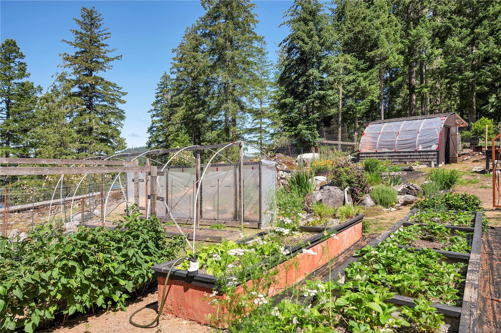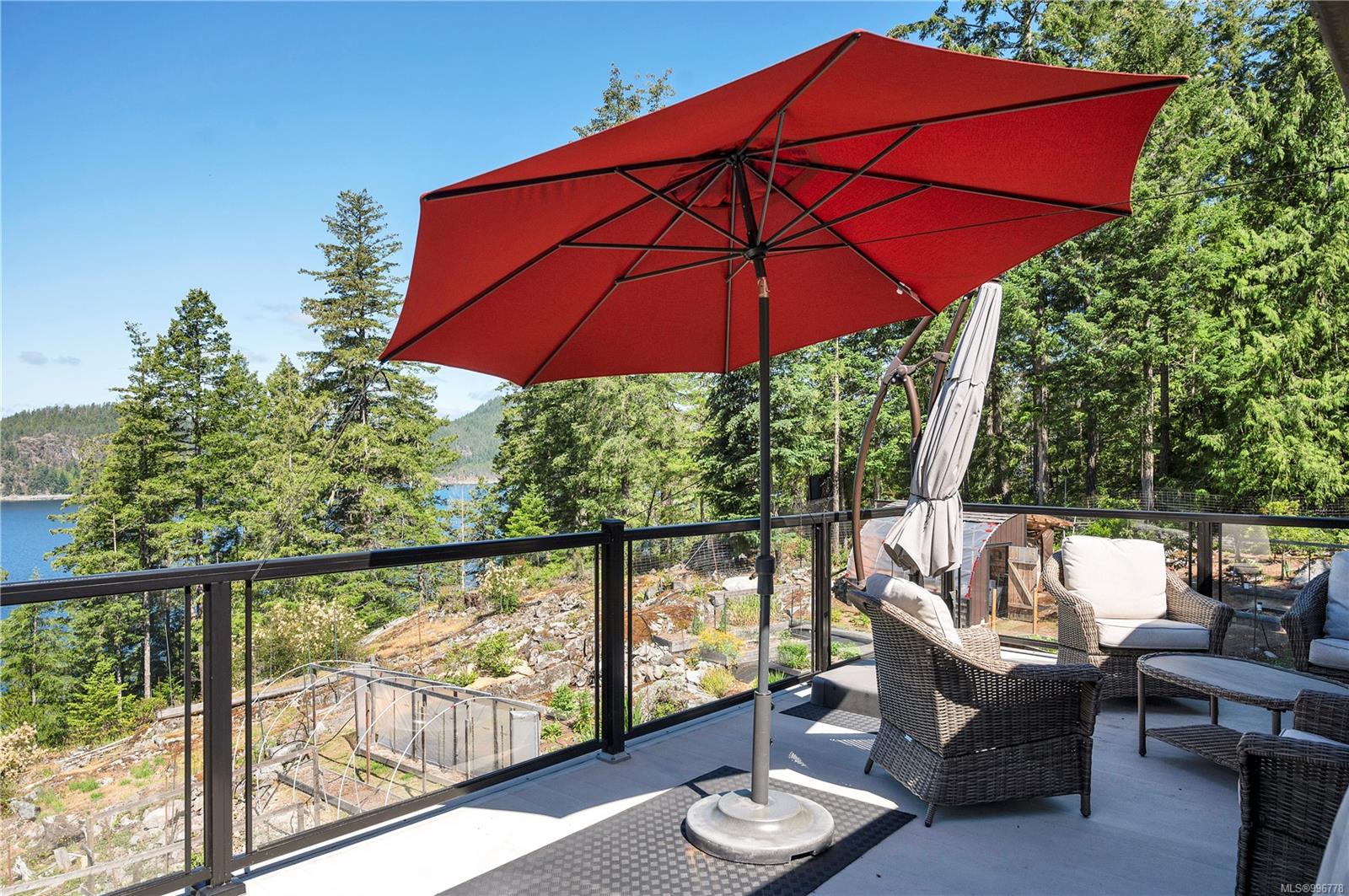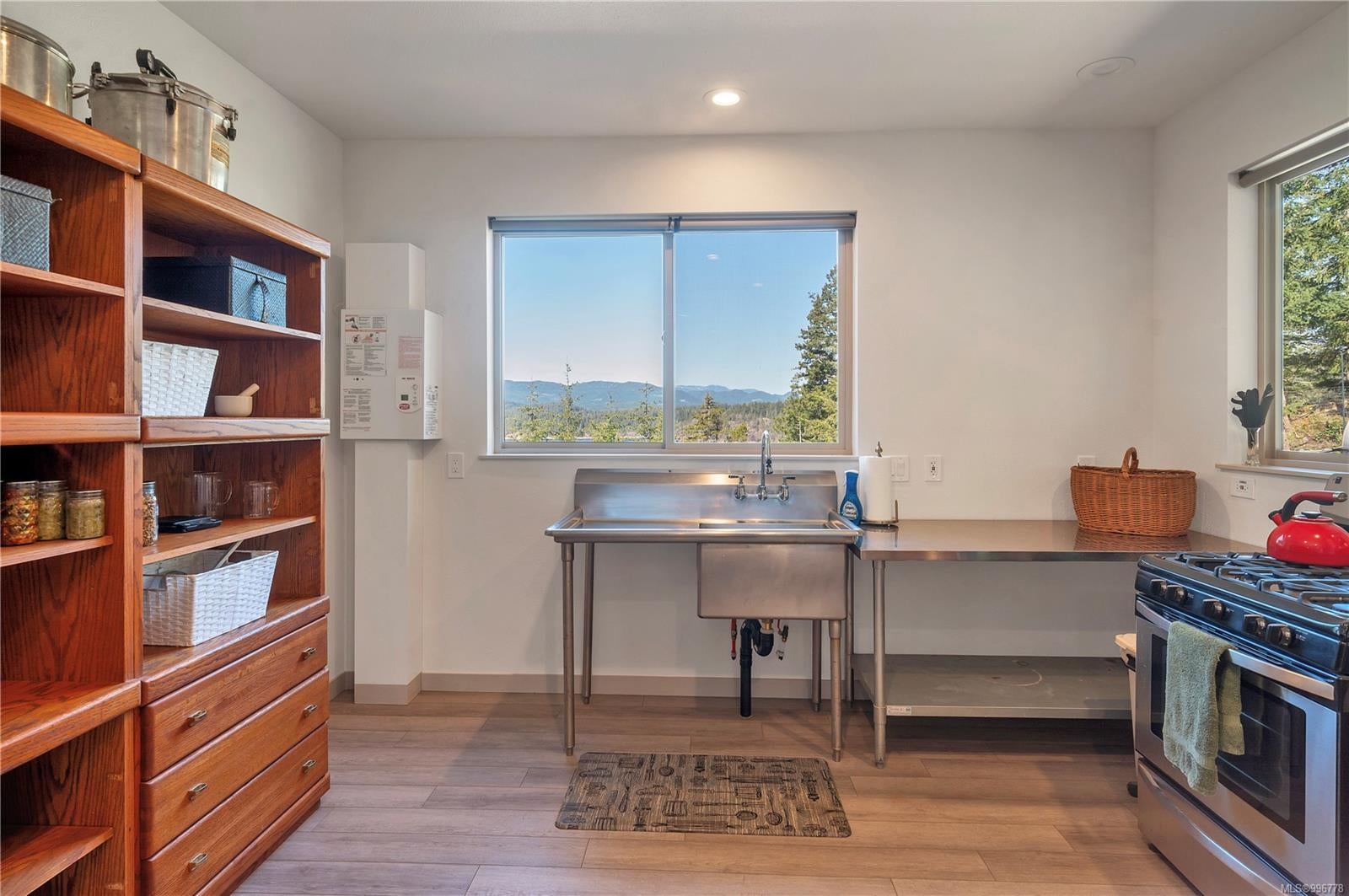 Read Island custom built home on 3.7 acre off-grid, highbank oceanfront property overlooking King Island Bay! This 2,400 sq ft two level home features a low maintenance design with metal roof & siding & aluminum deck on the upper floor. The lower level of the home offers a covered deck off the entry that opens to the canning kitchen with propane range & electric stove & stainless steel prep sink. There is a spacious family room with woodstove also on the lower level, with doors leading to the storage & workshop & large pantry. There is 1 bedroom with a 3pc ensuite also on this level. Upstairs you’ll find the inviting open floor plan living room, dining room and kitchen with vaulted ceilings, a woodstove and sliding door to the upper deck overlooking the ocean. The kitchen has a propane & electric oven & electric fridge and a good-sized pantry. Also on the upper floor there are 2 bedrooms and a 3pc bathroom, including the primary bedroom. The home boasts modern engineered flooring throughout, nice neutral paint & many windows. The sale includes most furnishings & off-grid equipment to run the power to the property including 15 solar panels, Pelton wheel turbine, inverter and battery bank. Other features of this beautiful property include two wood storage sheds, established fenced garden with irrigation, hot house & greenhouse/potting shed. There are also 4 apple trees, 1 pear tree, 1 cherry tree & 1 plum tree, plus a variety of other established fruit/vegetable plants and ornamental plants. Much of this acreage is in natural state with a nice mix of mature trees. This property is situated in a bareland strata subdivision on the west side of Read Island, with a shared strata wharf and road system through the subdivision to easily access the property from the wharf, about a 10 minute private boat ride from Heriot Bay. Come enjoy peaceful off-grid island living!