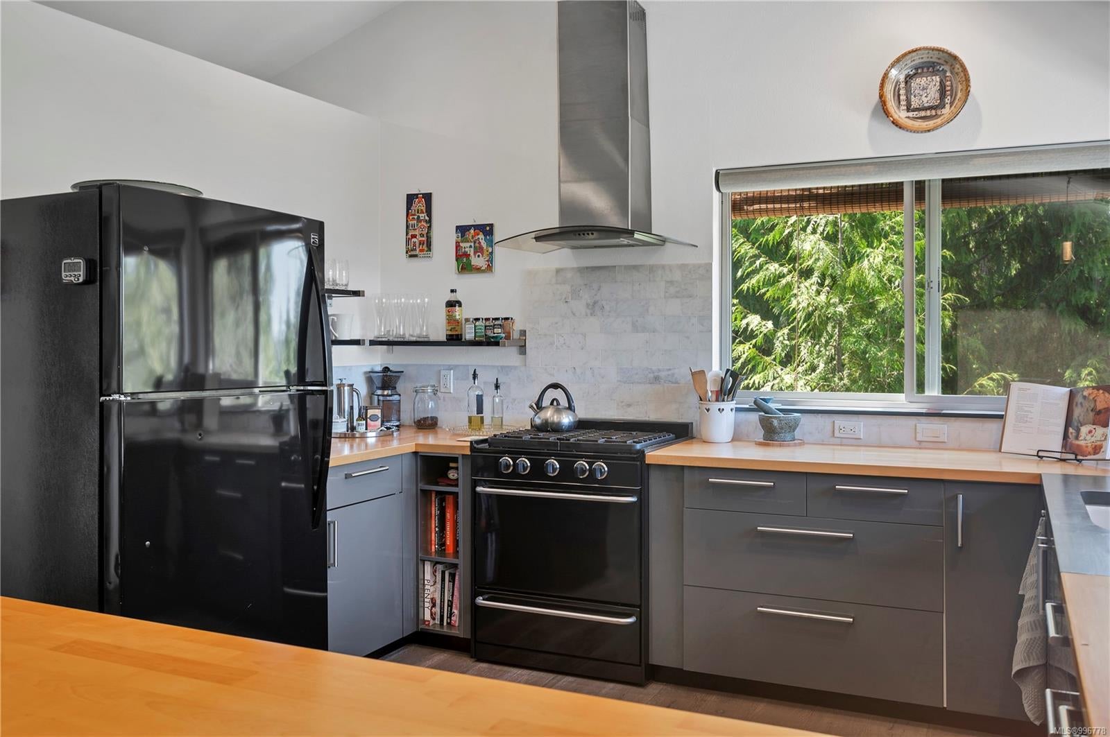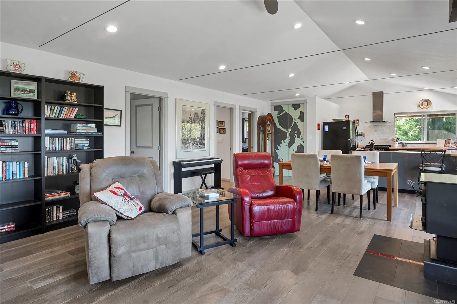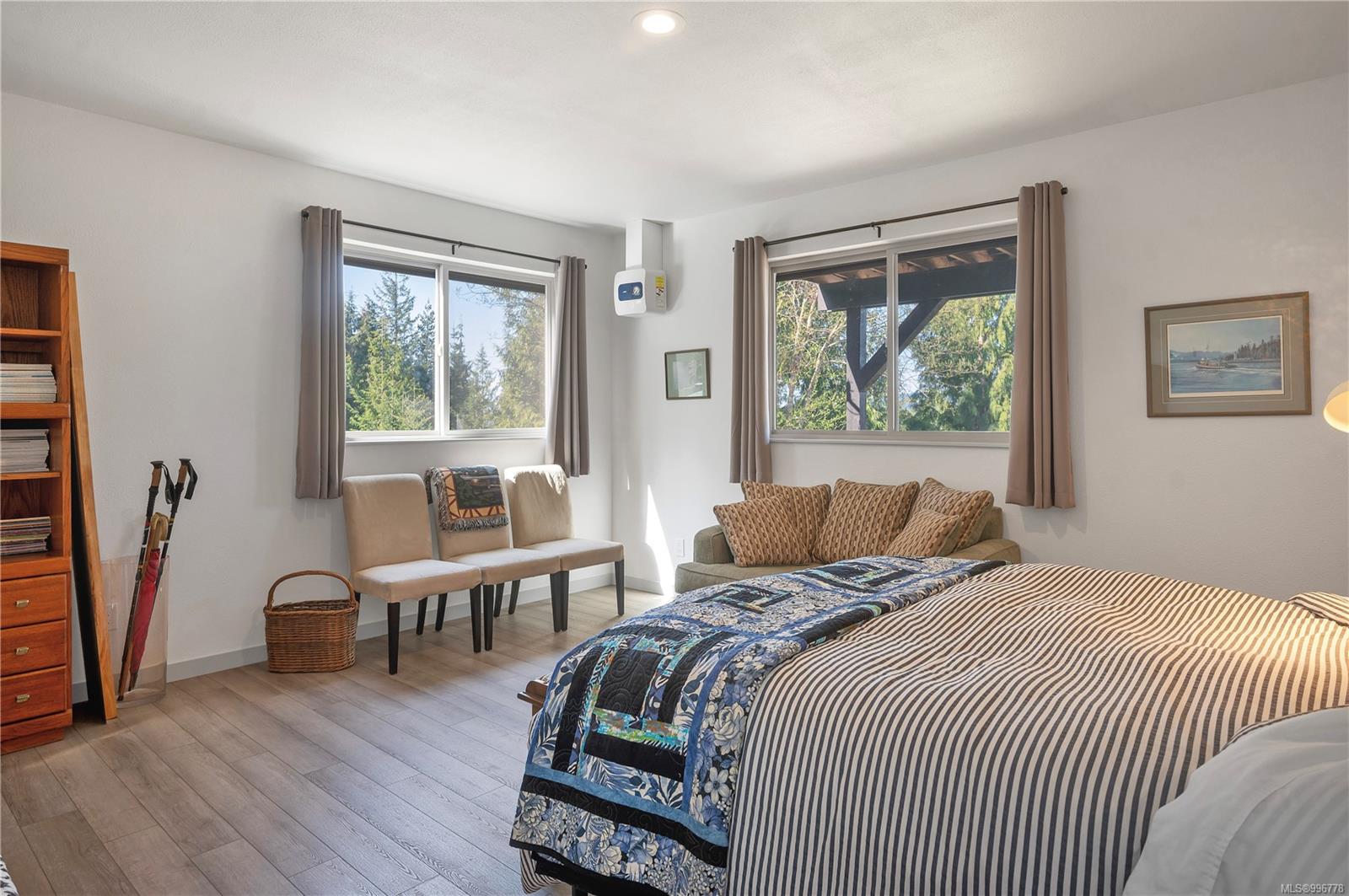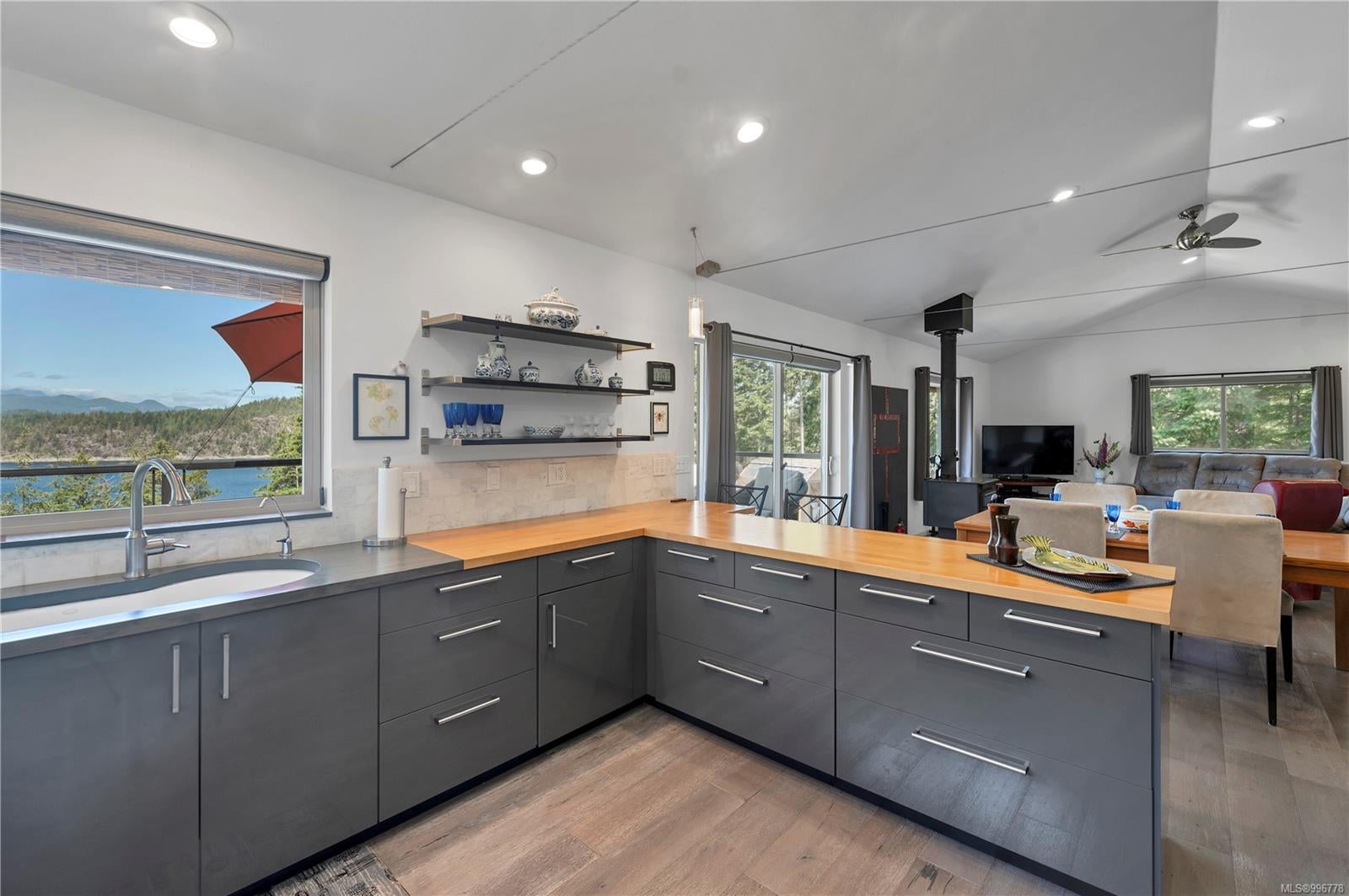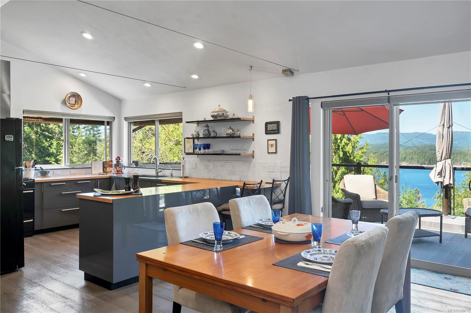 Read Island custom built home on 3.7 acre off-grid, highbank oceanfront property overlooking King Island Bay! This 2,400 sq ft two level home features a low maintenance design with metal roof & siding & aluminum deck on the upper floor. The lower level of the home offers a covered deck off the entry that opens to the canning kitchen with propane range & electric stove & stainless steel prep sink. There is a spacious family room with woodstove also on the lower level, with doors leading to the storage & workshop & large pantry. There is 1 bedroom with a 3pc ensuite also on this level. Upstairs you’ll find the inviting open floor plan living room, dining room and kitchen with vaulted ceilings, a woodstove and sliding door to the upper deck overlooking the ocean. The kitchen has a propane & electric oven & electric fridge and a good-sized pantry. Also on the upper floor there are 2 bedrooms and a 3pc bathroom, including the primary bedroom. The home boasts modern engineered flooring throughout, nice neutral paint & many windows. The sale includes most furnishings & off-grid equipment to run the power to the property including 15 solar panels, Pelton wheel turbine, inverter and battery bank. Other features of this beautiful property include two wood storage sheds, established fenced garden with irrigation, hot house & greenhouse/potting shed. There are also 4 apple trees, 1 pear tree, 1 cherry tree & 1 plum tree, plus a variety of other established fruit/vegetable plants and ornamental plants. Much of this acreage is in natural state with a nice mix of mature trees. This property is situated in a bareland strata subdivision on the west side of Read Island, with a shared strata wharf and road system through the subdivision to easily access the property from the wharf, about a 10 minute private boat ride from Heriot Bay. Come enjoy peaceful off-grid island living!