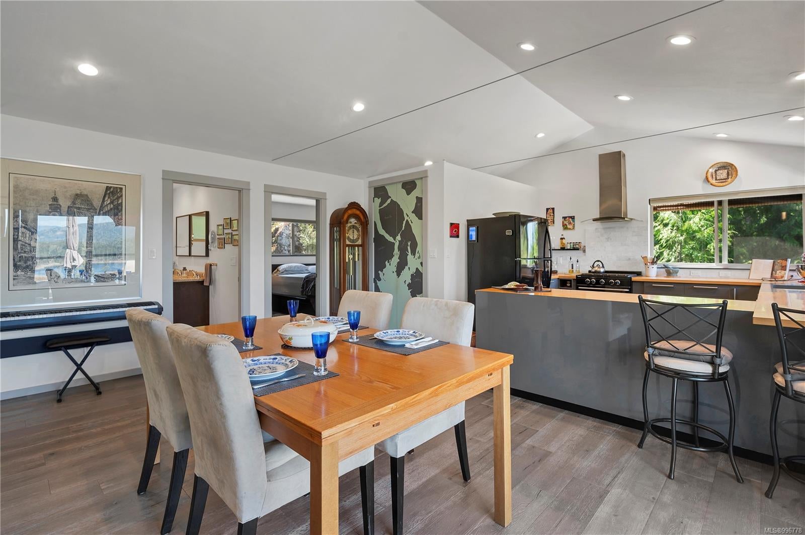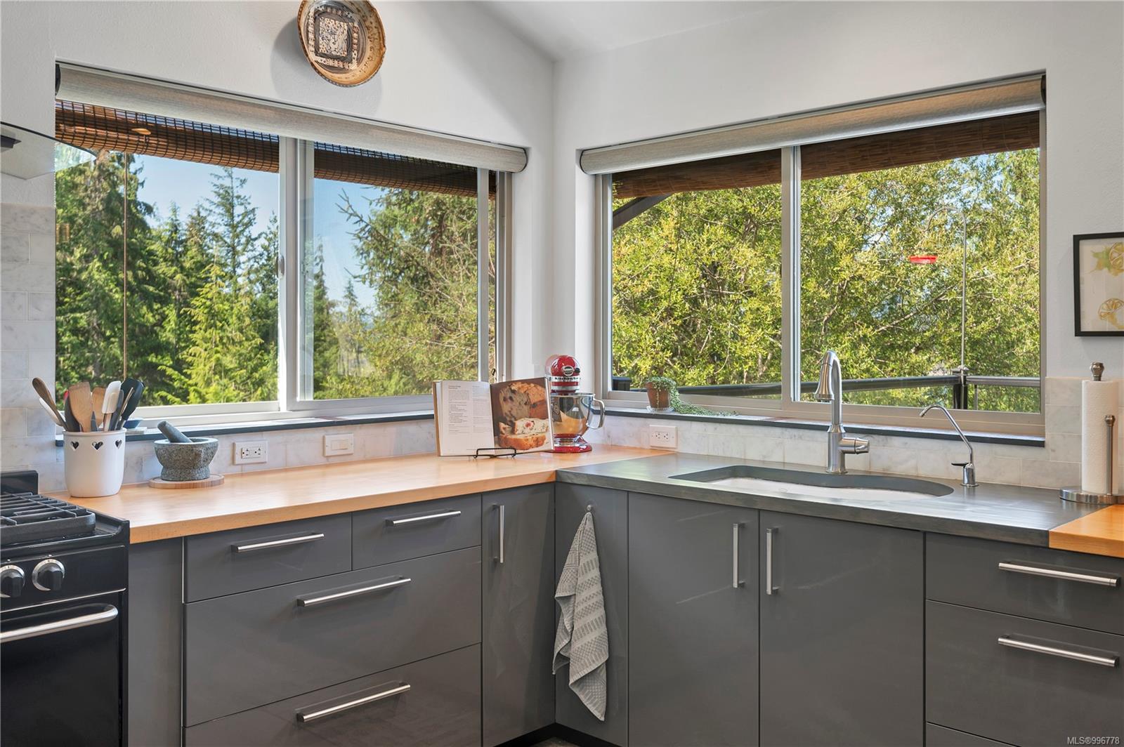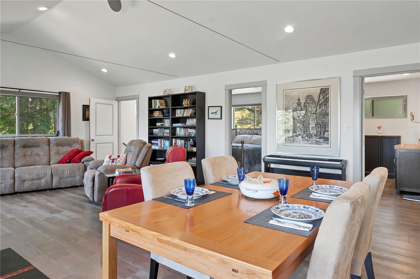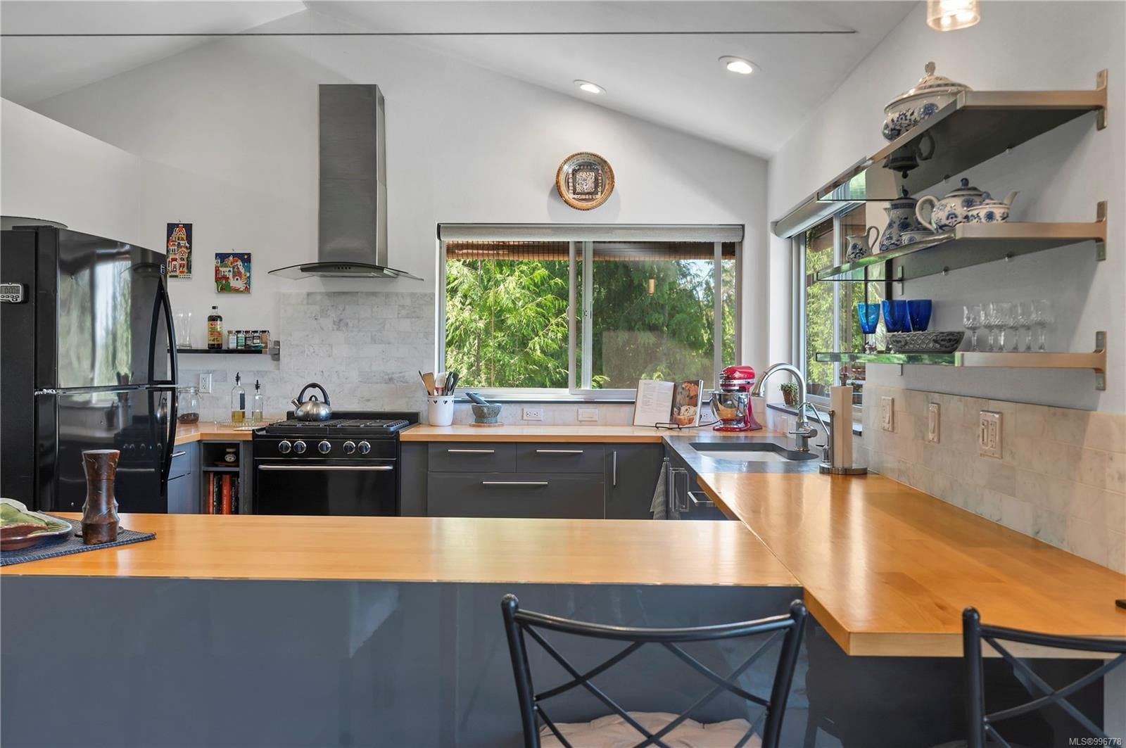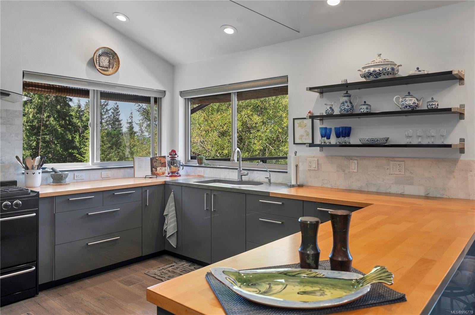 Read Island custom built home on 3.7 acre off-grid, highbank oceanfront property overlooking King Island Bay! This 2,400 sq ft two level home features a low maintenance design with metal roof & siding & aluminum deck on the upper floor. The lower level of the home offers a covered deck off the entry that opens to the canning kitchen with propane range & electric stove & stainless steel prep sink. There is a spacious family room with woodstove also on the lower level, with doors leading to the storage & workshop & large pantry. There is 1 bedroom with a 3pc ensuite also on this level. Upstairs you’ll find the inviting open floor plan living room, dining room and kitchen with vaulted ceilings, a woodstove and sliding door to the upper deck overlooking the ocean. The kitchen has a propane & electric oven & electric fridge and a good-sized pantry. Also on the upper floor there are 2 bedrooms and a 3pc bathroom, including the primary bedroom. The home boasts modern engineered flooring throughout, nice neutral paint & many windows. The sale includes most furnishings & off-grid equipment to run the power to the property including 15 solar panels, Pelton wheel turbine, inverter and battery bank. Other features of this beautiful property include two wood storage sheds, established fenced garden with irrigation, hot house & greenhouse/potting shed. There are also 4 apple trees, 1 pear tree, 1 cherry tree & 1 plum tree, plus a variety of other established fruit/vegetable plants and ornamental plants. Much of this acreage is in natural state with a nice mix of mature trees. This property is situated in a bareland strata subdivision on the west side of Read Island, with a shared strata wharf and road system through the subdivision to easily access the property from the wharf, about a 10 minute private boat ride from Heriot Bay. Come enjoy peaceful off-grid island living!
