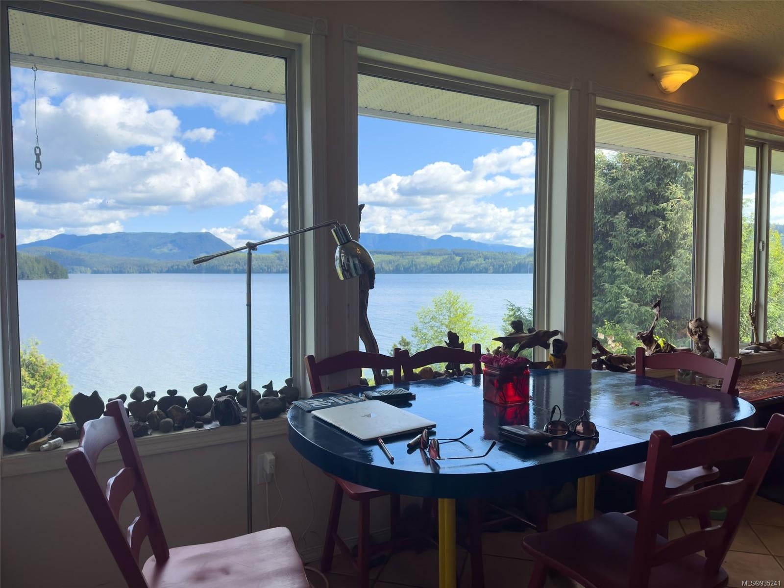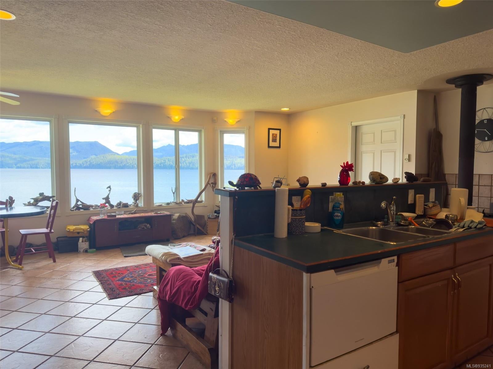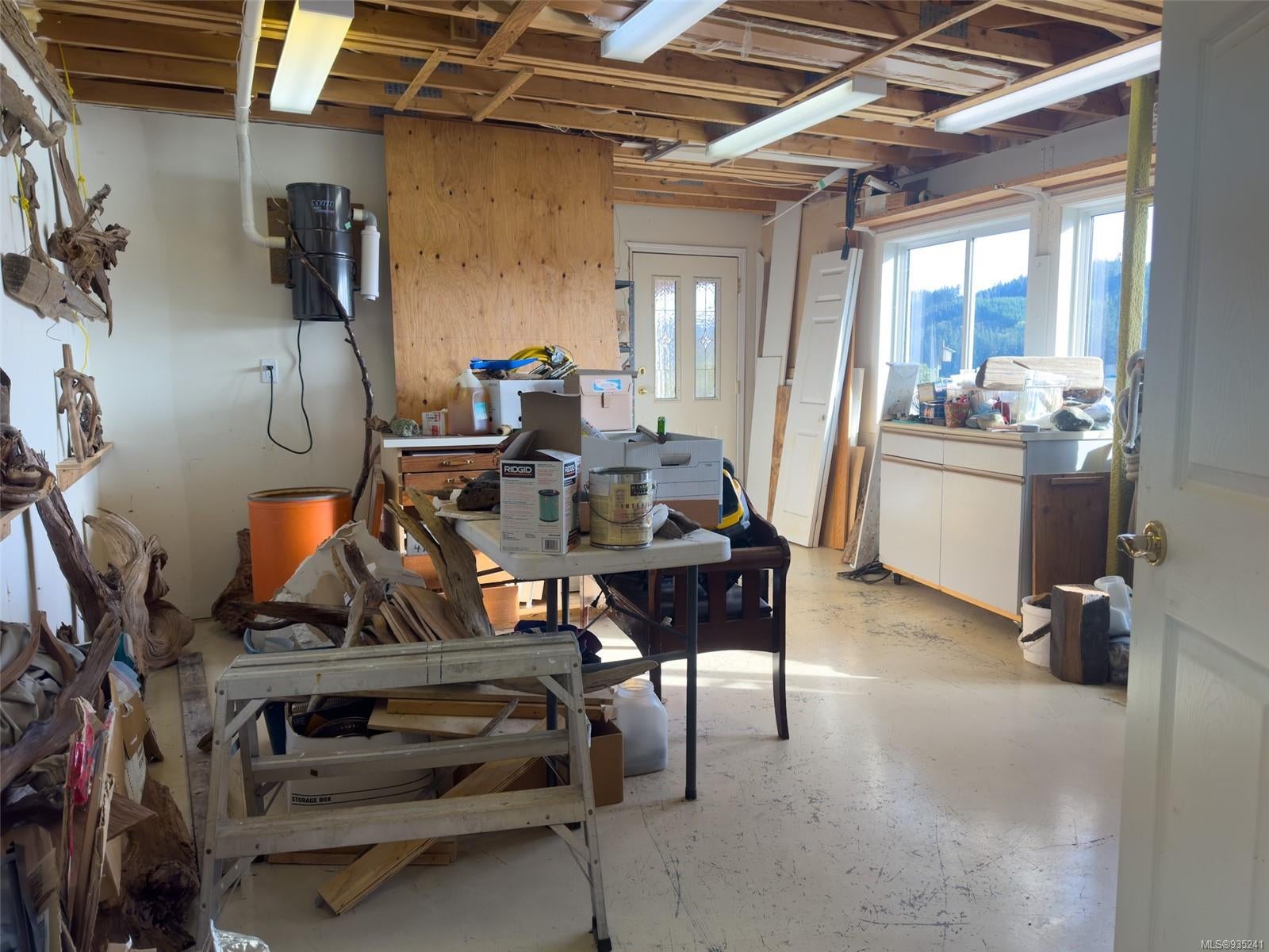 WALK ON WATER FRONT! This 1999 home is located in Coal Harbour just 15 minutes from Port Hardy. This entry level property offers an open concept living area with large windows showing off the stunning views. Main level features 2 bedrooms + office and 2 full bathrooms, including the primary ensuite that is wheel chair accessible. Off the living room is a covered deck space with hot tub to enjoy no matter what the weather. The main floor is wheel chair accessible throughout with larger door frames and ramps to make certain areas accessible. Downstairs is partially finished with walk out access and 2 bedrooms (one with no flooring), 3 PC bath, kitchenette area, spacious workshop space & loads of storage options. Outside you'll marvel in the lush gardens and tiered walk way leading down to the beach. A double attached garage, large driveway and sizeable shed at the bottom of the property give you loads of room for all your outdoor toys and equipment.