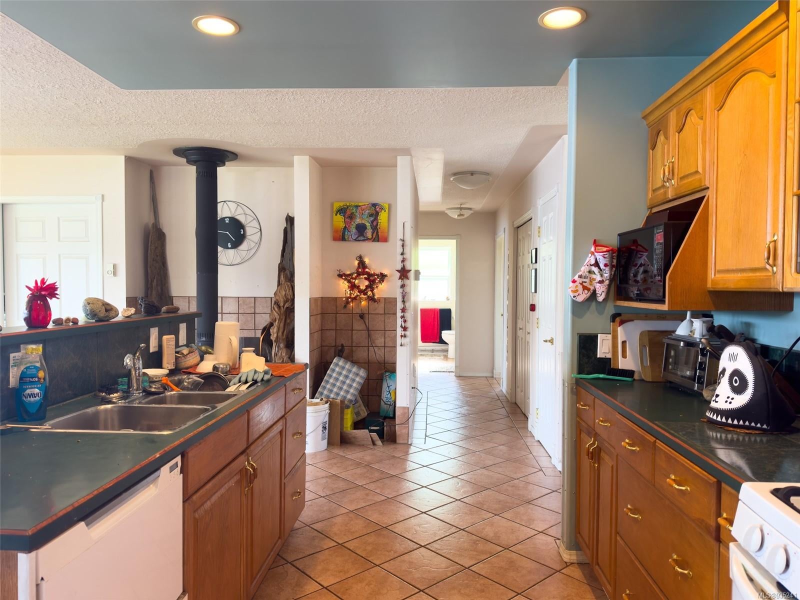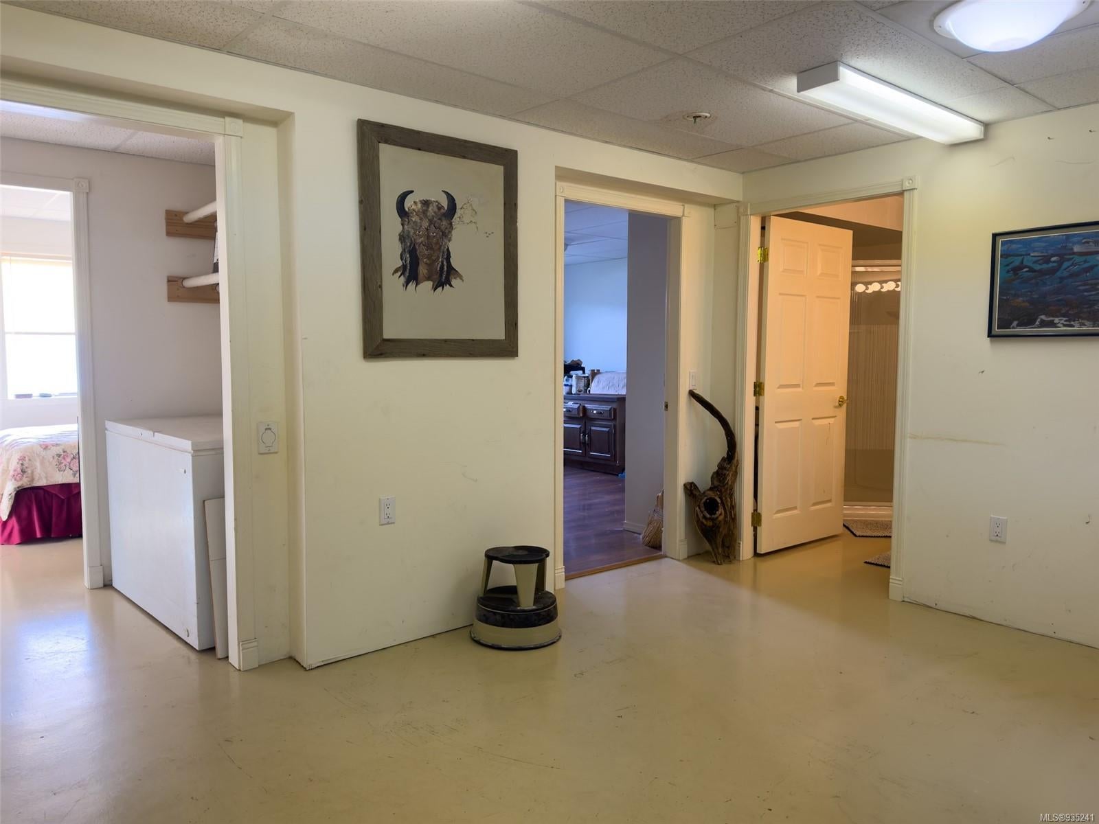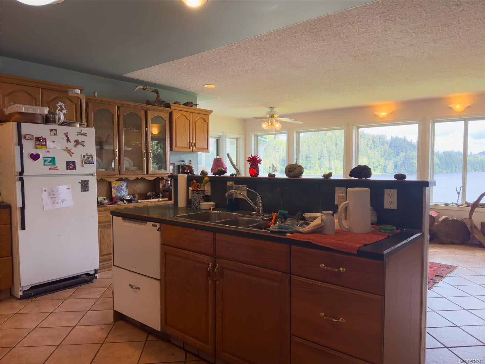 WALK ON WATER FRONT! This 1999 home is located in Coal Harbour just 15 minutes from Port Hardy. This entry level property offers an open concept living area with large windows showing off the stunning views. Main level features 2 bedrooms + office and 2 full bathrooms, including the primary ensuite that is wheel chair accessible. Off the living room is a covered deck space with hot tub to enjoy no matter what the weather. The main floor is wheel chair accessible throughout with larger door frames and ramps to make certain areas accessible. Downstairs is partially finished with walk out access and 2 bedrooms (one with no flooring), 3 PC bath, kitchenette area, spacious workshop space & loads of storage options. Outside you'll marvel in the lush gardens and tiered walk way leading down to the beach. A double attached garage, large driveway and sizeable shed at the bottom of the property give you loads of room for all your outdoor toys and equipment.