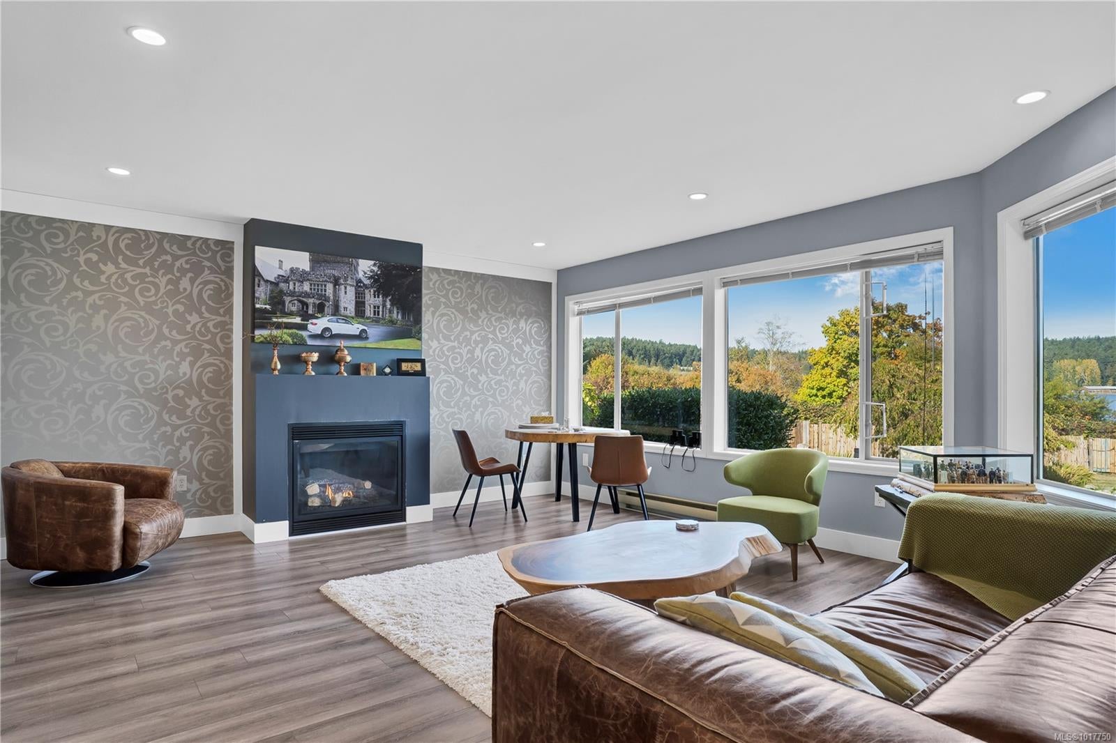 Welcome to your oceanfront retreat overlooking the serene Esquimalt Lagoon! This beautifully designed 2,800+ sq ft home is tucked away on a quiet cul-de-sac and captures breathtaking sunrise and sunset views from both levels. Enjoy the coastal scenery from the 21x8 upper balcony or the expansive 680 sq ft lower deck—perfect for entertaining or unwinding. The open-concept main level features a bright kitchen with a breakfast bar, spacious living and dining areas, and a versatile den or second bedroom. The primary suite offers sweeping ocean views, a walk-in closet, and a full ensuite. The lower level includes a generous rec room, guest bedroom, additional office/den, and full bath—ideal for family or visitors. Set on a private 0.30-acre lot, this is a rare opportunity to own true waterfront in one of the region’s most captivating natural settings.