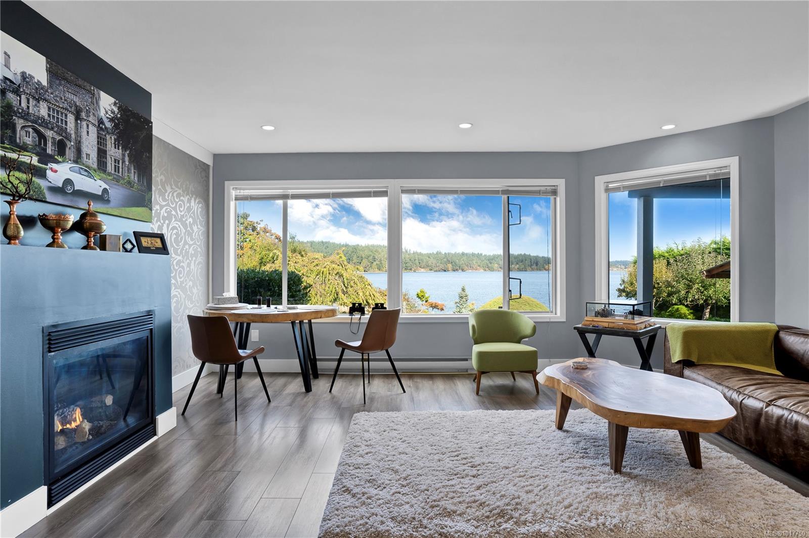 Welcome to your oceanfront retreat overlooking the serene Esquimalt Lagoon! This beautifully designed 2,800+ sq ft home is tucked away on a quiet cul-de-sac and captures breathtaking sunrise and sunset views from both levels. Enjoy the coastal scenery from the 21x8 upper balcony or the expansive 680 sq ft lower deck—perfect for entertaining or unwinding. The open-concept main level features a bright kitchen with a breakfast bar, spacious living and dining areas, and a versatile den or second bedroom. The primary suite offers sweeping ocean views, a walk-in closet, and a full ensuite. The lower level includes a generous rec room, guest bedroom, additional office/den, and full bath—ideal for family or visitors. Set on a private 0.30-acre lot, this is a rare opportunity to own true waterfront in one of the region’s most captivating natural settings.