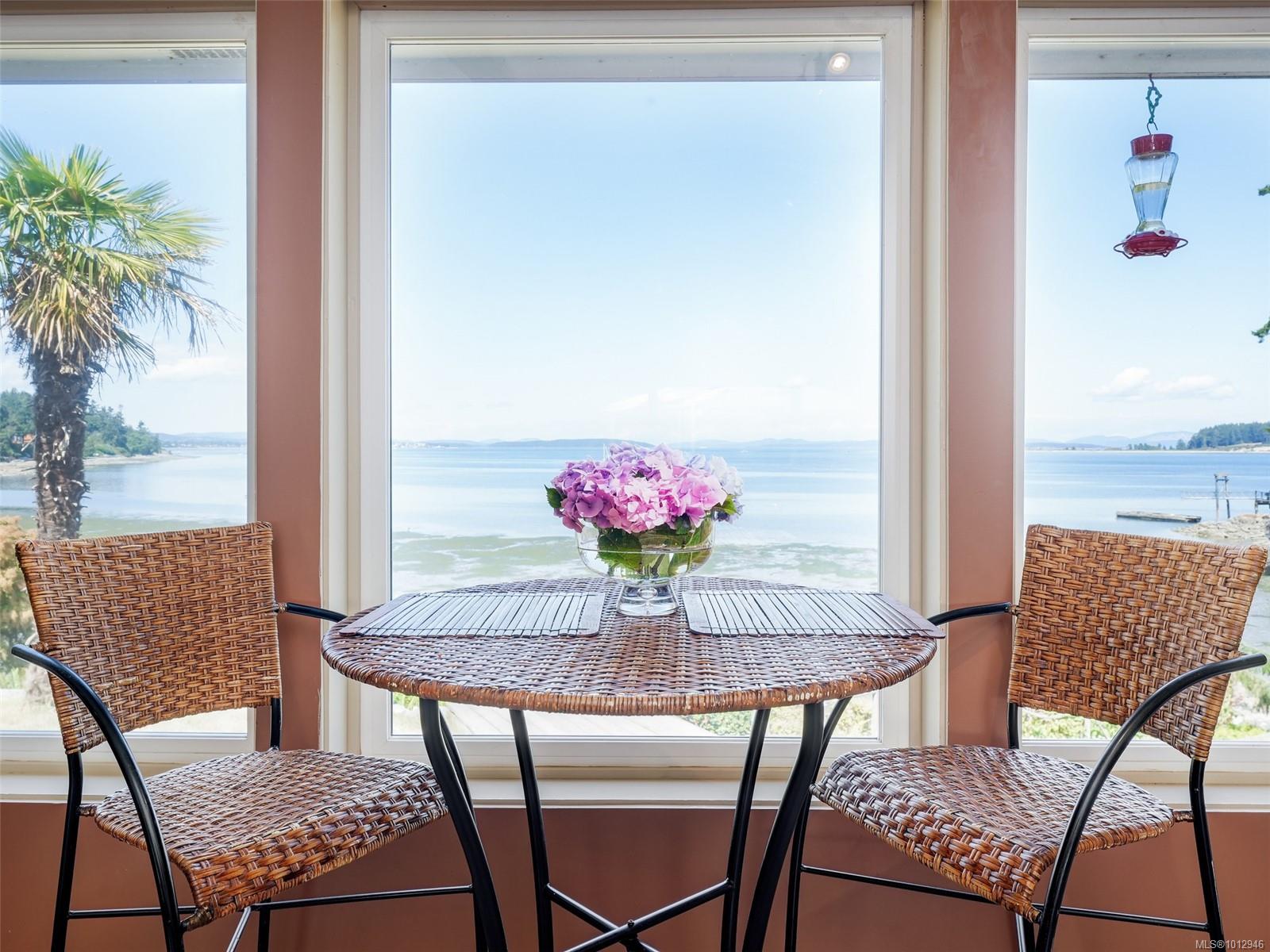 OCEAN FRONT PROPERTY WITH STUNNING PANORAMIC VIEWS. This special home is tucked away on a quiet dead end street, situated on a 20,000+ sqft private lot there's an opportunity for you to build your dream home or update the existing home. A spacious 5 bed, 4 bath home with vaulted ceilings and large picture windows to enjoy the breathtaking 180 deg views. Upper has 3 bedrooms and 2 baths, the primary bedroom that opens to a balcony with a view. Featuring a large kitchen with adjacent dining/living room. Lower level offers a large family room, rec room/studio, plenty of storage space and crawlspace, 2 additional beds and 2 baths. The double garage has a convenient 3 pc bath. Outside you will enjoy countless hours lounging by the pool (heated by the sun) on the sunny patio surrounded by friends and family. Easy access to the sandy and pebble beach down the steps to beach comb until your hearts desire. Fishing, boating or kayaking from your own backyard on beautiful Ferguson Cove with views of James Island and the lights of Sidney. Public dock 100m away for crabbing and prawning. Ample parking for RV, boat, or multiple vehicles. Conveniently located near Sidney for shopping and dining, and just minutes from Saanichton Center.