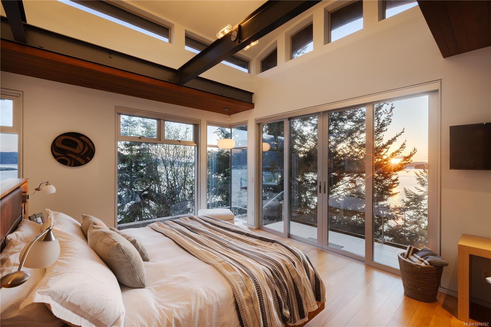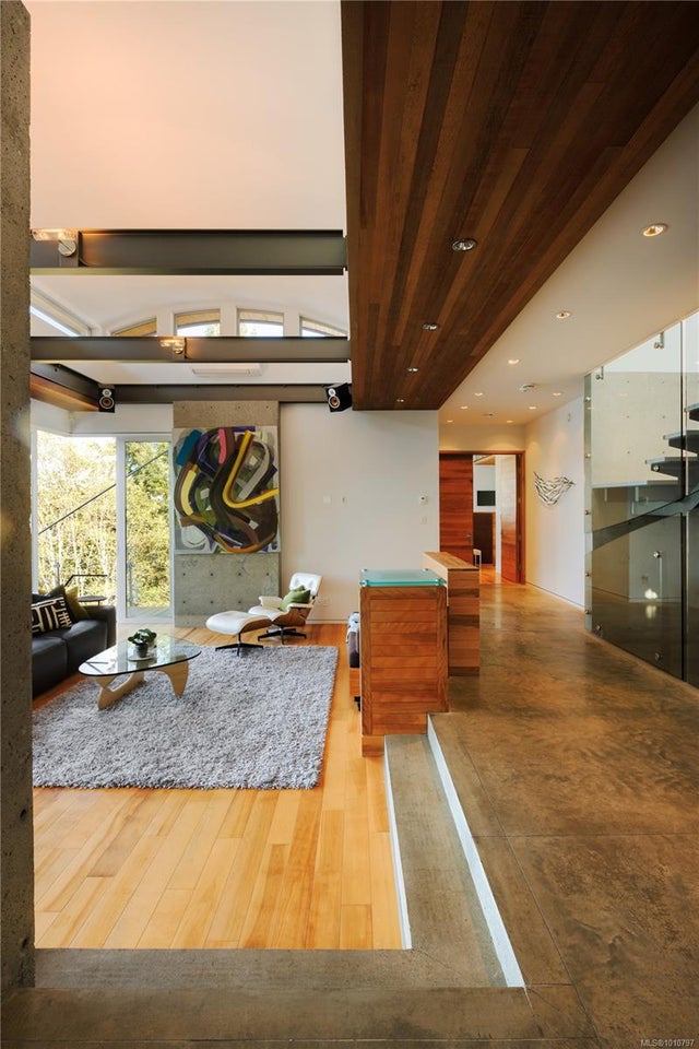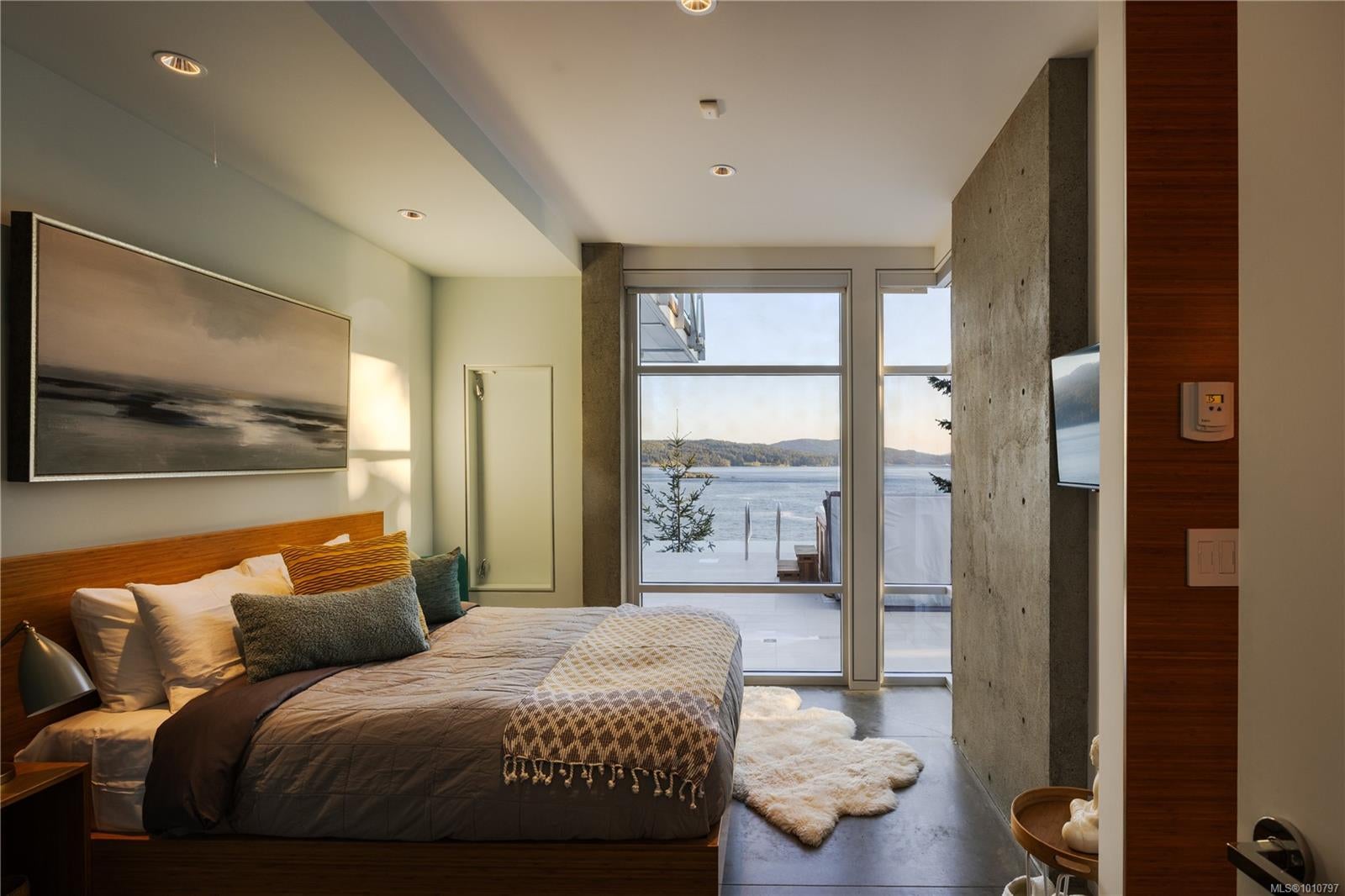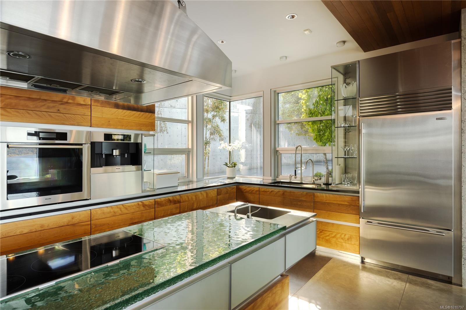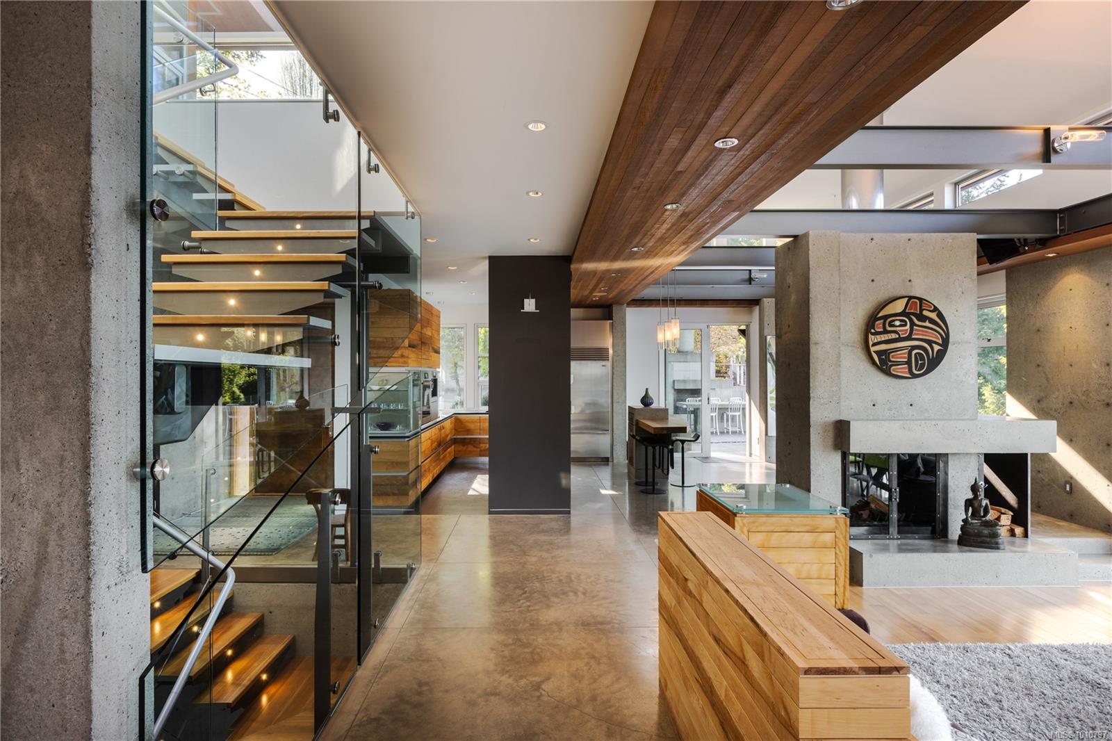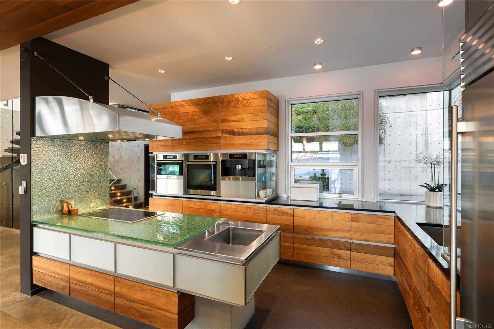 Oceanfront Masterpiece | Malibu Meets Vancouver Island. Experience a rare blend of oceanfront luxury and architectural brilliance in this custom steel and concrete estate home, set on 1.59 acres of private, landscaped grounds and 625 feet of ocean frontage. Floor-to-ceiling windows and signature porthole accents frame stunning panoramic views of the ocean, islands, and passing marine life. A bespoke flybridge extends from the living area, offering front-row views of the 82’ infinity lap pool—perfectly aligned to track the sun from sunrises over Mount Baker, to glowing sunsets on the water. Inside, sustainable geothermal heating warms polished concrete floors, beautifully paired with the rich hues of inlaid wood, floating stair rungs, and custom cabinetry. The main floor primary suite is a serene retreat with spa-inspired ensuite and sweeping vistas. The lower level offers guest accommodations, a media room, wine cellar, and a poolside gym with retractable glass doors for seamless indoor-outdoor living. Upstairs, a flexible family room or office provides a quiet escape. The kitchen opens to an outdoor BBQ area with a fireplace and concrete formed dining table. A man-made stream and modern waterfall enhance the natural ambiance. Designed by Daniel Boot, this home is a true coastal sanctuary—private and peaceful, yet minutes from shops, dining, and marinas.
