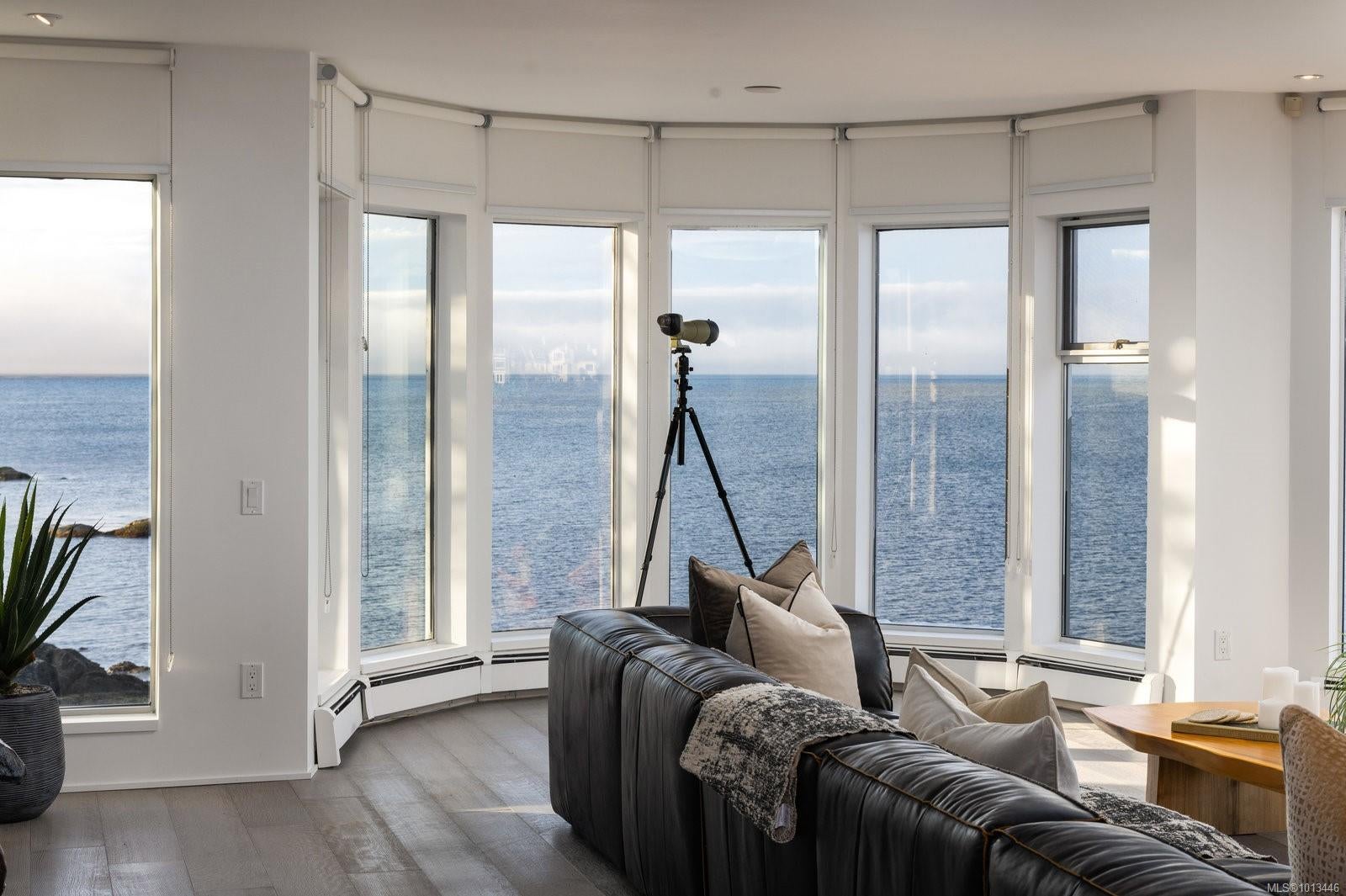 2179 Crescent is truly one of the most unique homes on southern Vancouver Island. Perched at the end of a quiet cul-de-sac, this incredible southwest-facing oceanfront home offers jaw-dropping 270° views, and incredible proximity to the ocean. This modern property is designed for effortless coastal living; the sun-drenched interior features an open-concept great room, wide-plank French oak floors, custom contemporary cabinetry, as well as upscale appliances in the kitchen. Upstairs you’ll find the primary suite which feels like a luxury retreat (with a WI closet and a beautiful ensuite with ocean views from every angle), as well as two additional bedrooms. The walk-out lower level offers an enormous games room, office, and media room providing flexible living. This home is nearly maintenance-free with an entirely zinc exterior, lpe decking, and aluminum railings. With over 160 feet of waterfront, in an ever-desirable corner of the city, this is a spectacular home which can’t be missed.