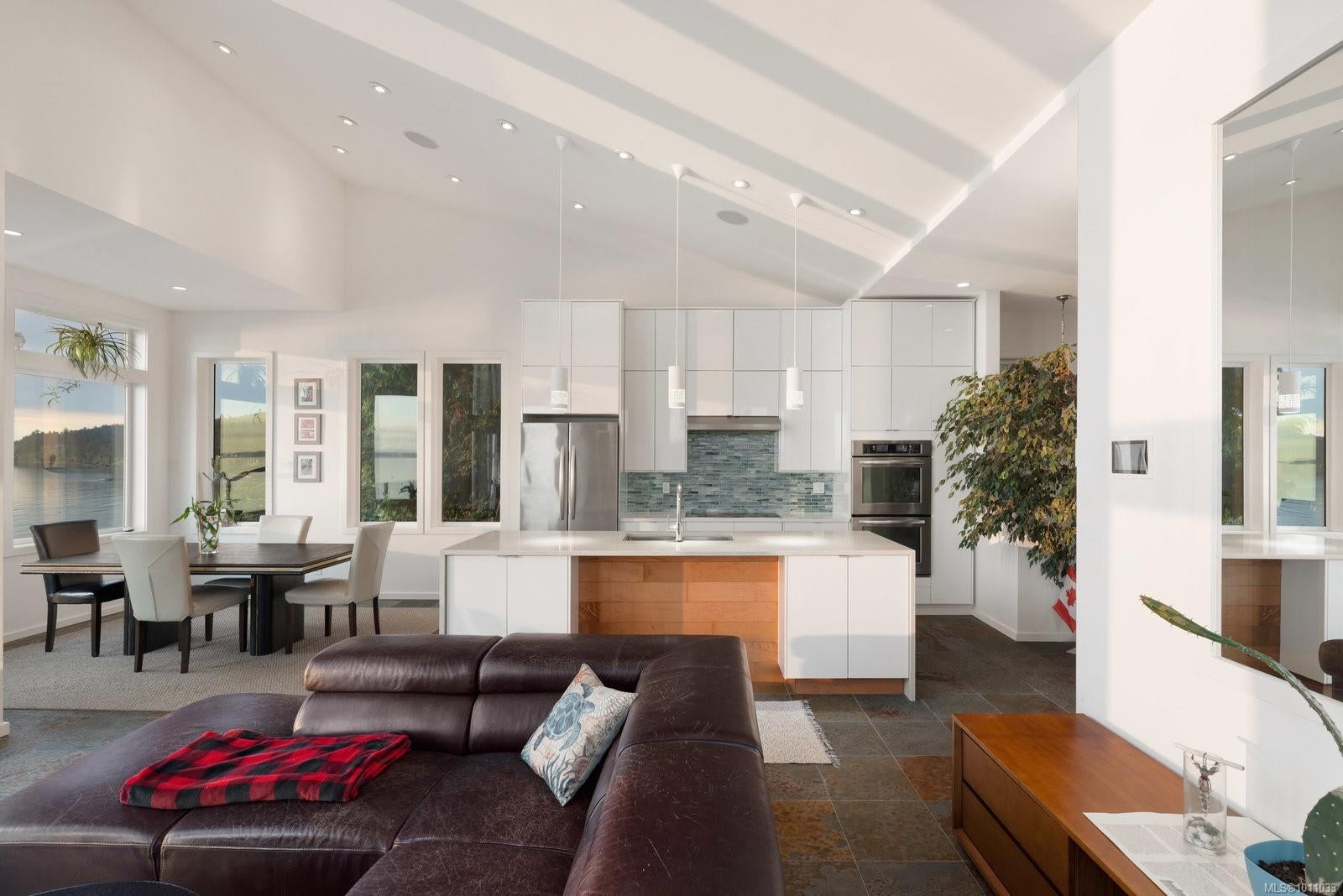 Experience oceanfront living on Cordova Bay’s sandy shores in this 3,527 sq.ft. West Coast contemporary. Four light-filled levels showcase panoramic views of the Salish Sea & Gulf Islands. The main floor features vaulted ceilings, a gourmet kitchen & seamless indoor/outdoor flow to oceanview patios. The primary suite offers a private balcony, walk-in closet & spa-inspired ensuite with steam shower. Lower levels include self-contained suites with kitchens, living areas & private entries—ideal for guests or multi-generational living. Enjoy sunrise coffee by the firepit, or launch your kayak from the beach. With a 545 sq.ft. garage, Brazilian tile throughout, multiple outdoor spaces & low-maintenance landscaping, this move-in-ready waterfront home delivers the best of seaside living in one of Victoria’s most coveted communities.