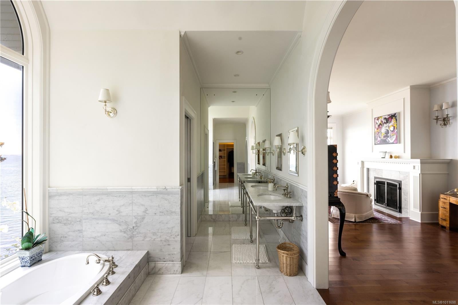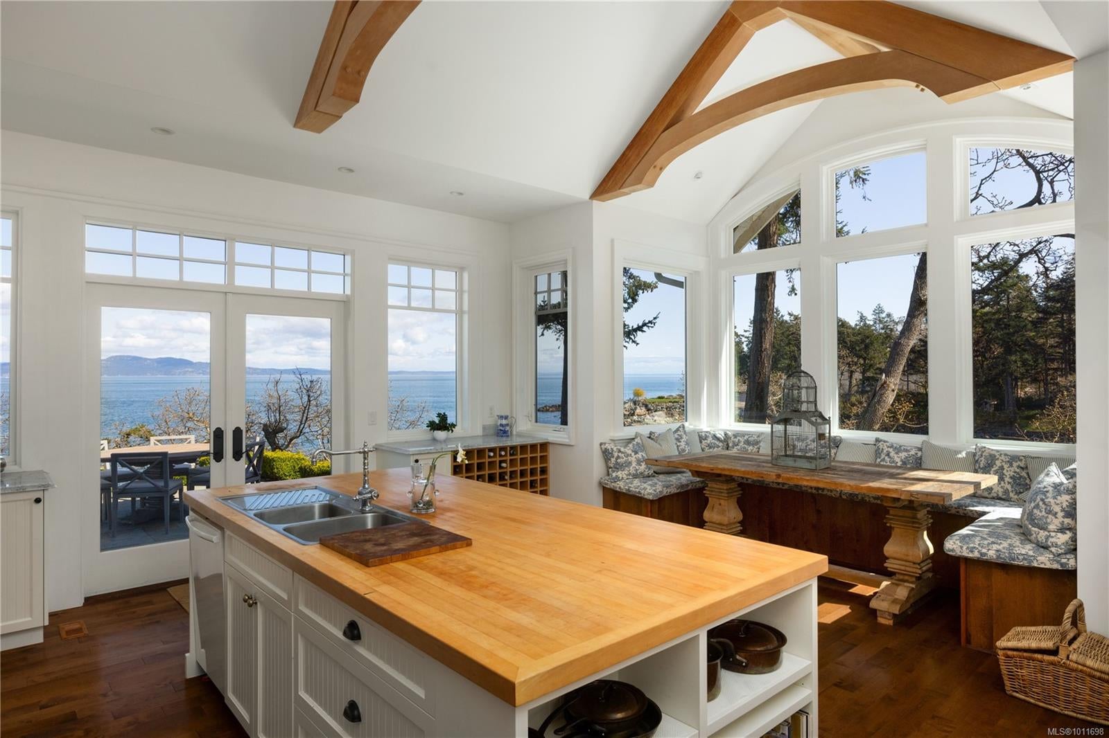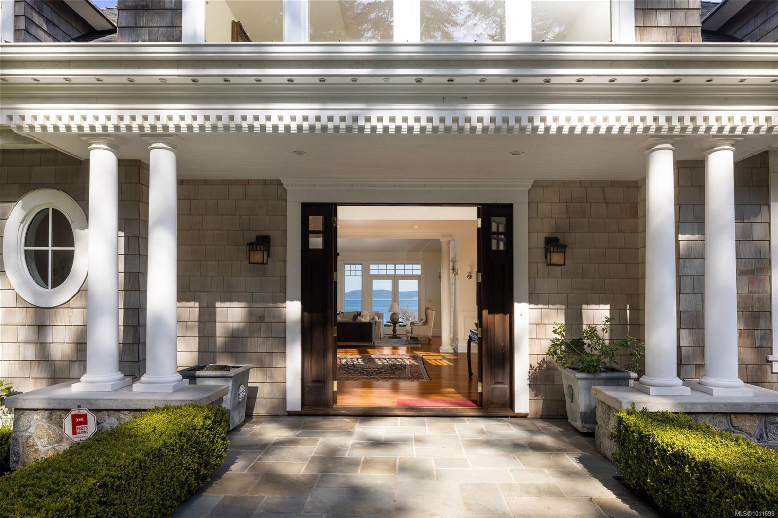 Welcome to 2600 Queenswood Drive, an extraordinary oceanfront retreat nestled on nearly 2.8 acres in one of Vancouver Island’s most prestigious enclaves. Gated and private, with the potential to subdivide, this timeless estate offers panoramic views of the Haro Strait, Gulf Islands, and Mt. Baker. The Hamptons-style residence blends classic East Coast charm with West Coast ease, featuring more than 6,000 sqft of beautifully curated living space. Soaring ceilings, expansive windows, and a seamless connection to the outdoors define the main level, which includes a sophisticated living room, elegant dining area, a hand built Walnut library/media room, and a chef’s kitchen designed for both function and flair. The main floor primary suite is a true sanctuary, while the upper level offers 3 additional bedrooms, 2 with ensuite. A walkout lower level includes a flexible studio or guest quarters. Lush landscaping, stone pathways, a private launch point for kayaking, and a detached 3-car heated garage with gardener’s toilet complete this rare seaside setting—just minutes to Cadboro Bay Village and UVic.
