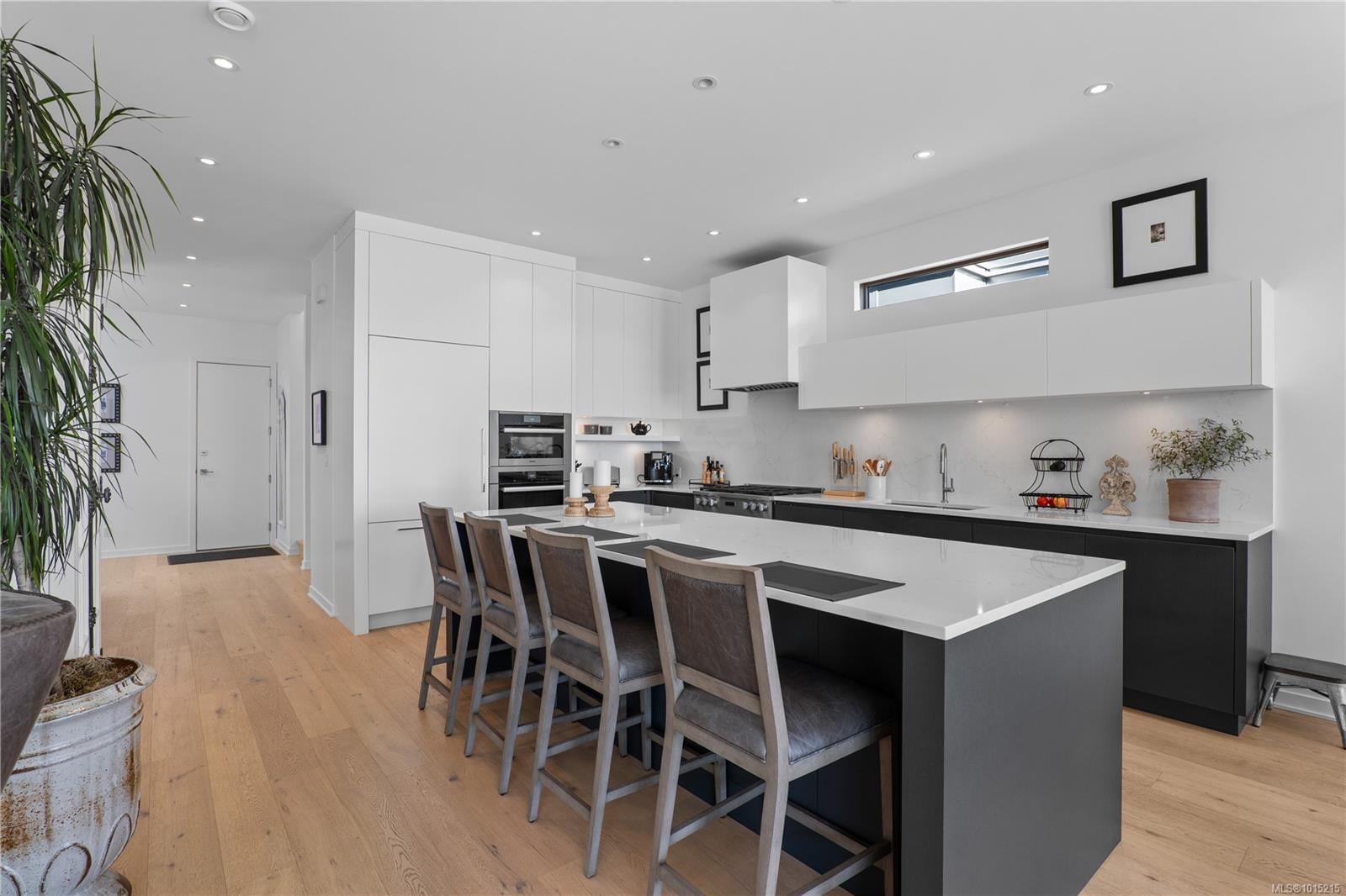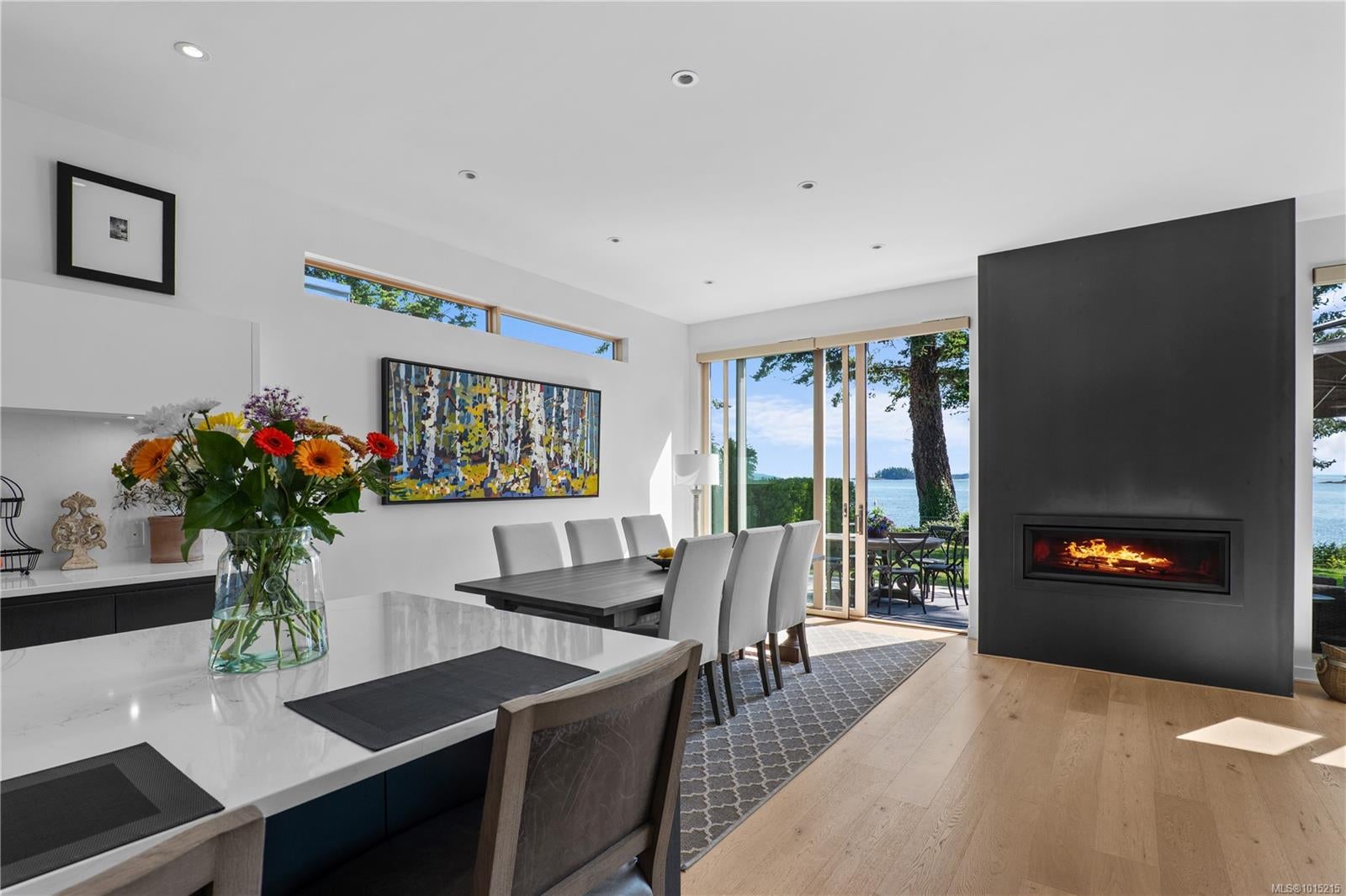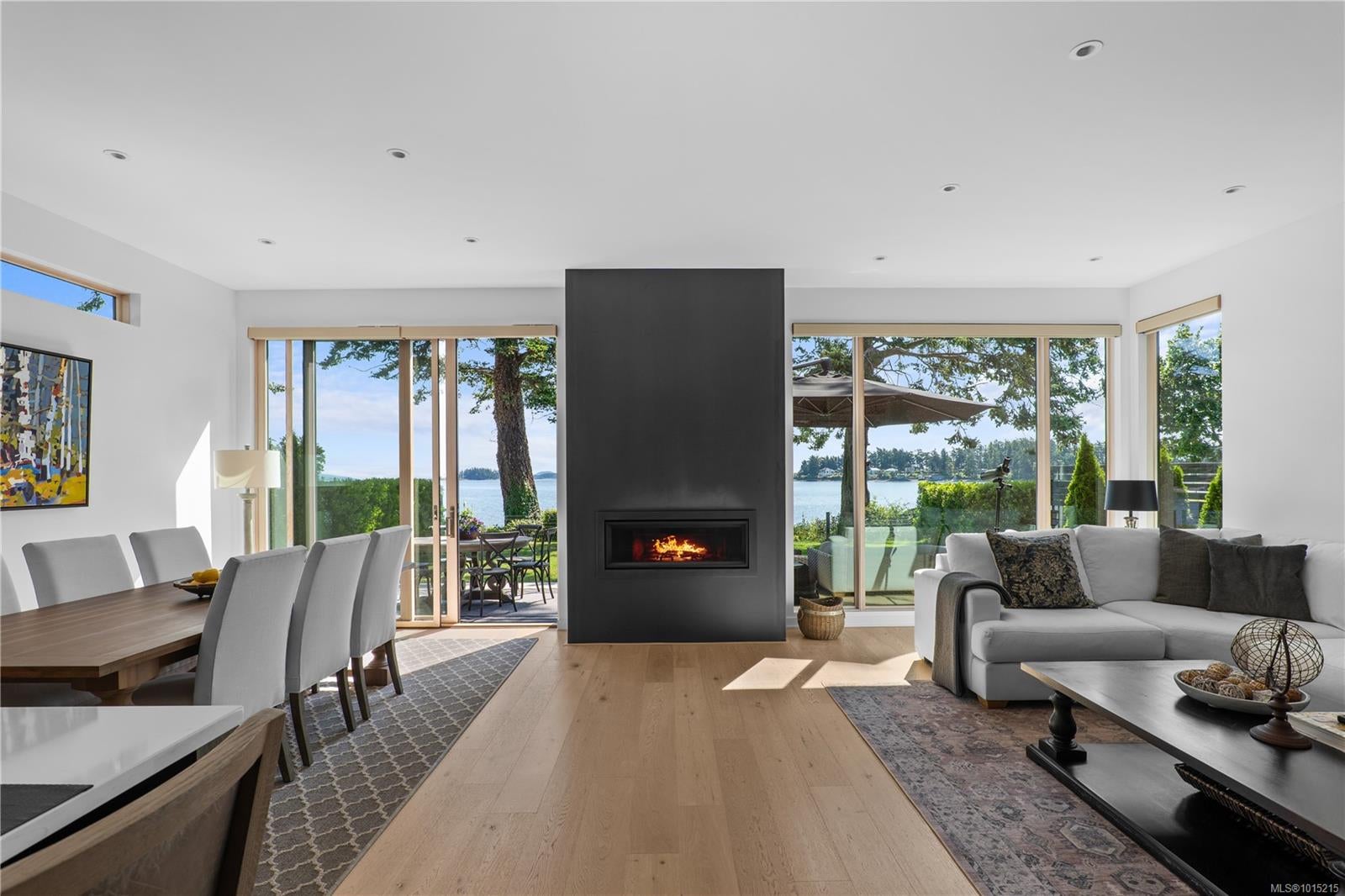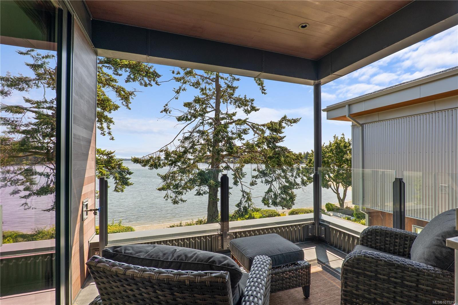 Located on sheltered Roberts Bay, this stunning oceanfront residence offers 4 bedrooms, 4 bathrooms, and over 2,500 sq.ft. of refined West Coast living. Soaring 10’ ceilings, oversized Pella windows, wide plank oak floors, custom millwork, and Hunter Douglas power blinds create an elegant interior. The Jason Good–designed kitchen features a large island, quartz countertops, and premium Miele appliances. Flexible primary suites on both levels include a luxurious oceanview retreat with private balcony. Comfort is ensured with hydronic in-floor heating and two gas fireplaces. A 2-car garage adds excellent storage, while the spacious seaside patio provides direct beach access—perfect for kayaking, paddleboarding, or watching marine life. Enjoy panoramic views of Mt. Baker, the Gulf Islands, sunrises, and moonrises from this peaceful and highly walkable Sidney location on sought-after Allbay Road.