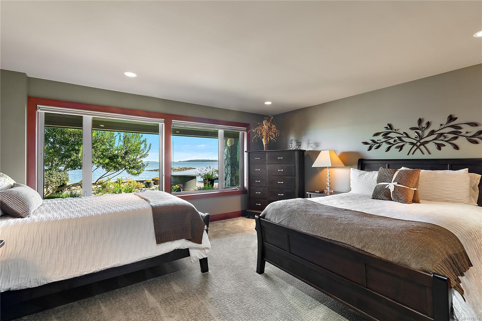 Luxury Waterfront Living in Sidney - Discover the perfect blend of luxury, location, and lifestyle in this custom-built Roger Garside home, where no expense was spared to create a residence of exceptional quality and thoughtful design. Situated on a quiet cul-de-sac just a short stroll from downtown Sidney, this rare property is positioned as close to the water’s edge as possible, offering panoramic views of Mt. Baker, active marine life, sailboats gliding by, playful seals, and a rich array of shorebirds. Step outside to a gently sloping beach—ideal for sunset strolls, beach fires, or launching your kayak. Designed for both elegance and functionality, the home features, a primary suite on the main floor with a spa-inspired ensuite, a gourmet kitchen perfect for entertaining, an open floor plan showcasing spectacular views from all principal rooms, expansive decks and a beautiful patio with a gas fireplace for year-round enjoyment and ensuite bathrooms in every bedroom for comfort and privacy. Unique to this property, an additional garage is thoughtfully located on the beach side, providing convenient storage for kayaks, crab pots, fishing gear, and more—keeping your waterfront lifestyle effortless and organized. From the moment you open the front door, the sweeping ocean views will take your breath away. Every detail of this home has been designed to maximize the natural beauty of its setting, creating an unparalleled living experience. This is more than a home—it’s a waterfront sanctuary just steps from Sidney’s charming shops, restaurants, and marinas.
